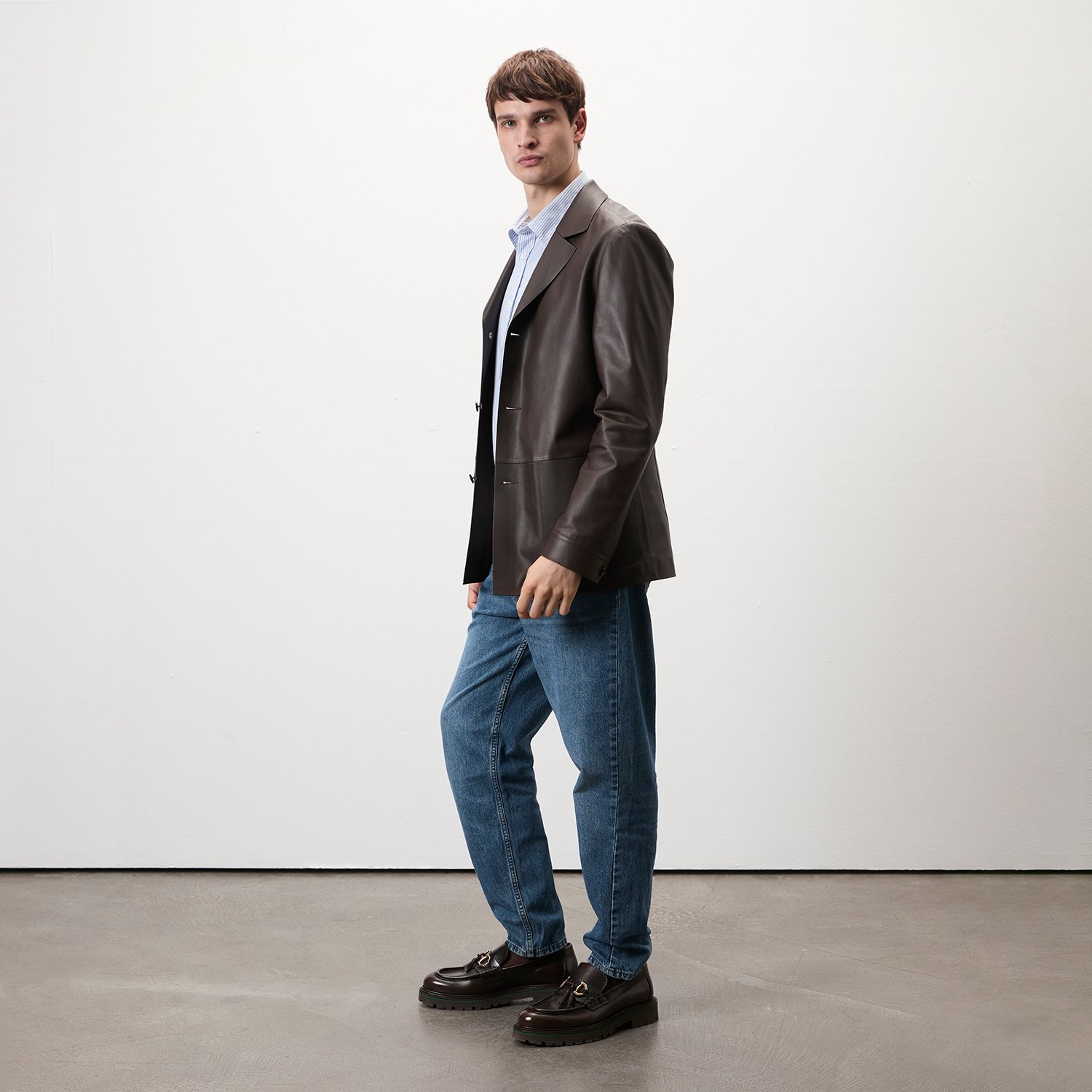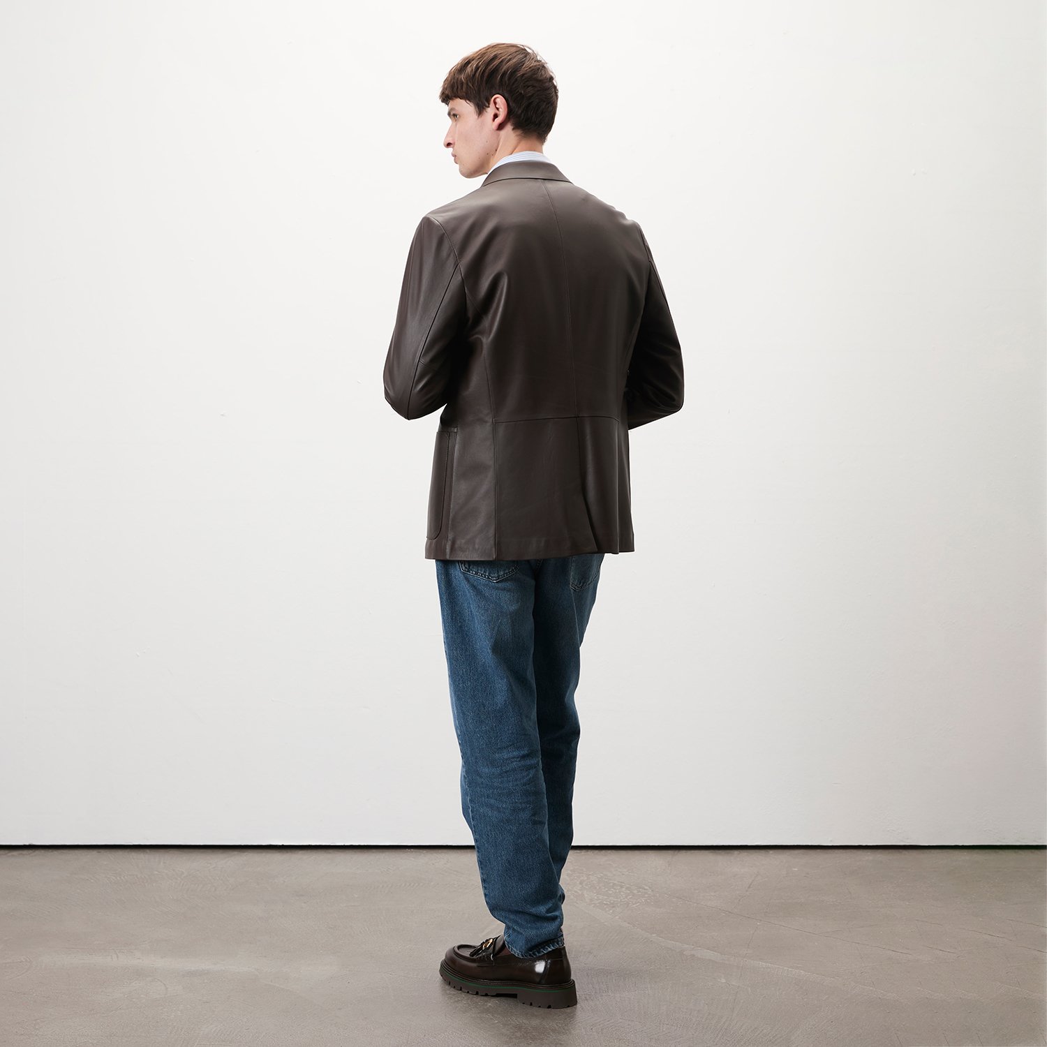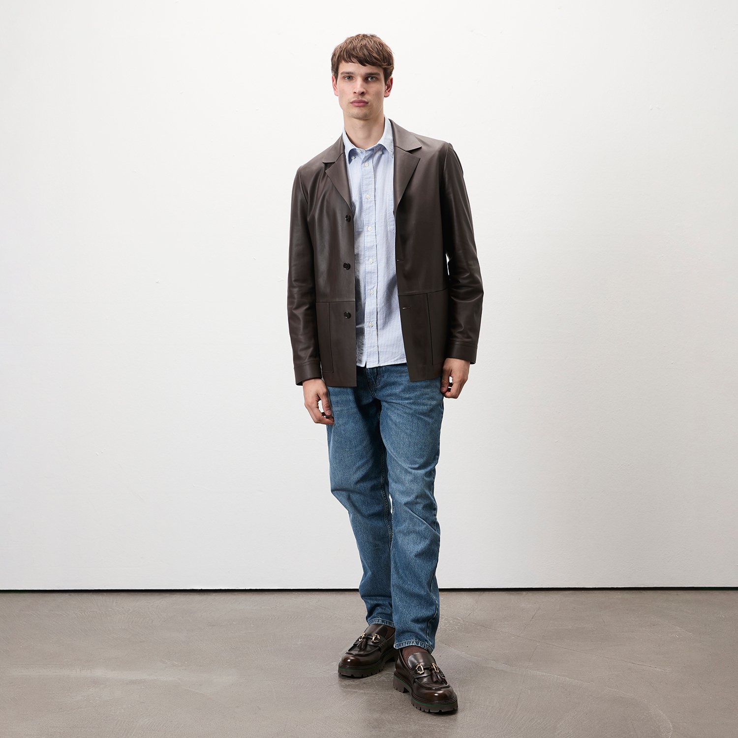 Auburn Siyah Erkek Deri Blazer Ceket Erkek Kahve Gömlek Yaka Deri Blazer Ceket Auburn Kahverengi Erkek Deri Blazer Ceket