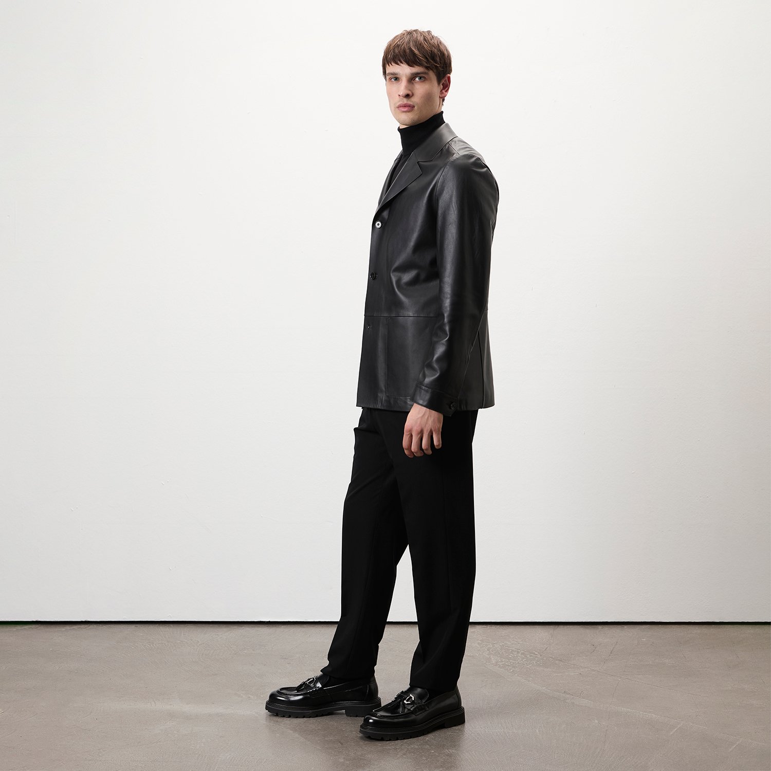 Auburn Siyah Erkek Deri Blazer Ceket Erkek Kahve Gömlek Yaka Deri Blazer Ceket Auburn Kahverengi Erkek Deri Blazer Ceket
