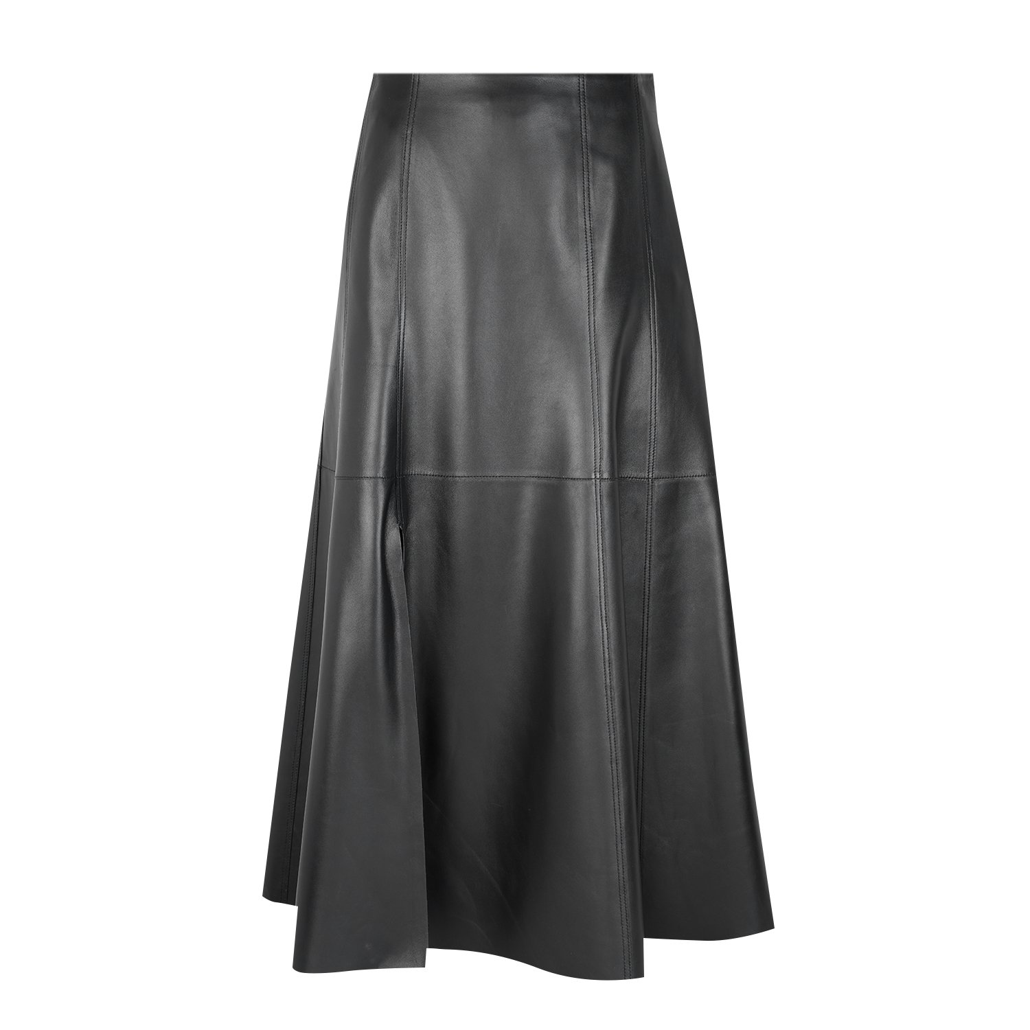 Aulii Siyah Kadın Yırtmaçlı Deri Etek