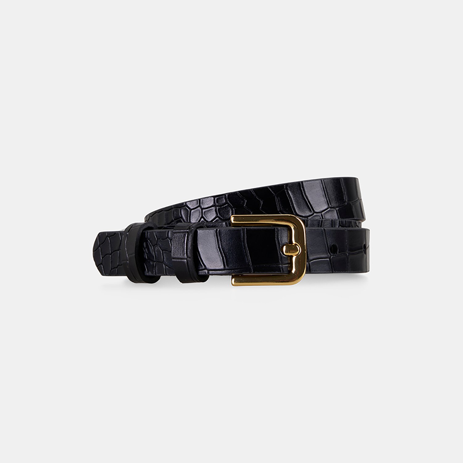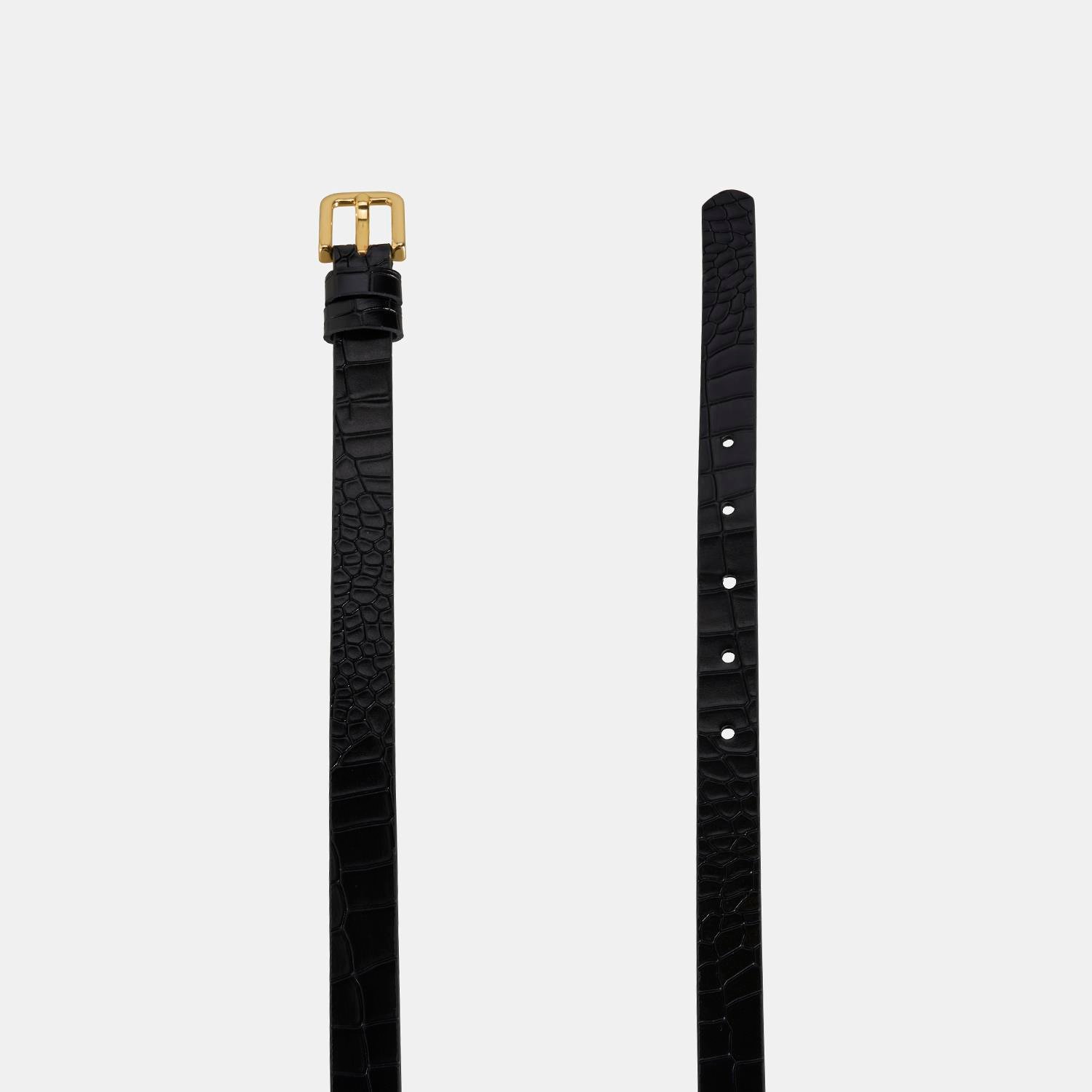 Kadın Siyah Kroko Baskılı Deri Kemer