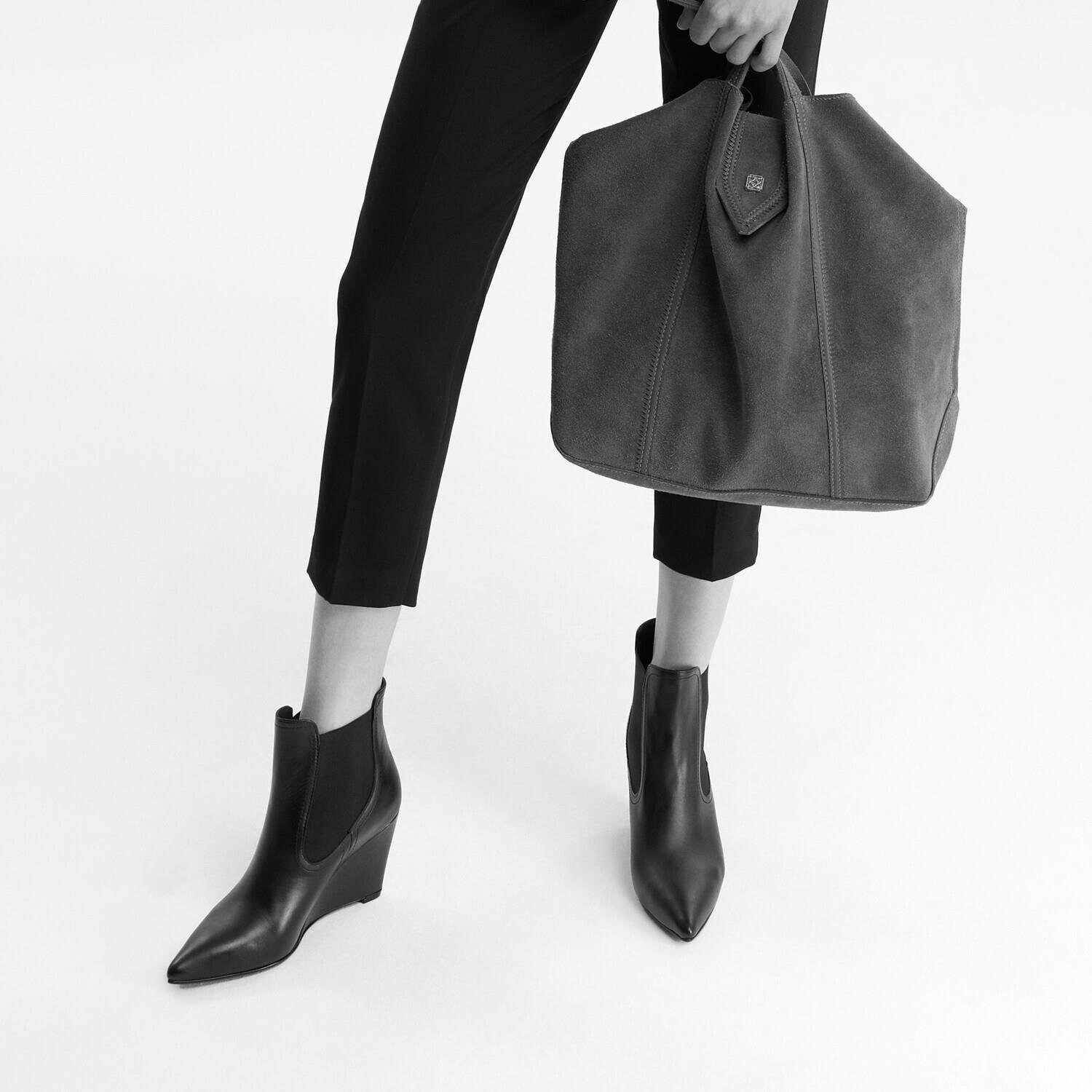 %100 deri, deri iç tabanlı, deri astarlı, tpu tabanlı, lastik detaylı, kadın dolgu topuklu bot.