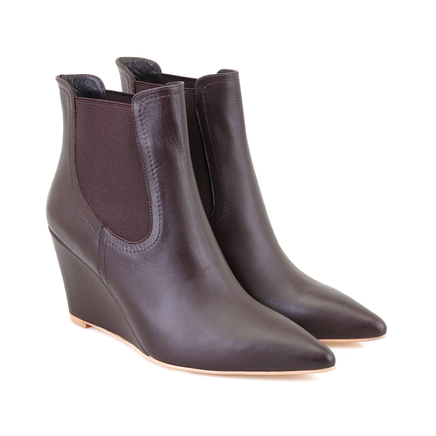 Azalea Kahve Kadın Lastikli Topuklu Deri Bot