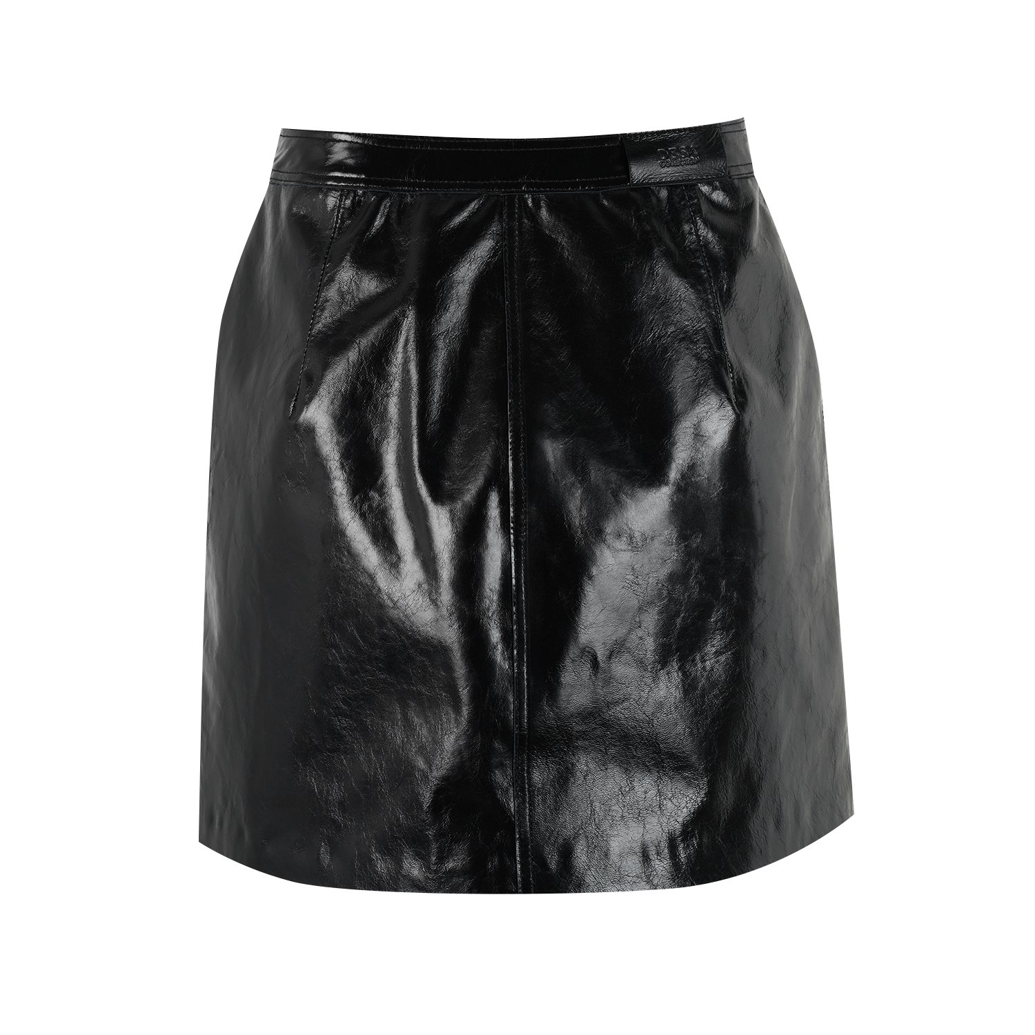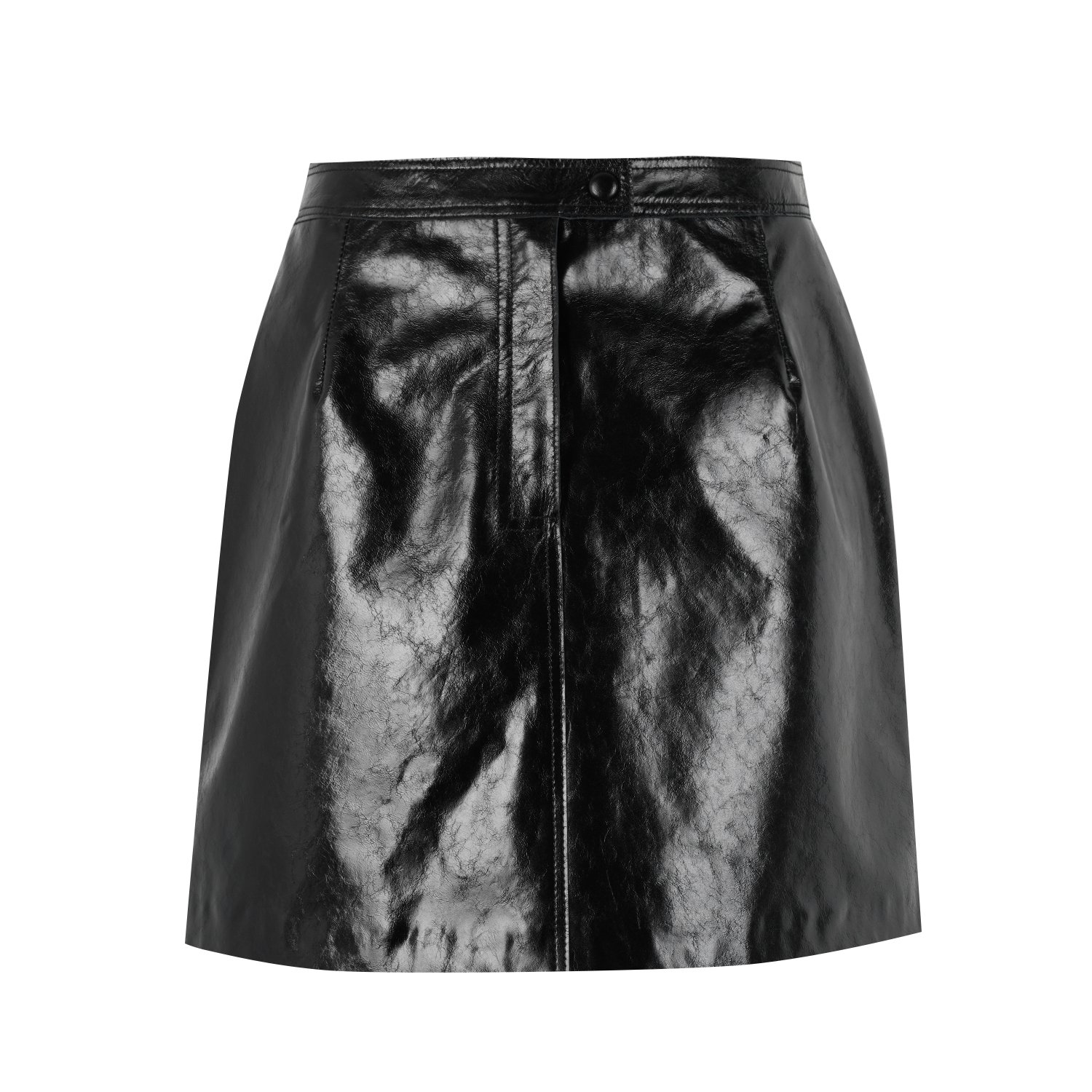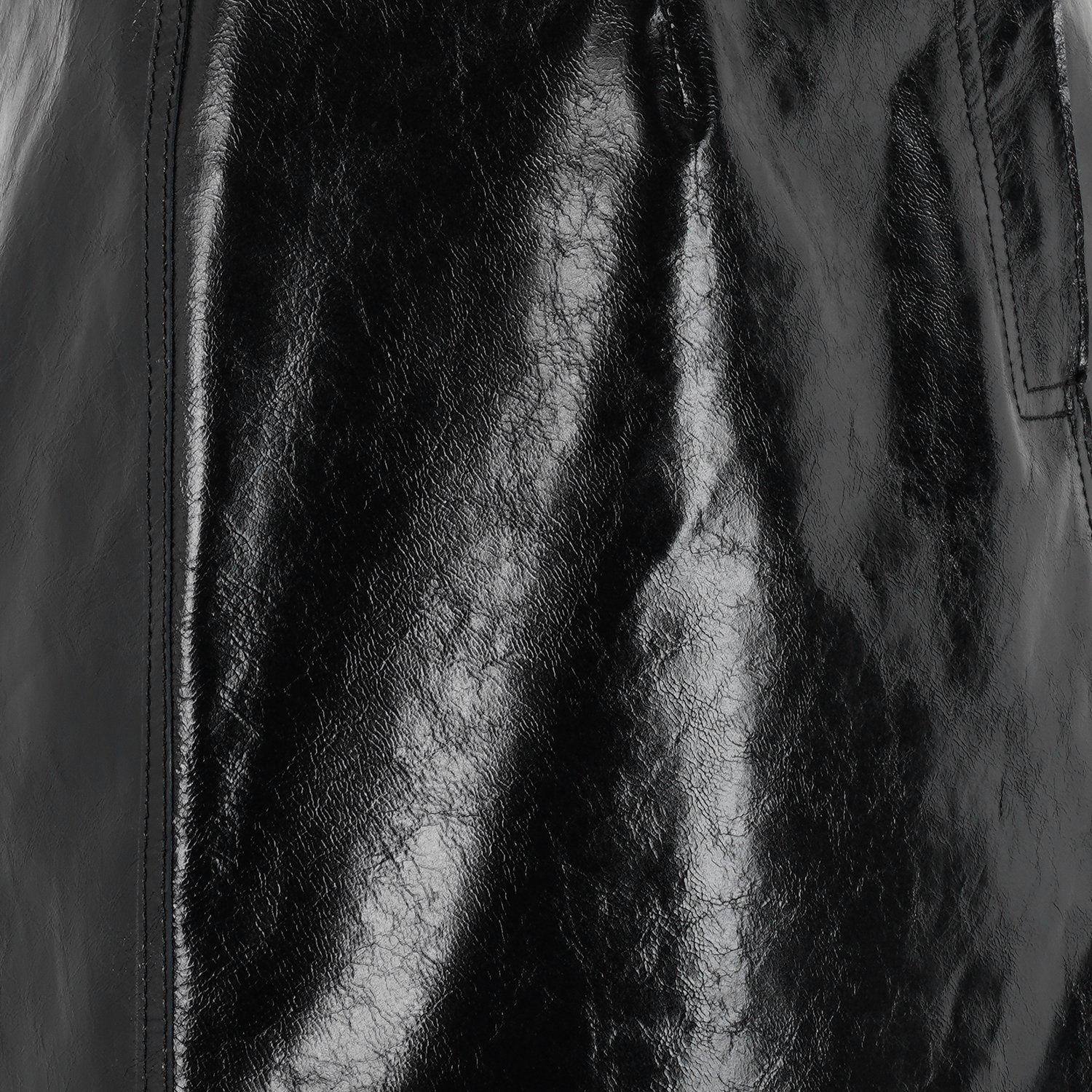 Kadın yüksek bel hafif A formlu kırışık rugan deri mini etek.