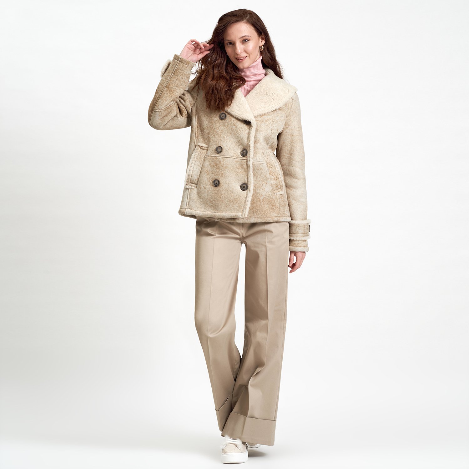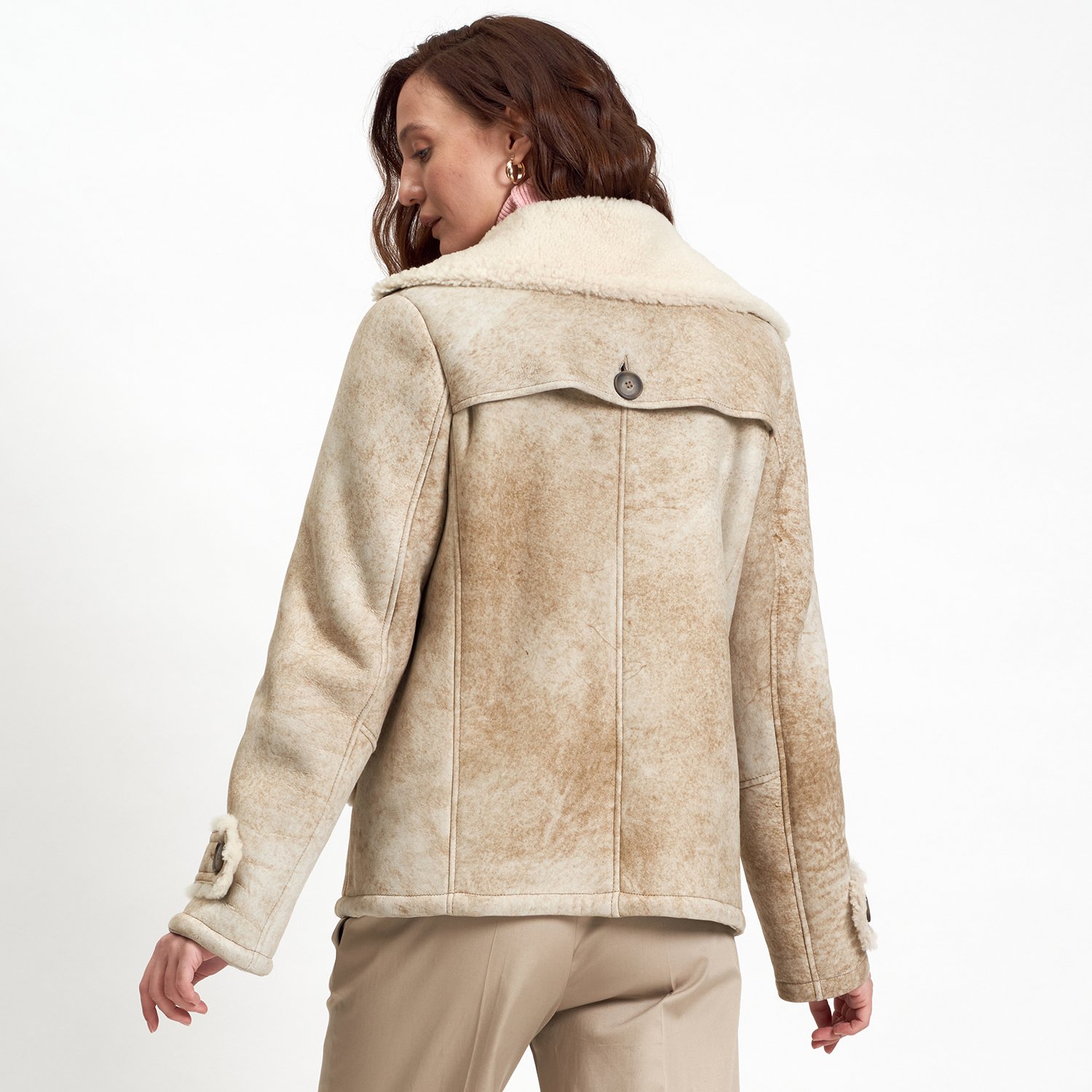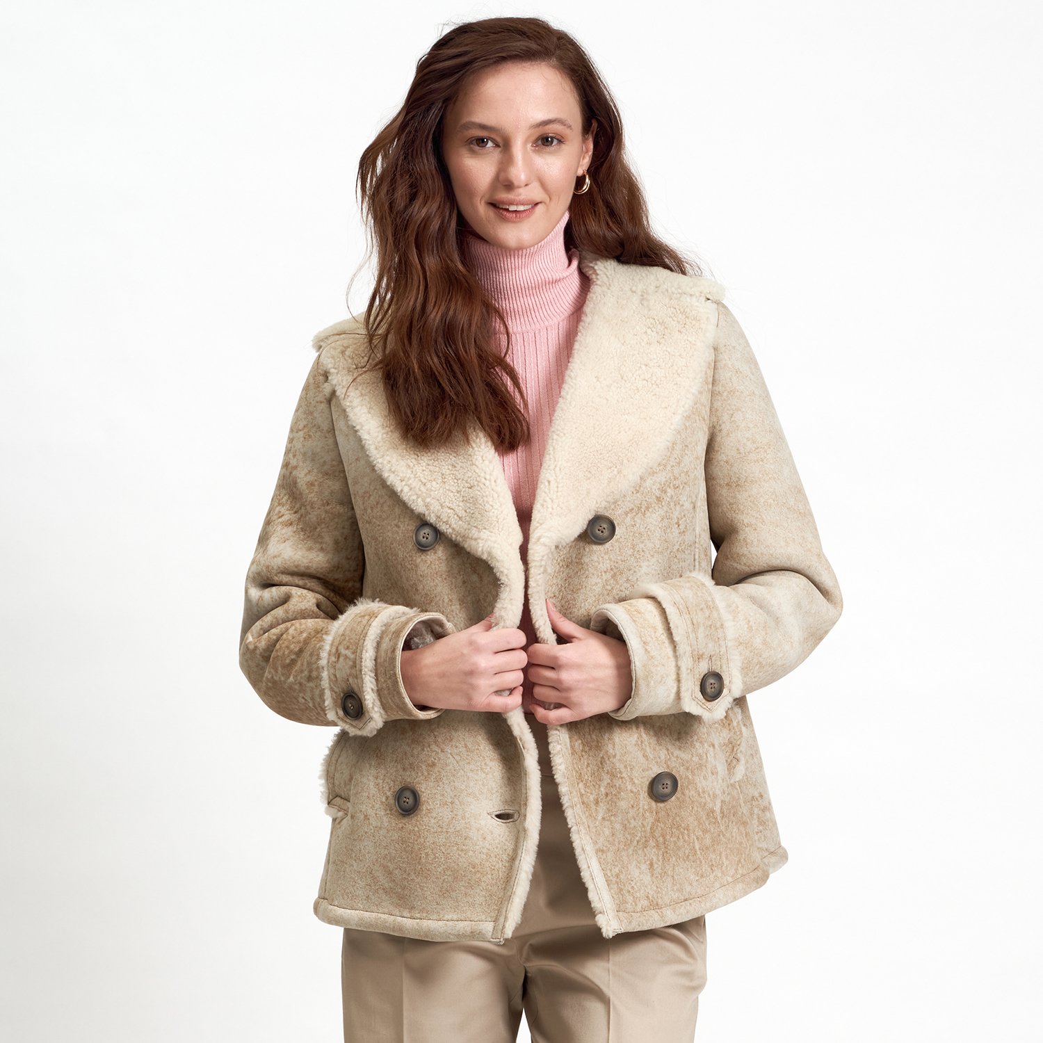 Önden kruvaze düğme kapamalı.