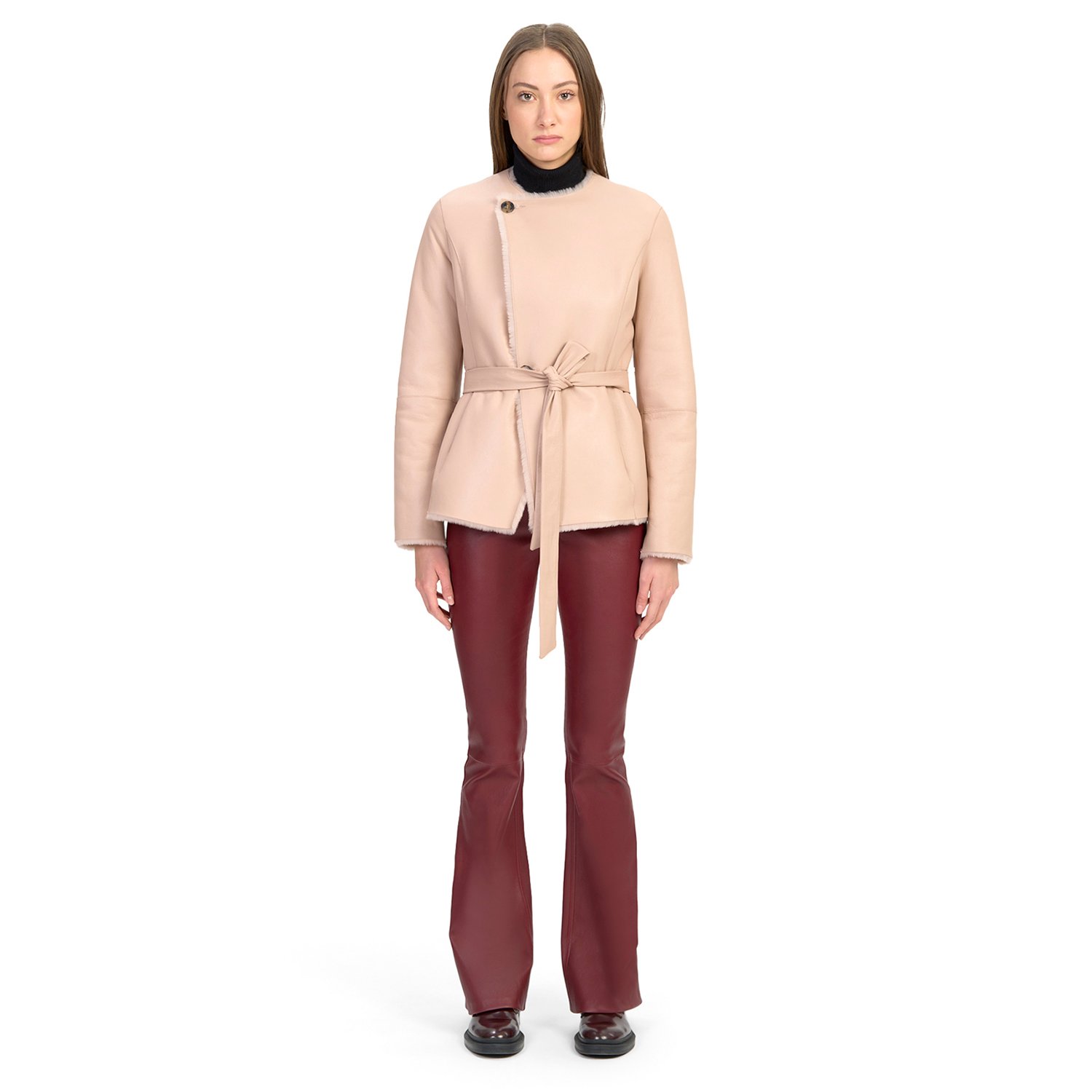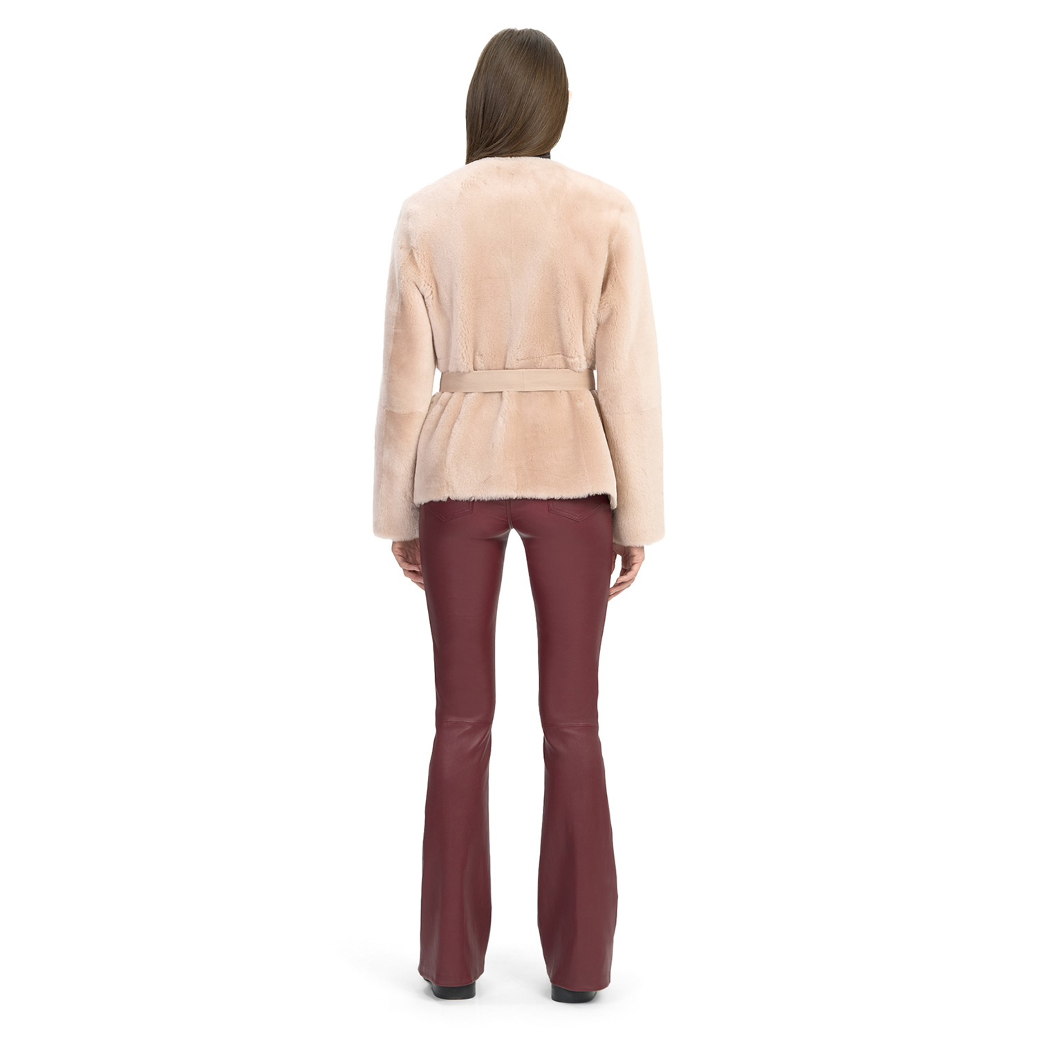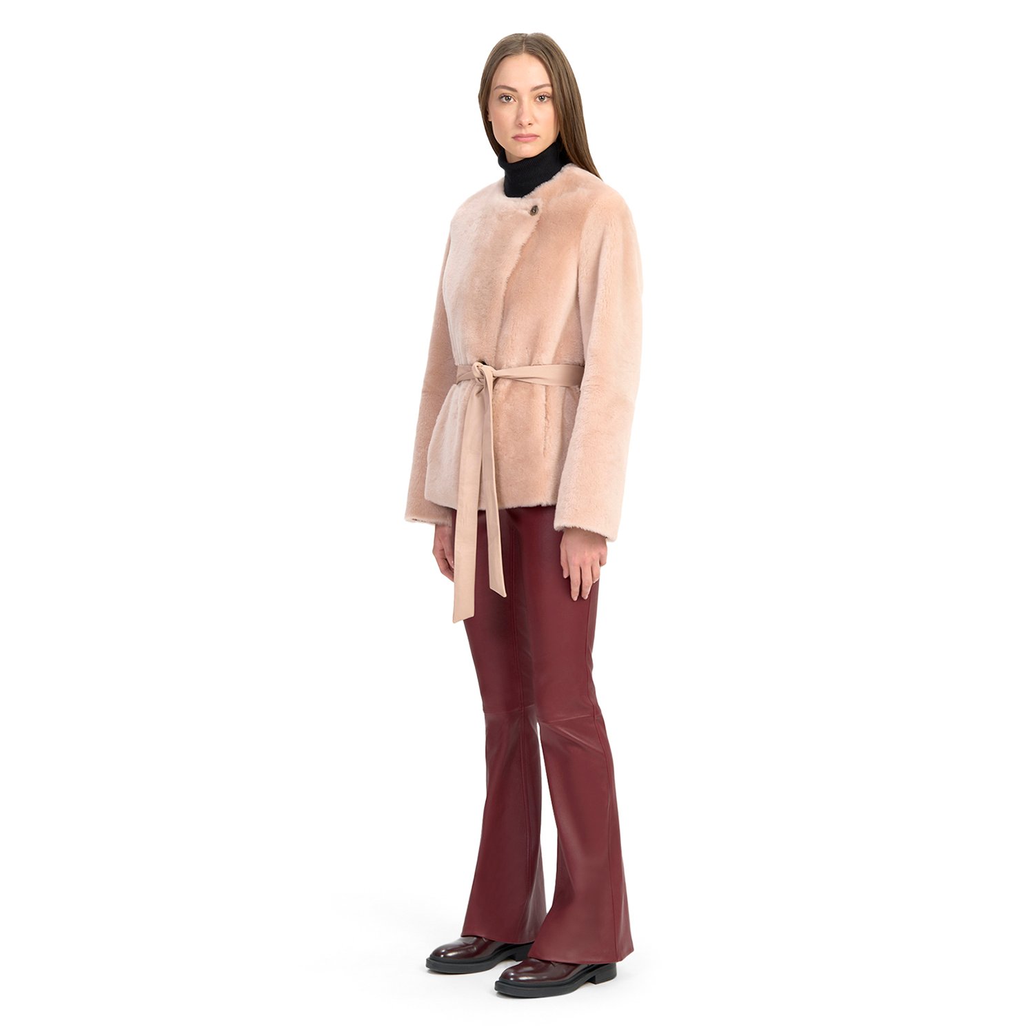 Kadın yuvarlak yakalı çift tarafllı kürk ceket.