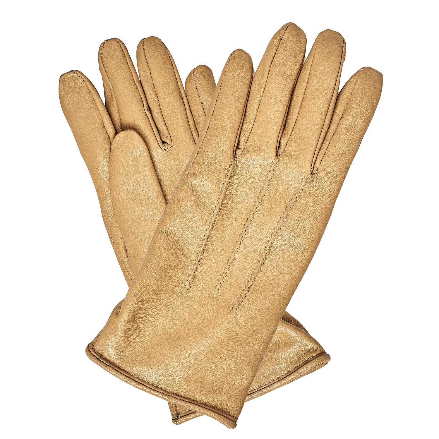 Bej Kadın Dikiş Detaylı Deri Eldiven