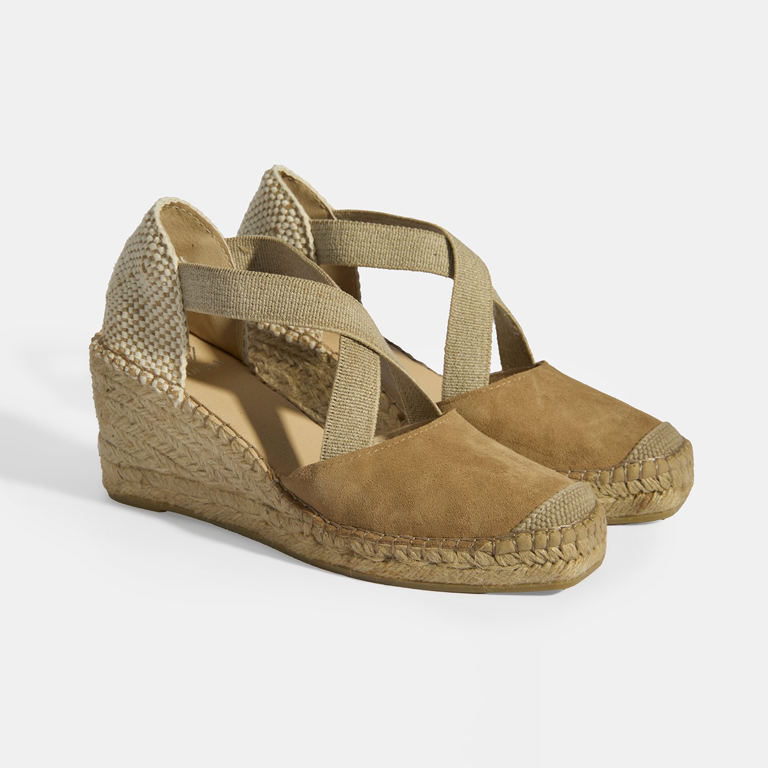 %100 süet deri, deri iç tabanlı, deri astarlı, lastik detaylı , jüt sargılı tpu tabanlı,kadın dolgu topuklu espadril.