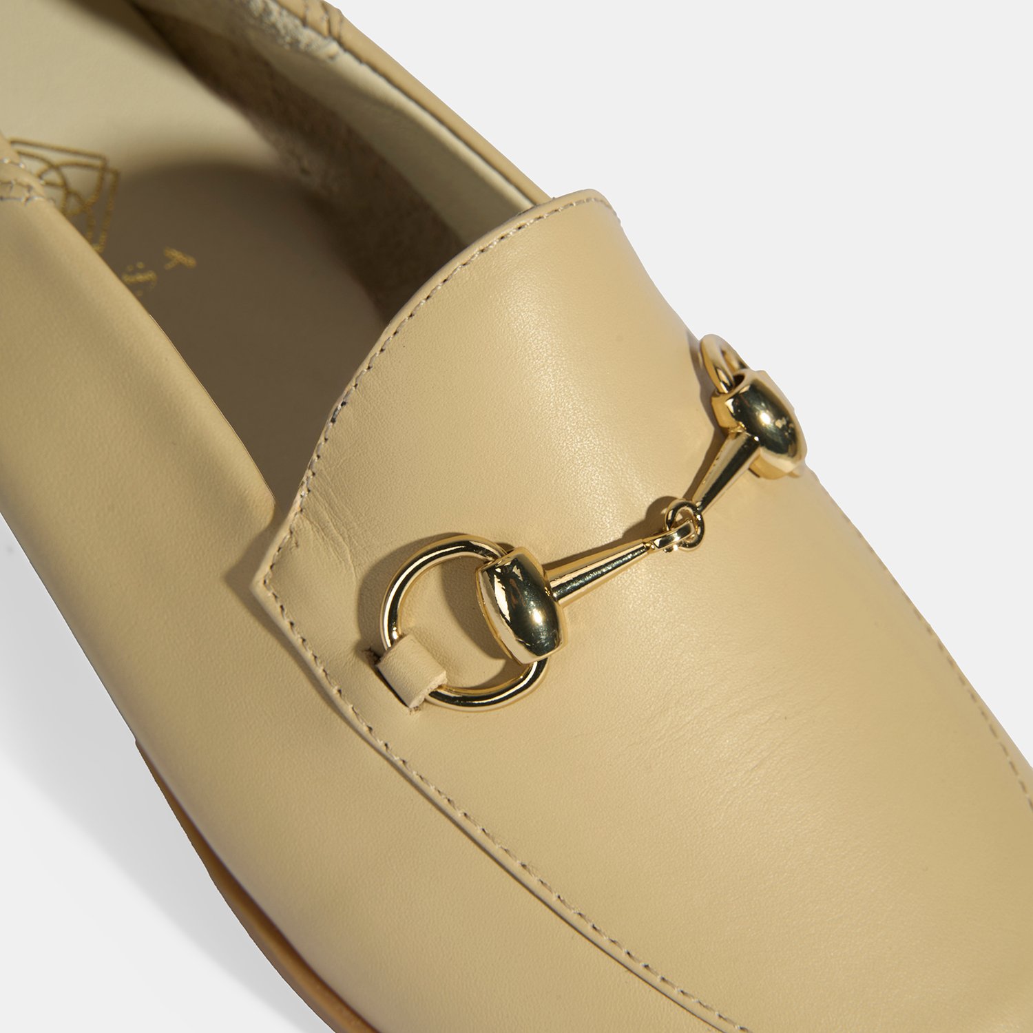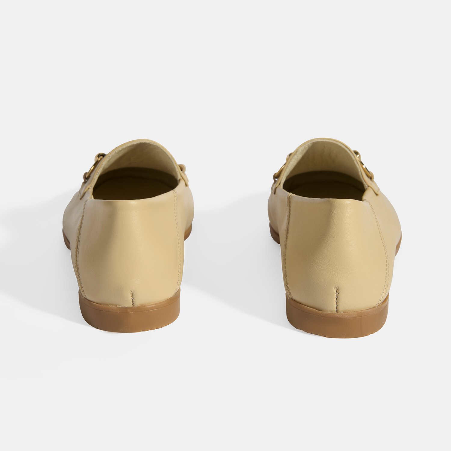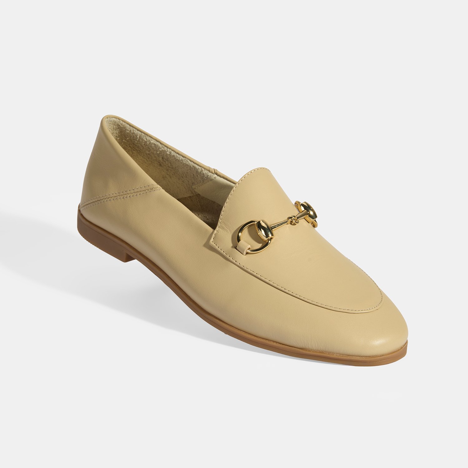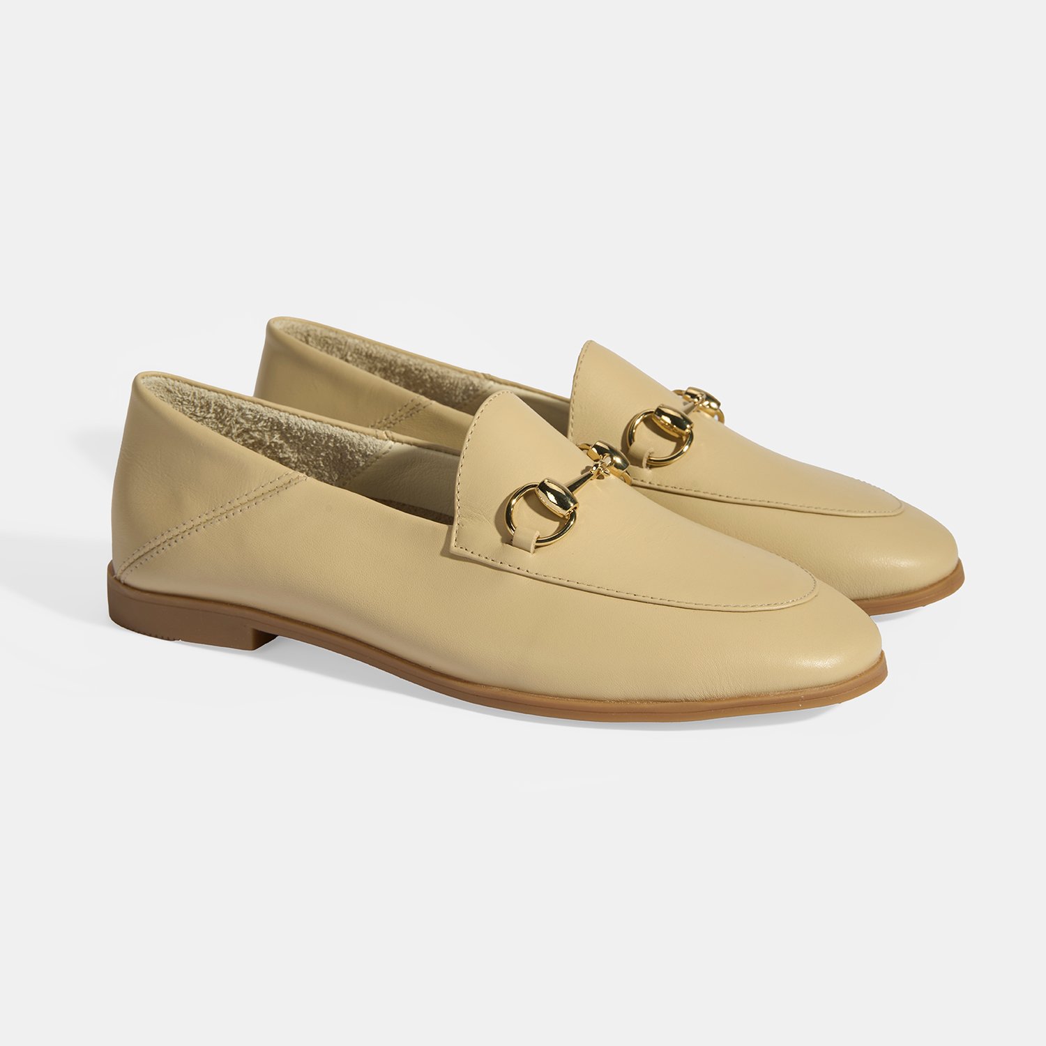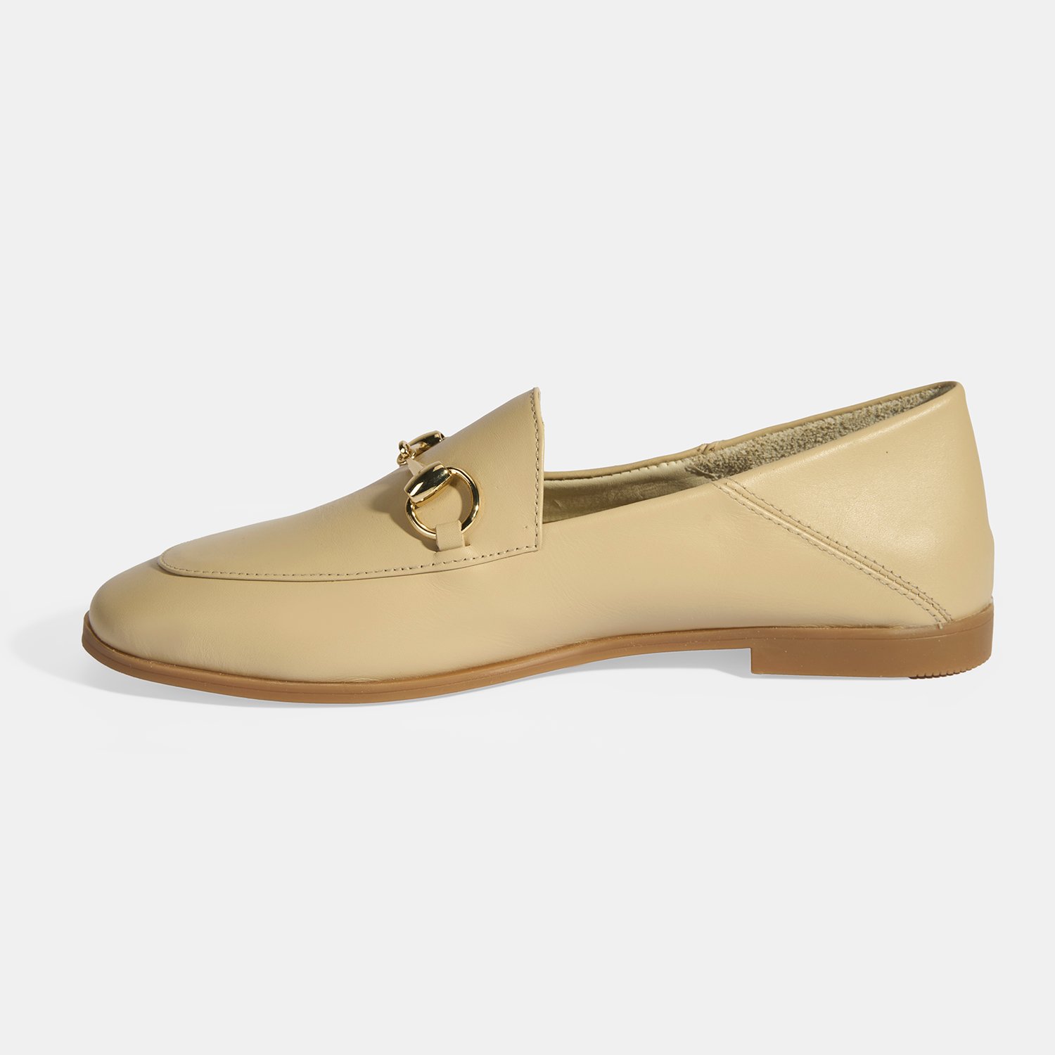Bej Kadın Toka Aksesuarlı Deri Loafer