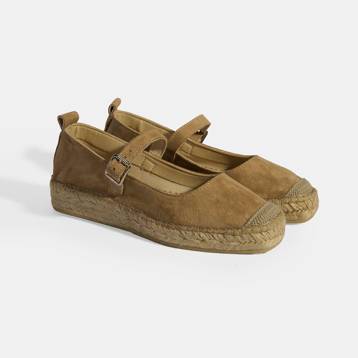 Bej Kadın Toka Detaylı Süet Mary Jane Espadril