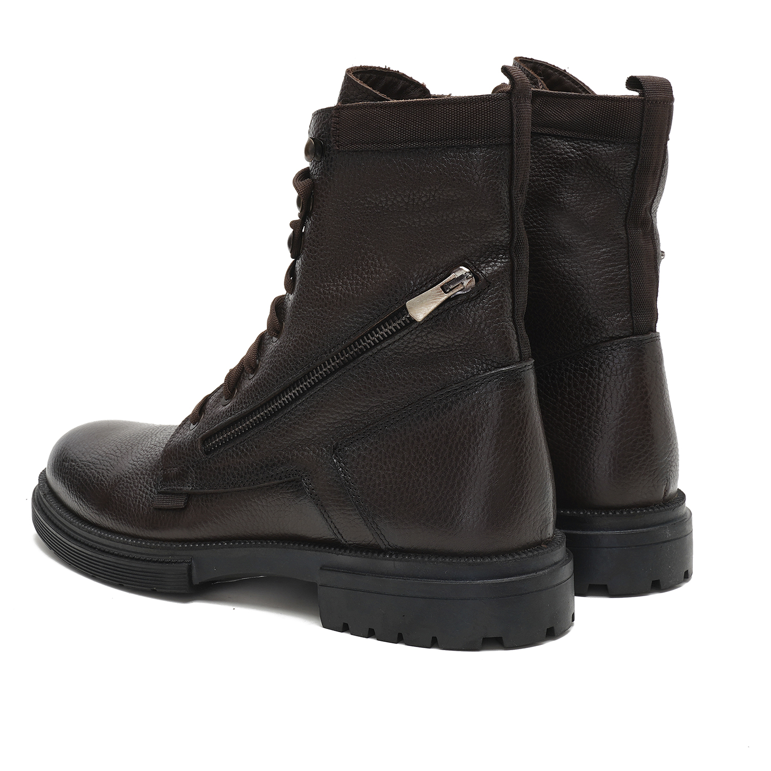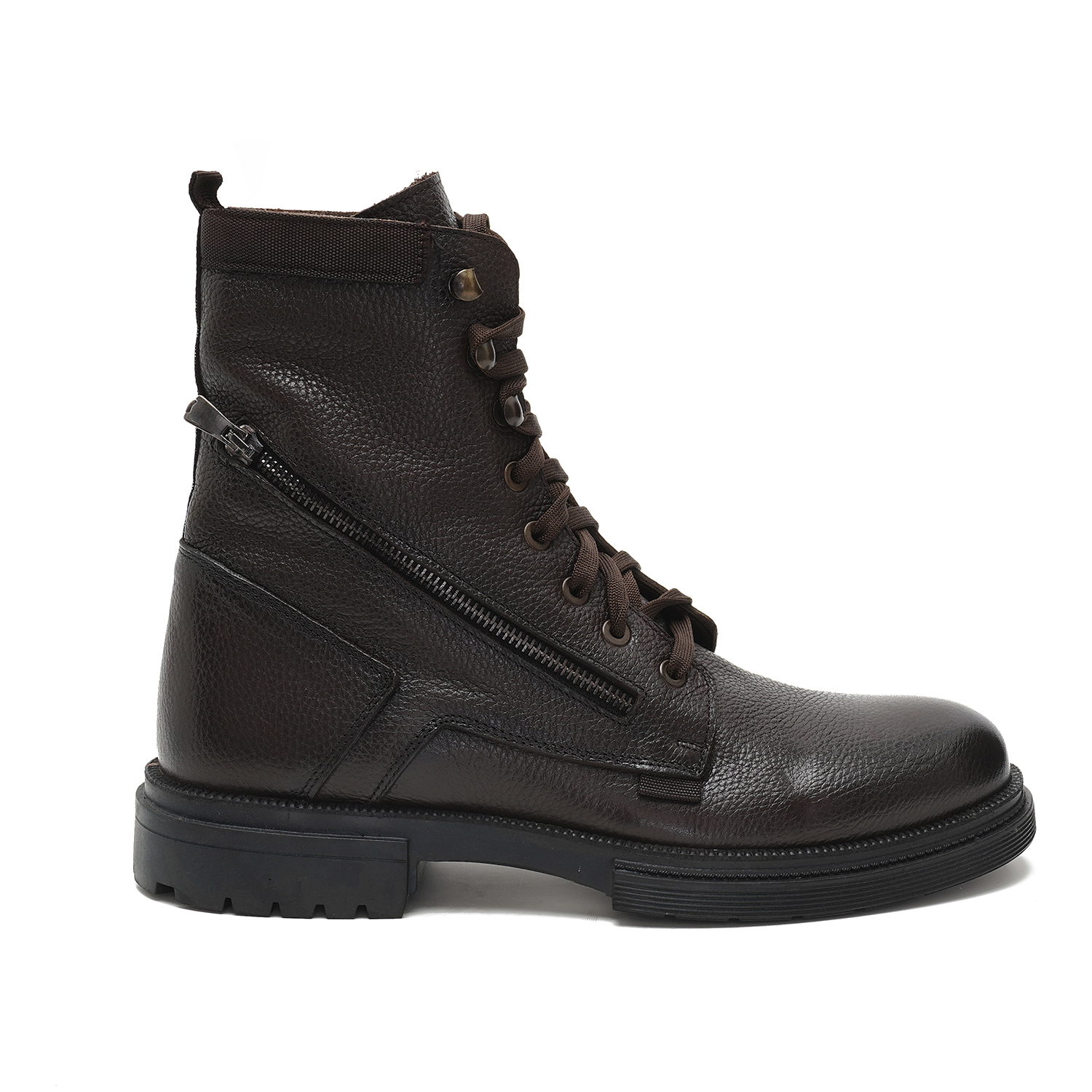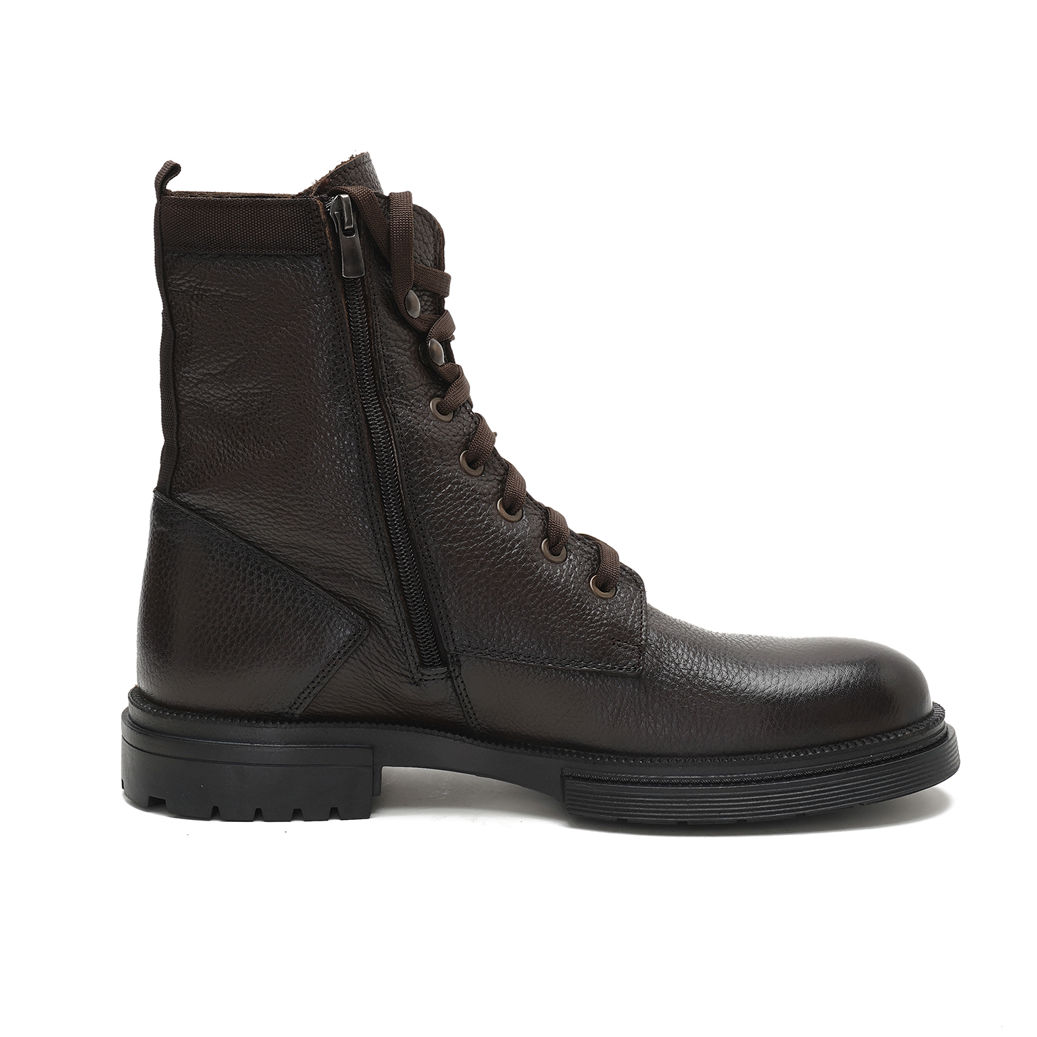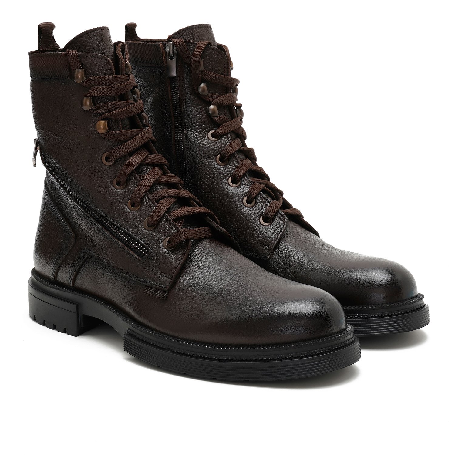 %100 deri, deri iç tabanlı, tekstil astarlı, kauçuk tabanlı bağcıklı erkek bot.