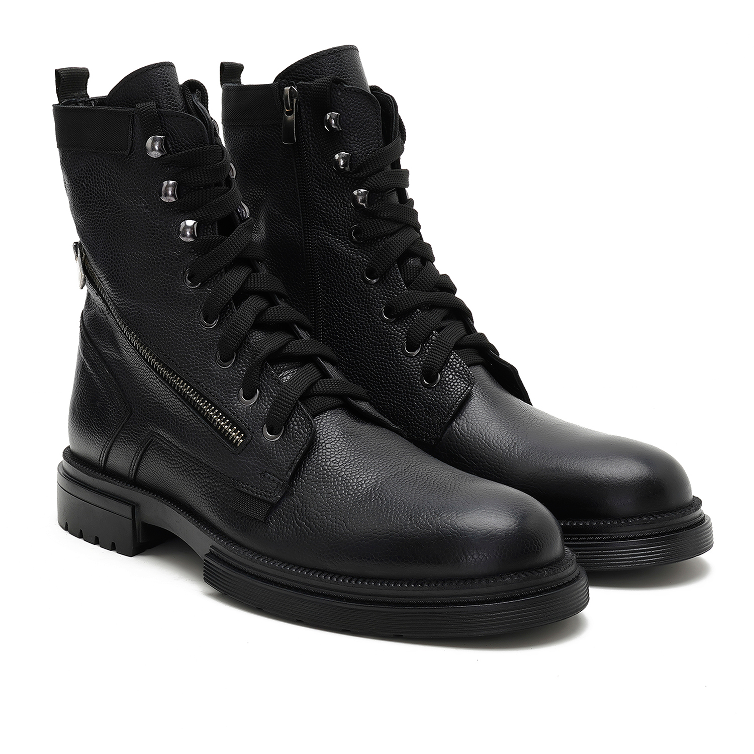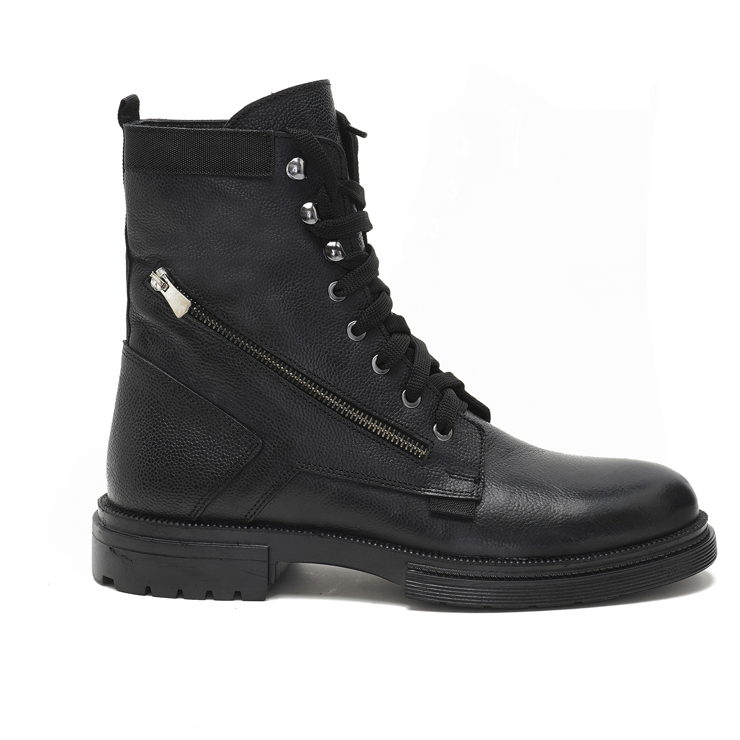 %100 deri, deri iç tabanlı, tekstil astarlı, kauçuk tabanlı bağcıklı erkek bot.