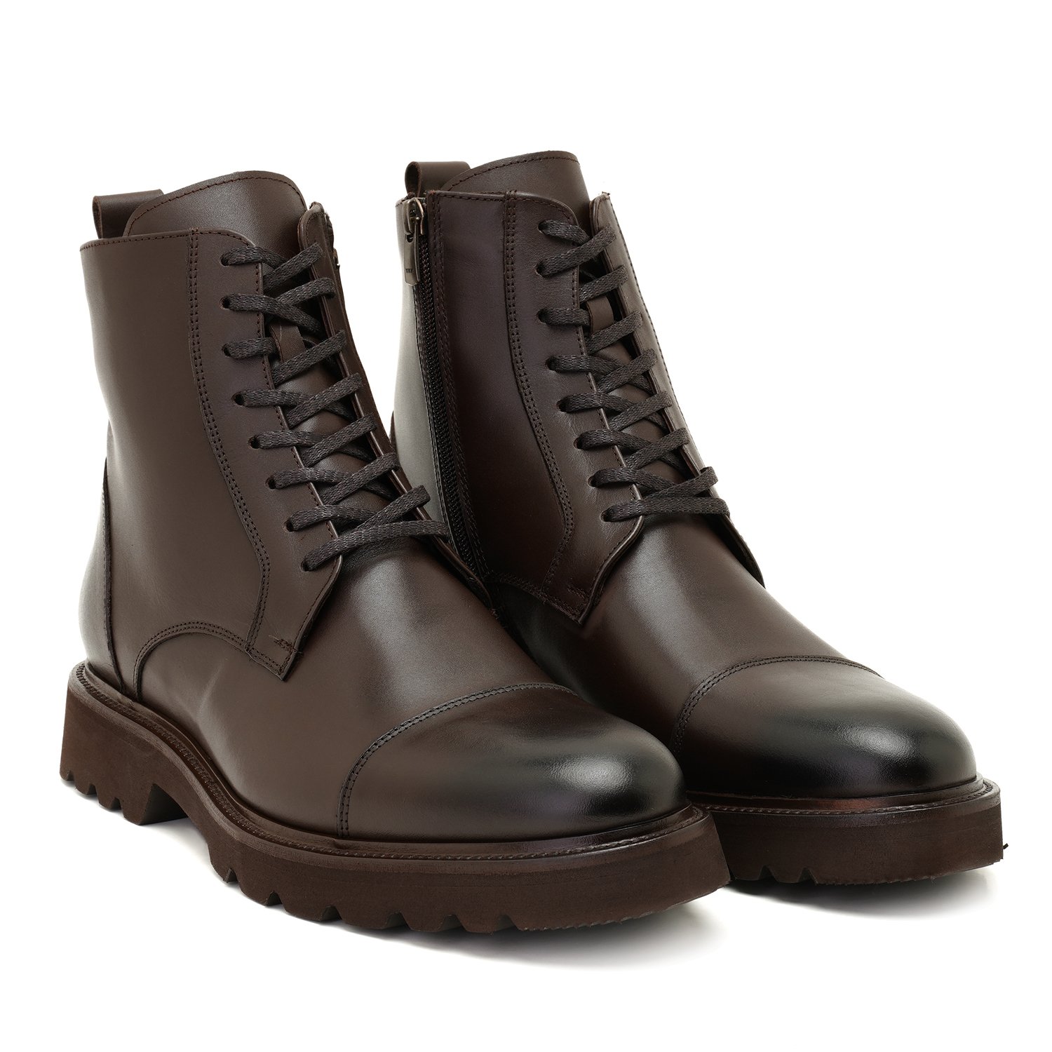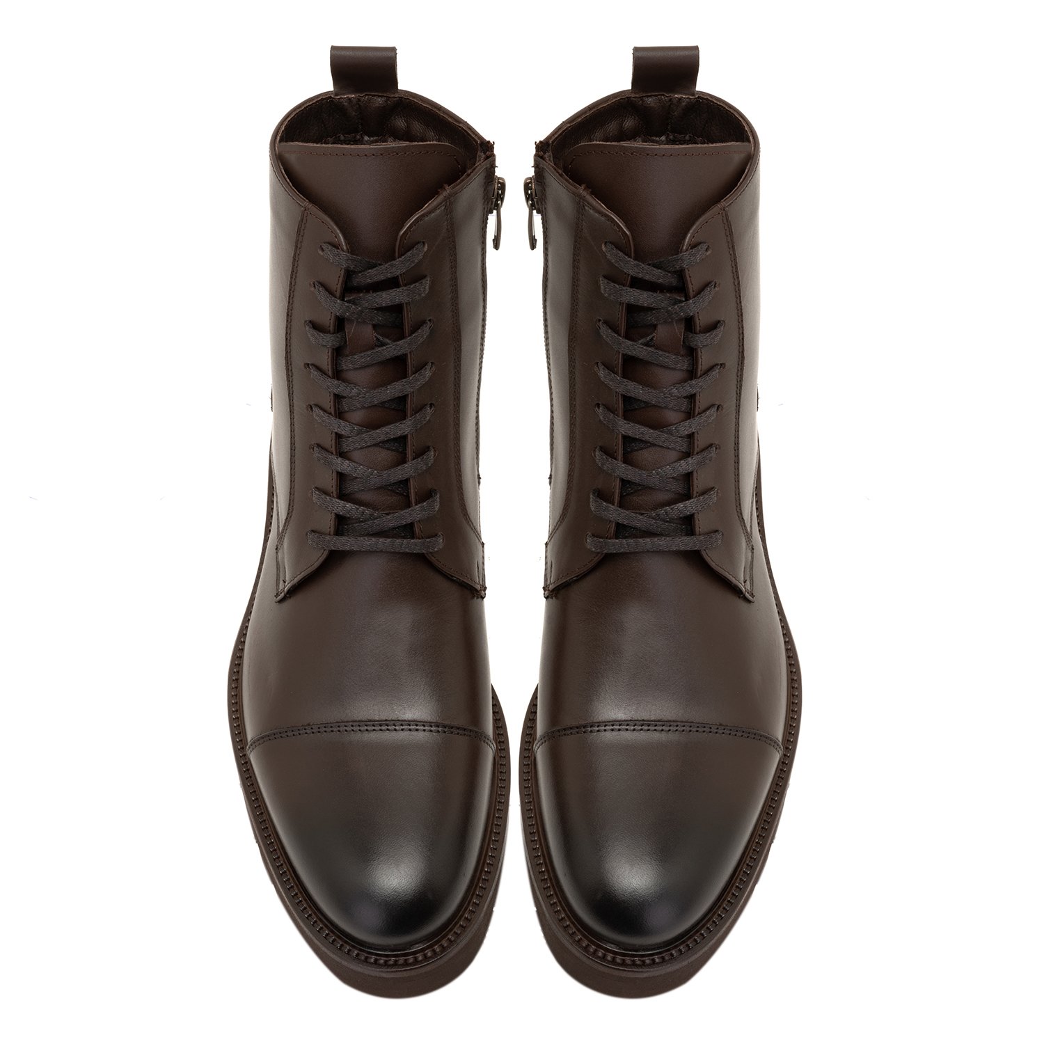 %100 deri, deri iç tabanlı, tekstil astarlı, eva tabanlı, bağcıklı erkek bot.