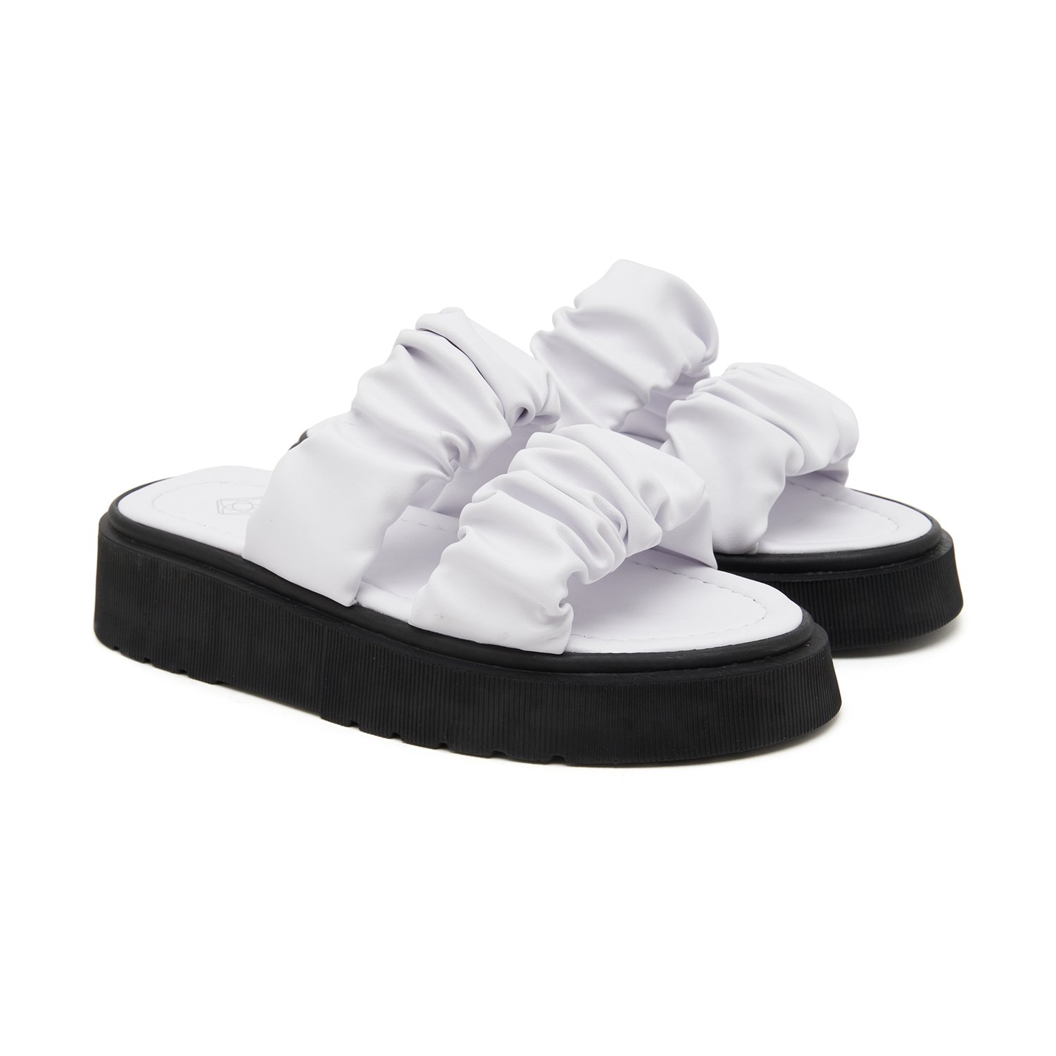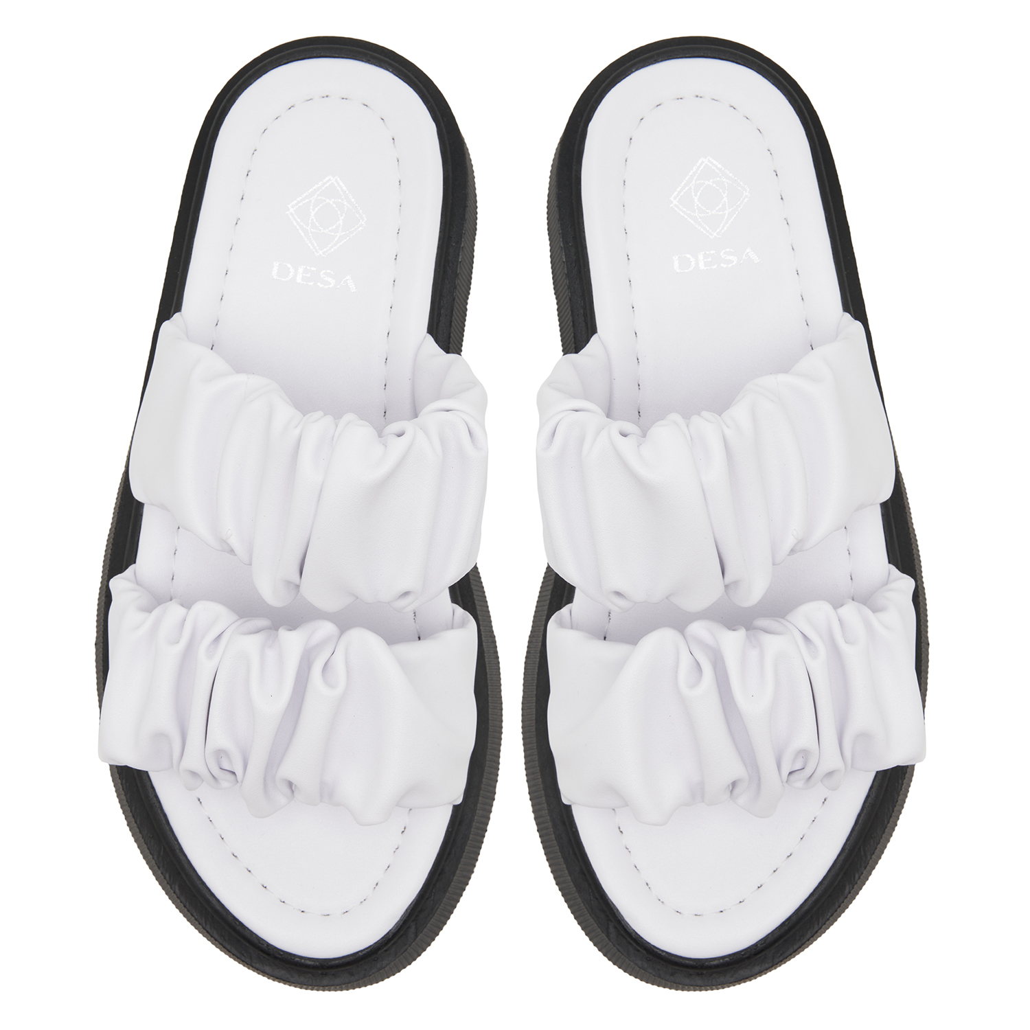 Drapeli bantlar ile detaylandırılmış, esnek ve hafif poliüretan tabanlı kadın sandalet.