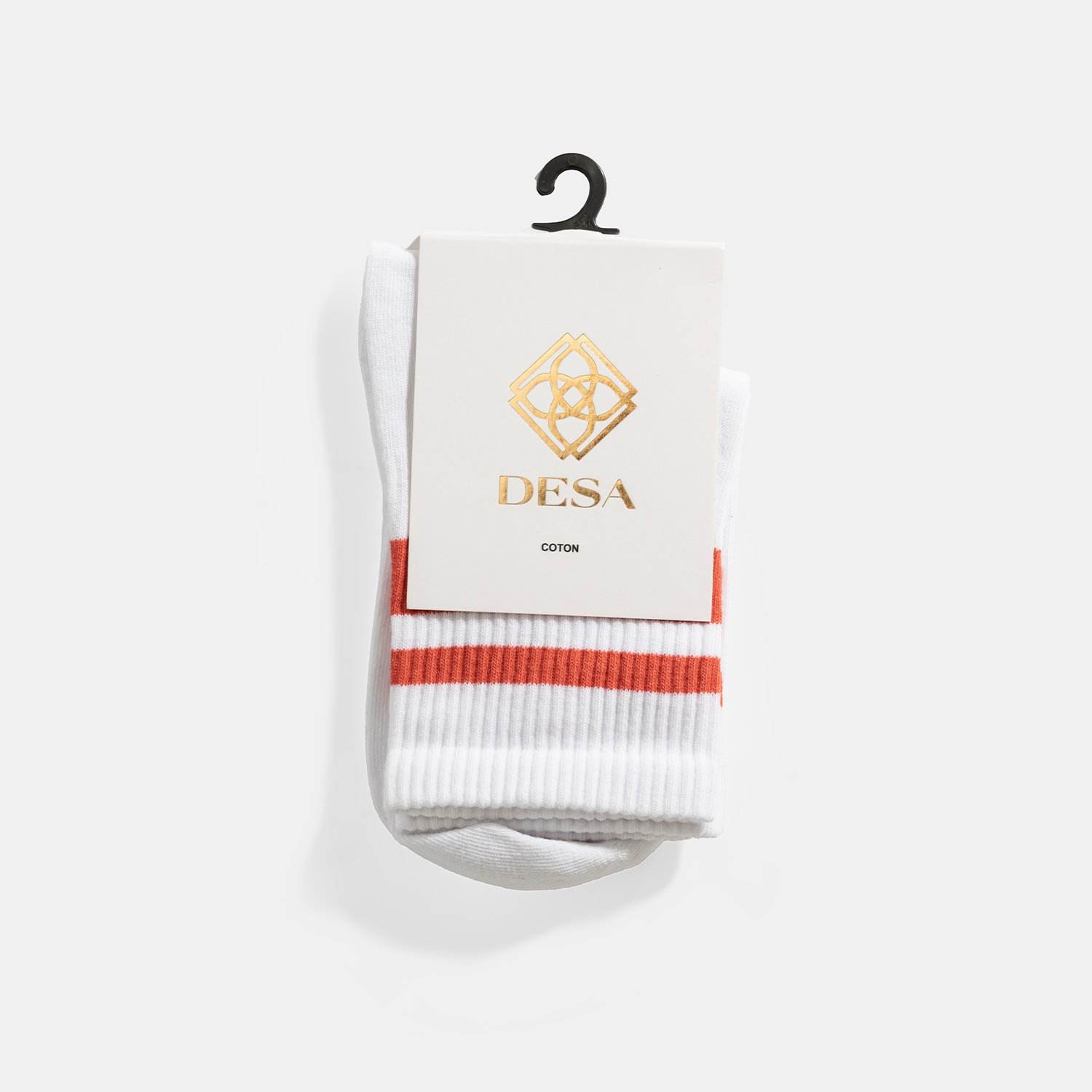 Beyaz-Turuncu kadın bambu tenis çorap.