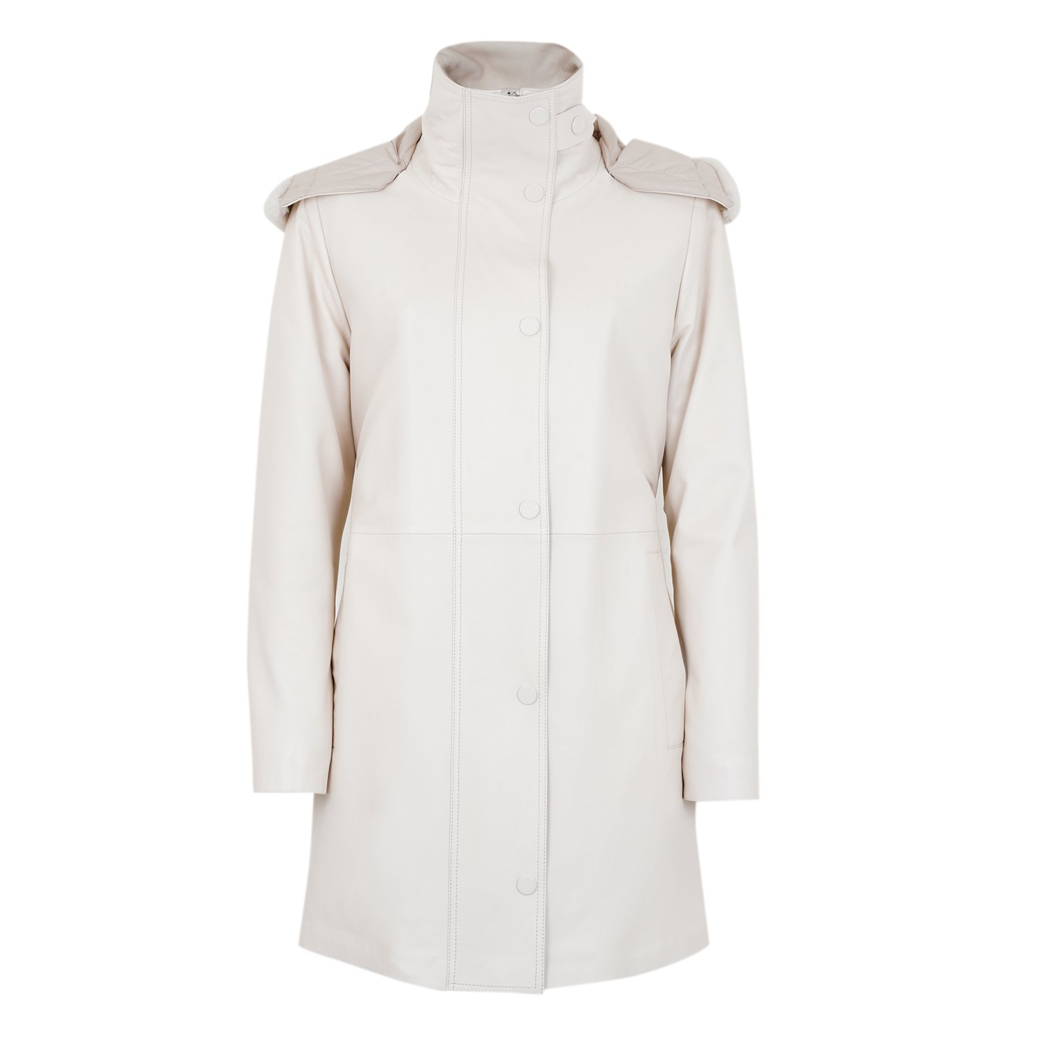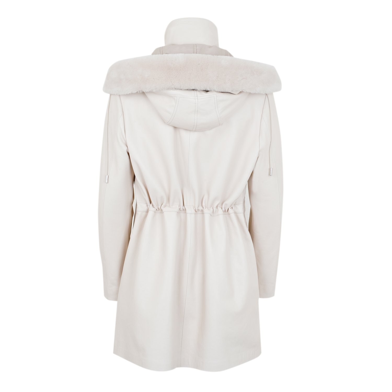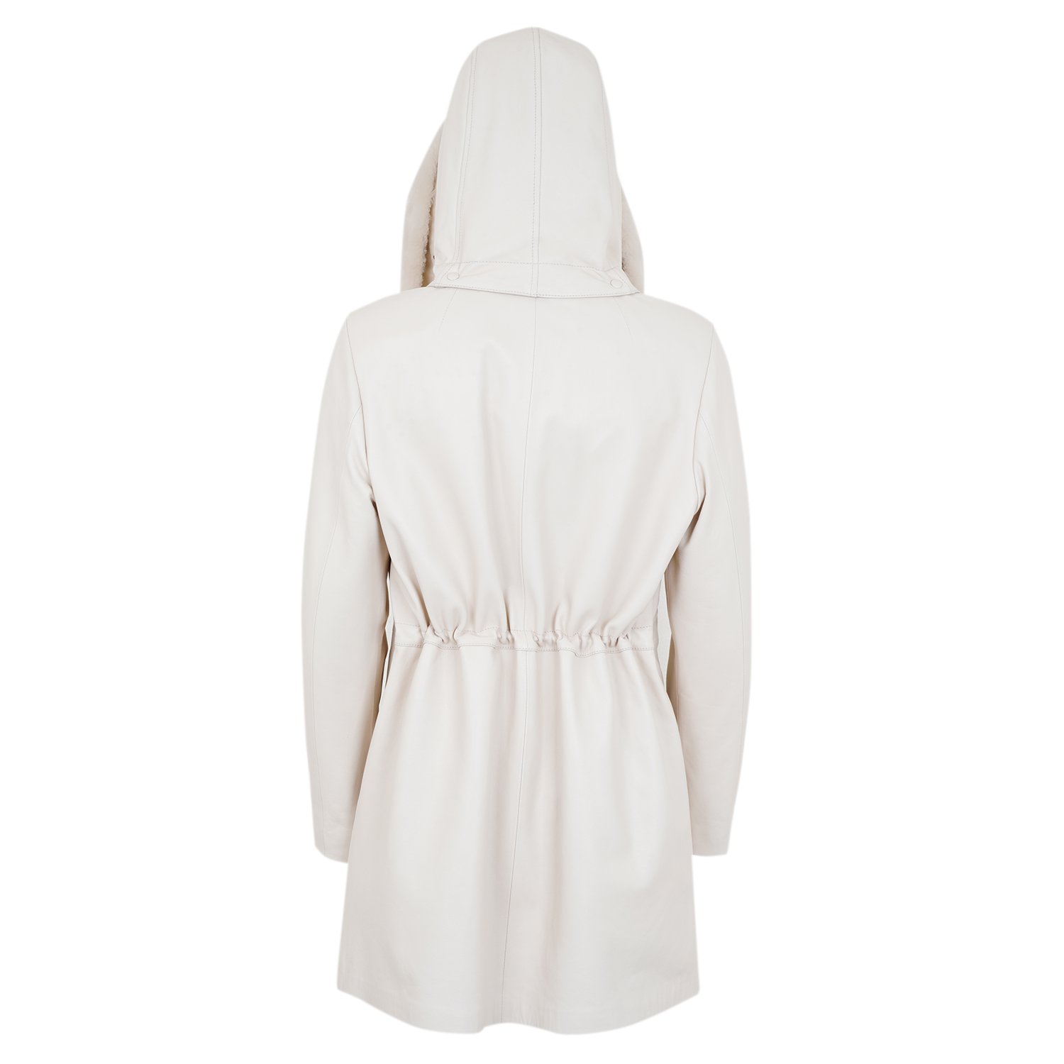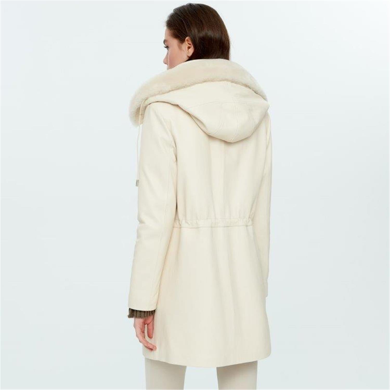 Biana Krem Kadın Kapüşonlu Deri Kaban