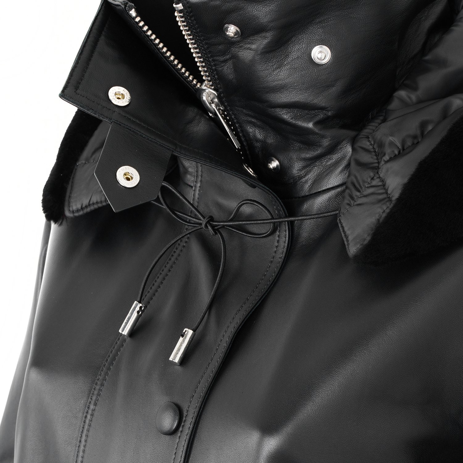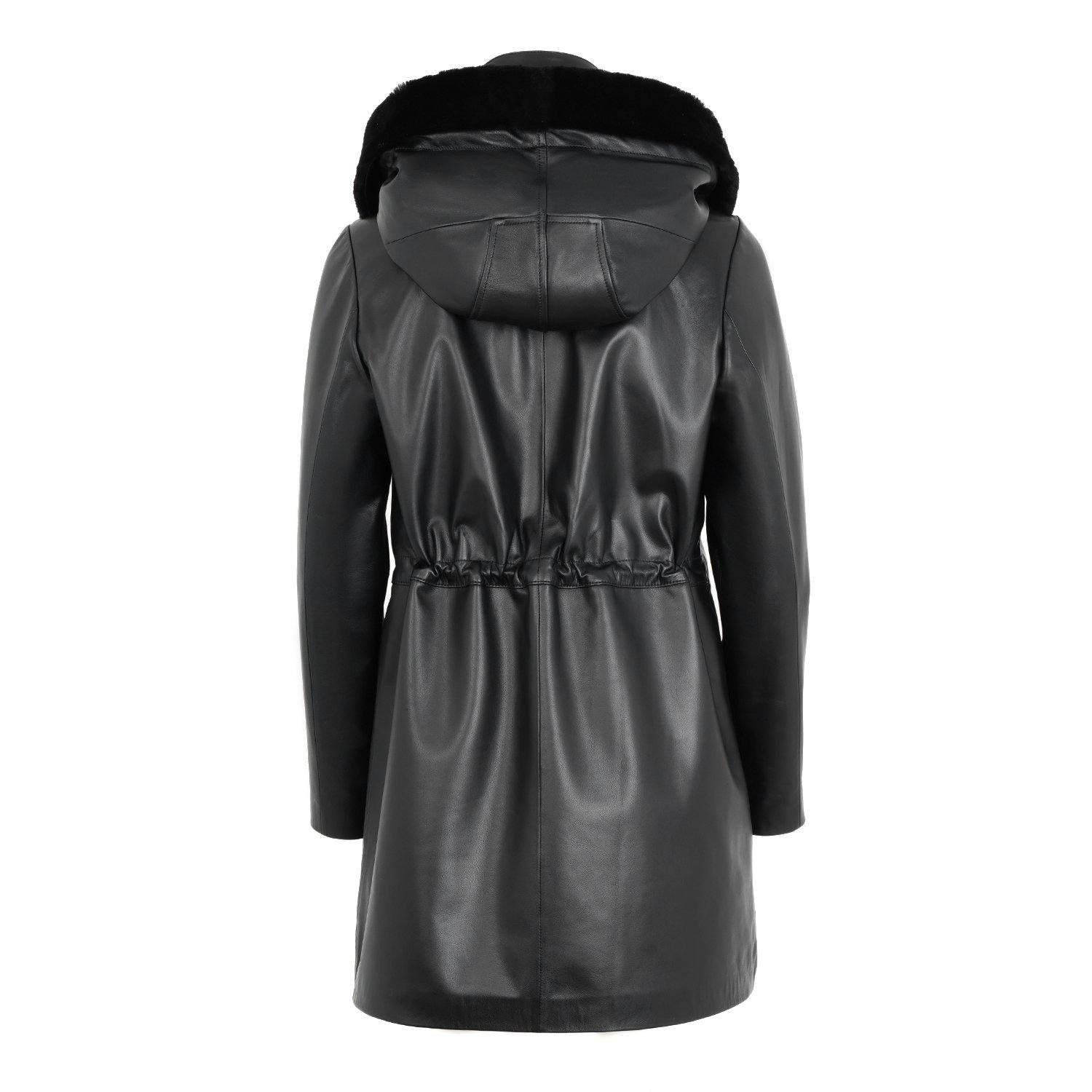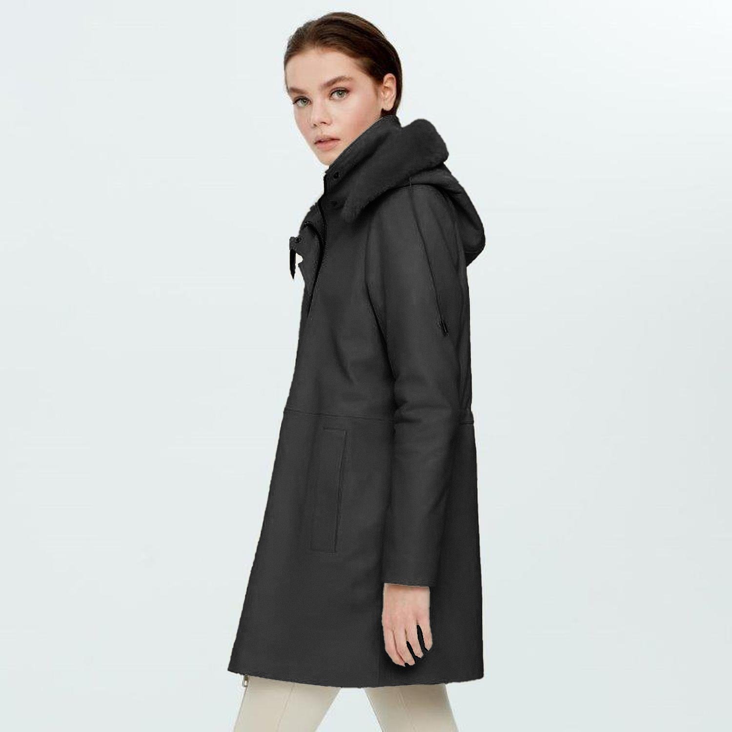 Biana Siyah Kadın Kapüşonlu Deri Kaban