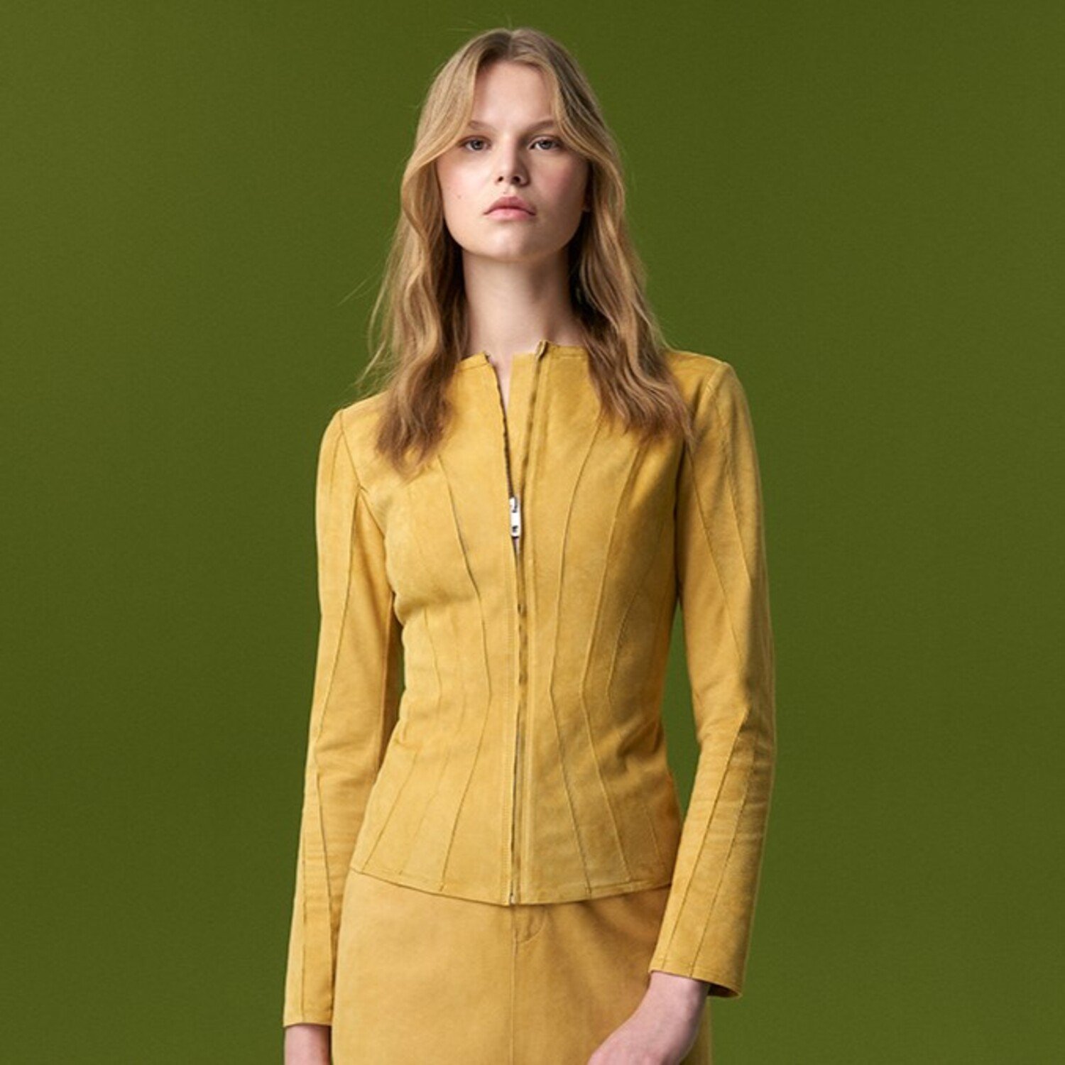 Bienna Sarı Kadın Panelli Süet Deri Ceket