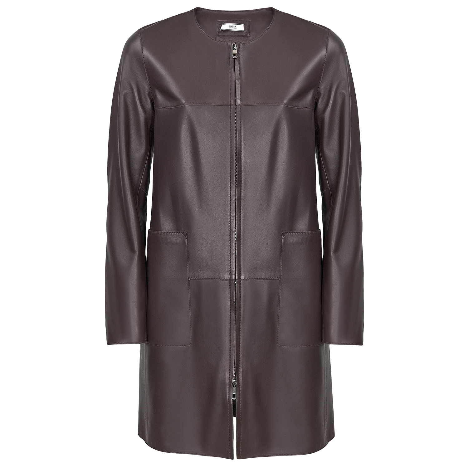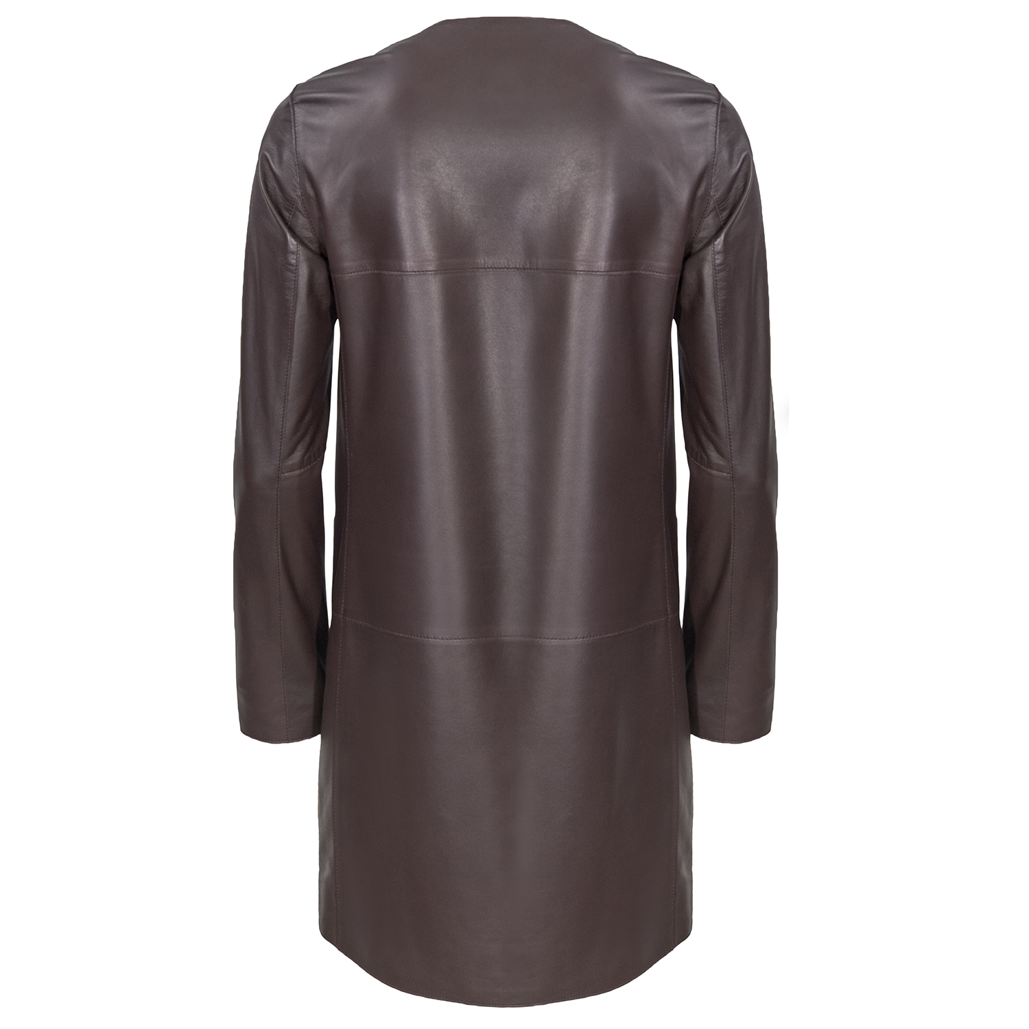 Kadın, deri pardösüYuvarlak yakalıÖnden biyeli ve metal fermuar kapamalıÖnde iki adet torba formunda geniş cebi bulunmaktadır.