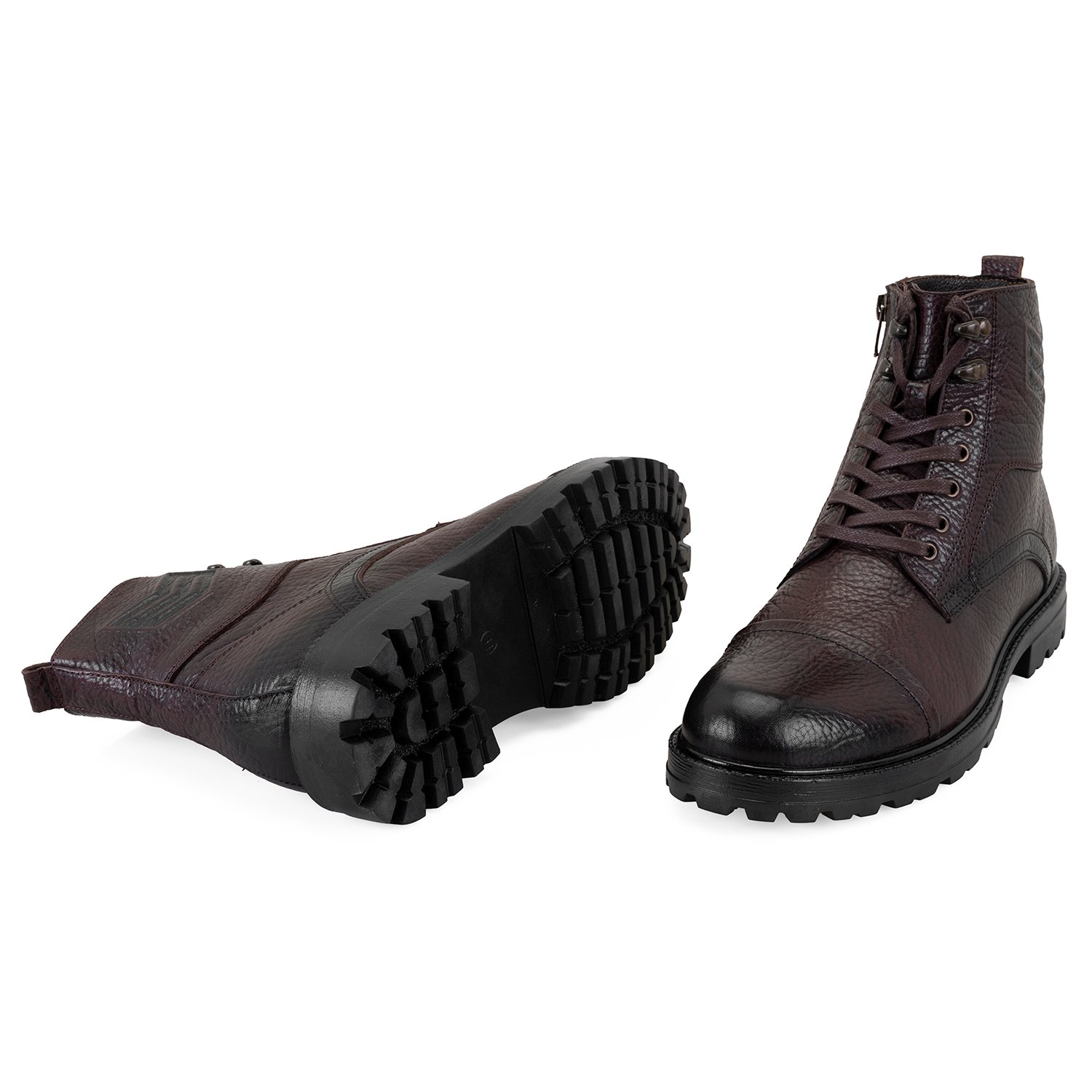 %100 deri, deri iç tabanlı, tekstil astarlı, kauçuk tabanlı, içten fermuarlı, bağcıklı erkek postal.