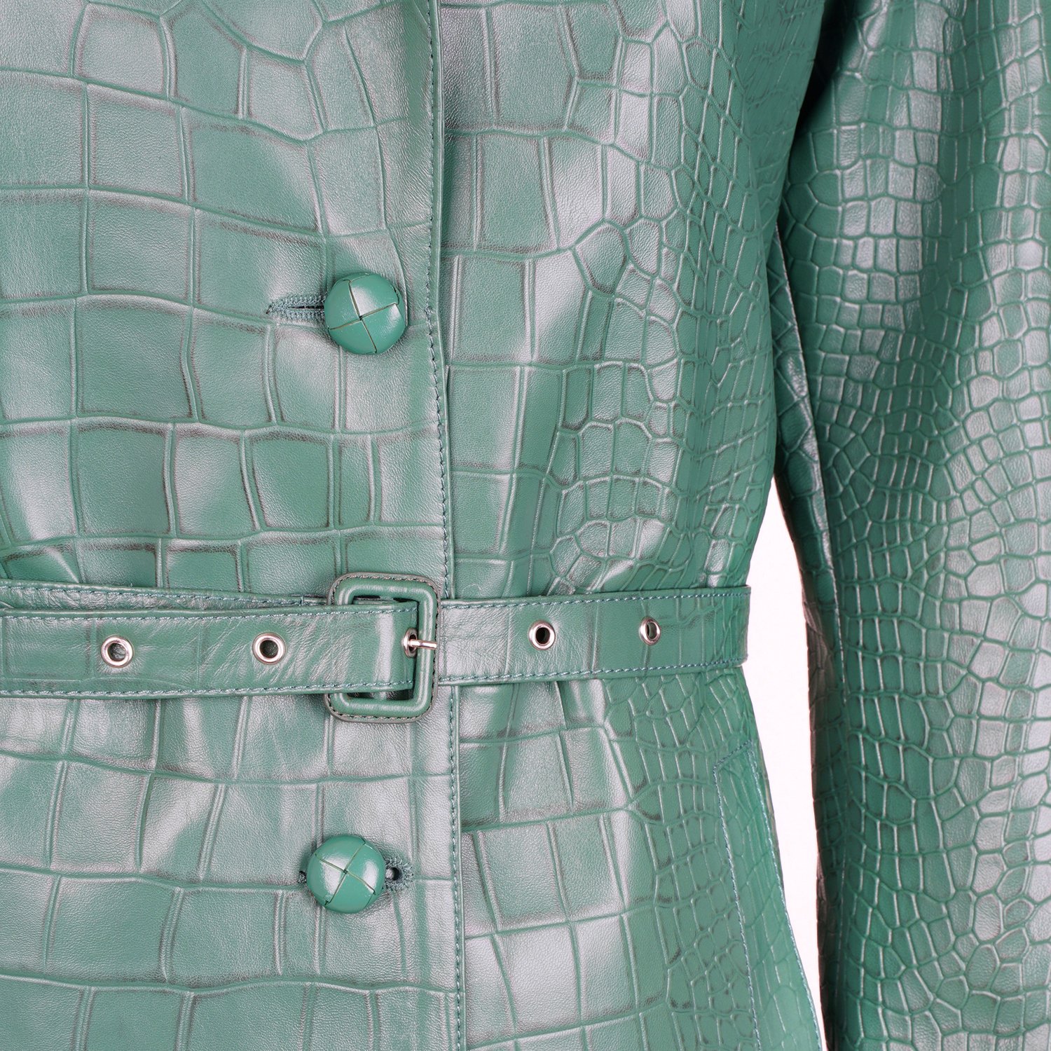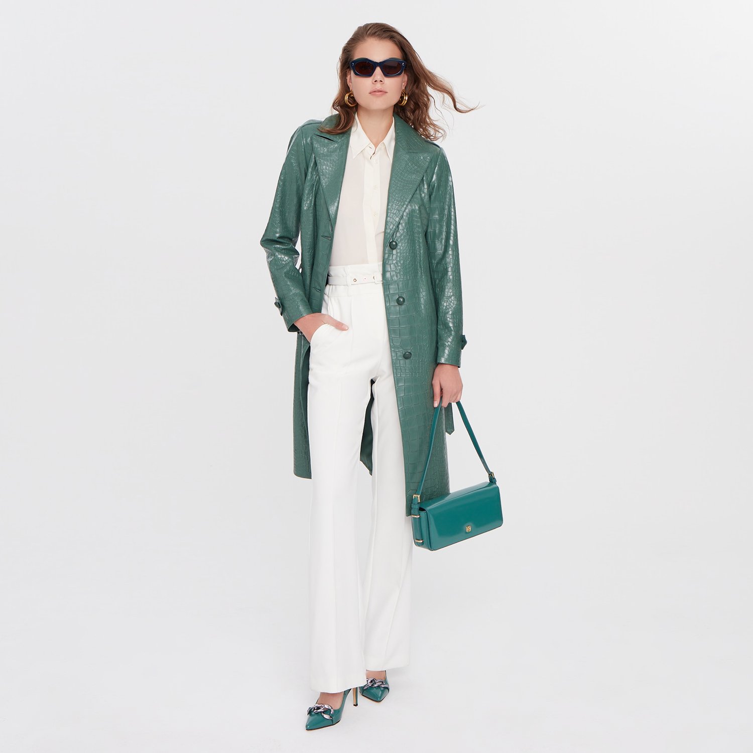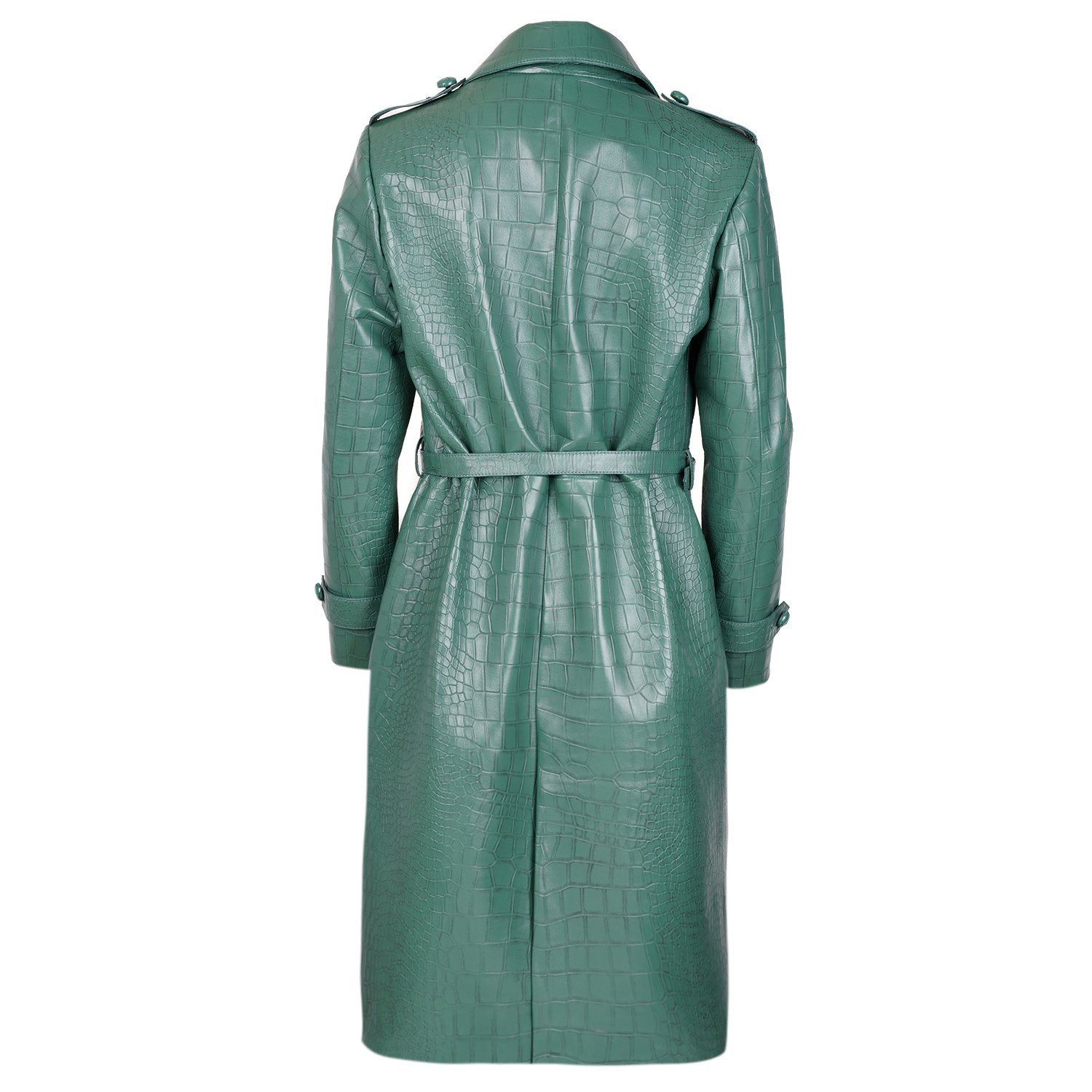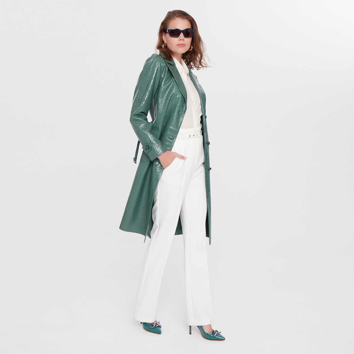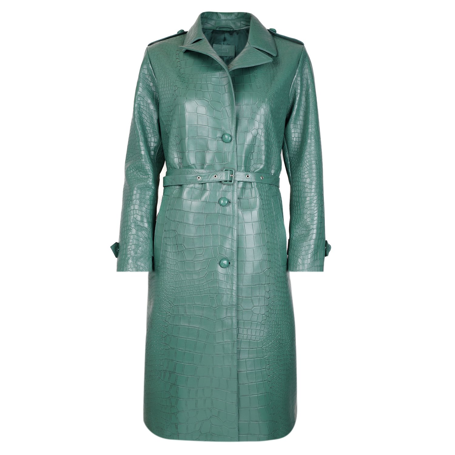 Briona Yeşil Kadın Kroko Baskılı Deri Trençkot