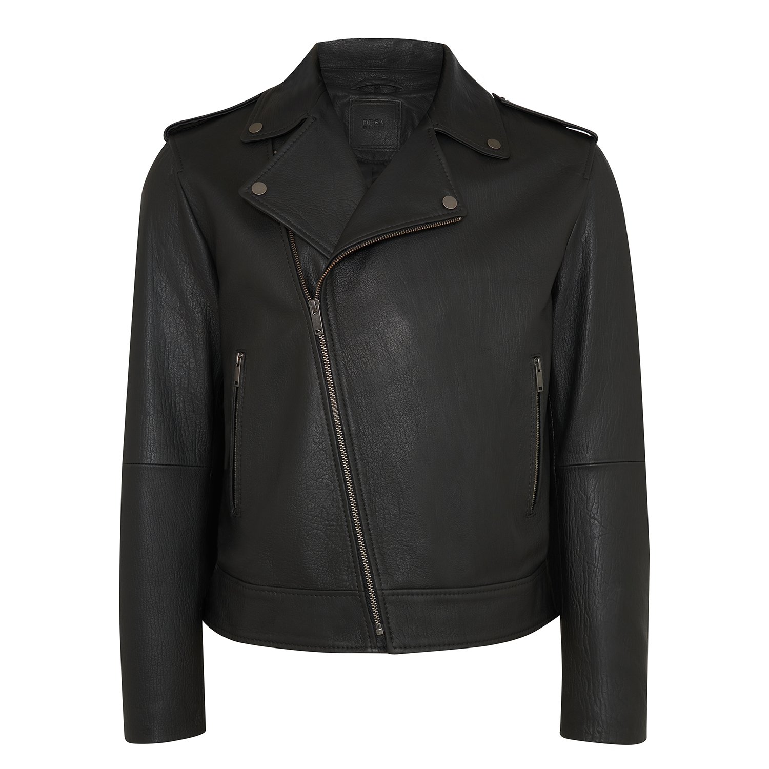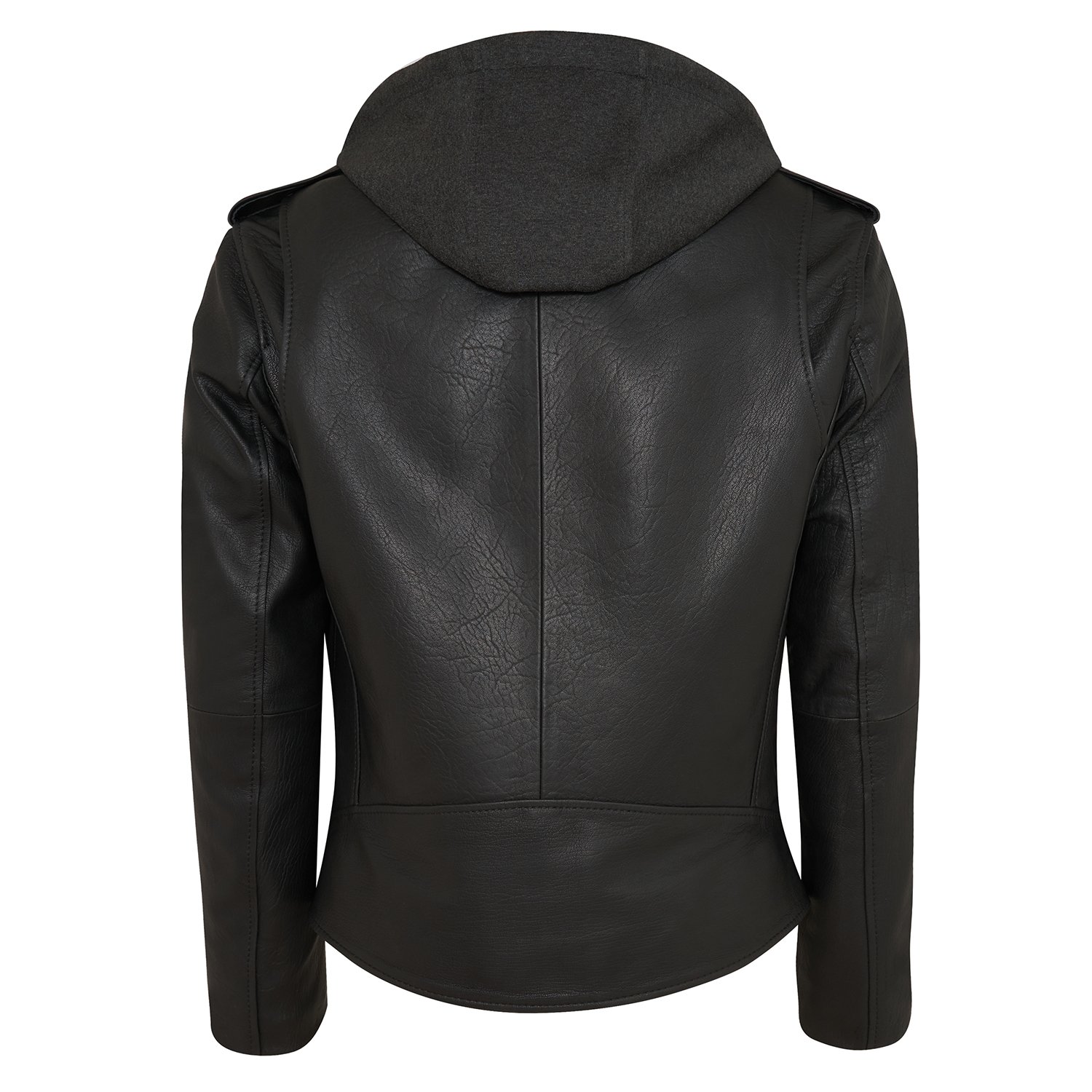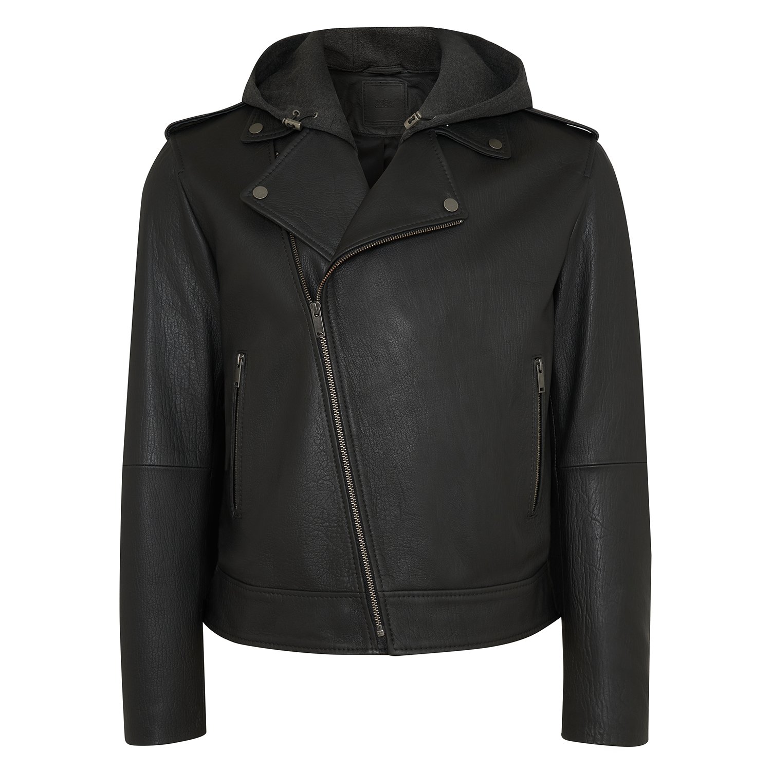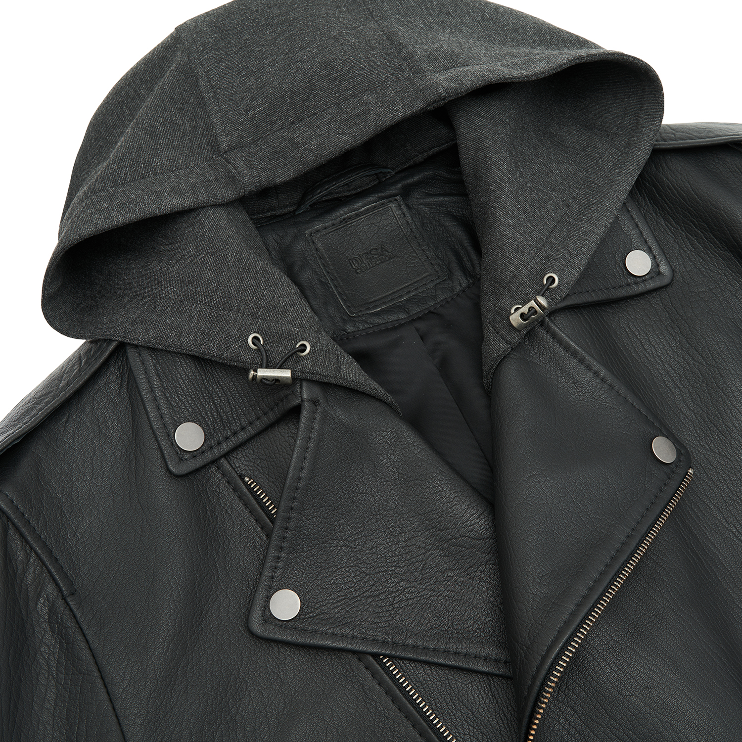 Bryan Siyah Erkek Kapüşonlu Deri Biker Ceket