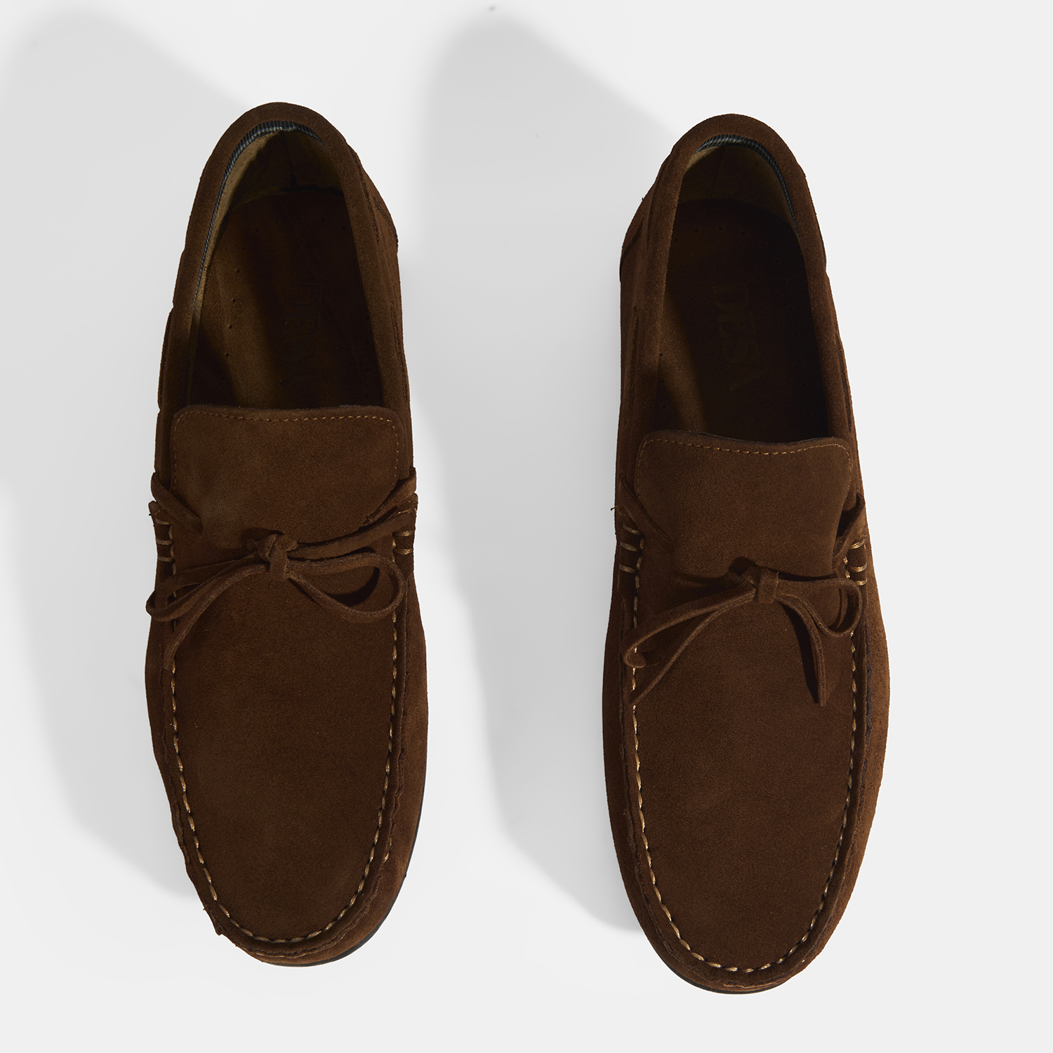 %100 süet deri, Tekstil astarlı, deri mostra, kauçuk tabanlı süs bağcıklı erkek loafer.
