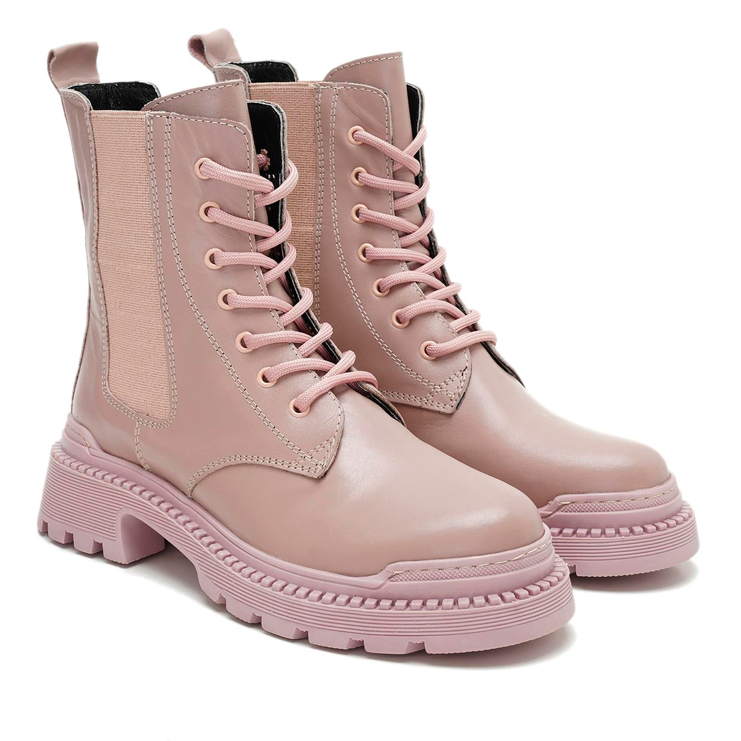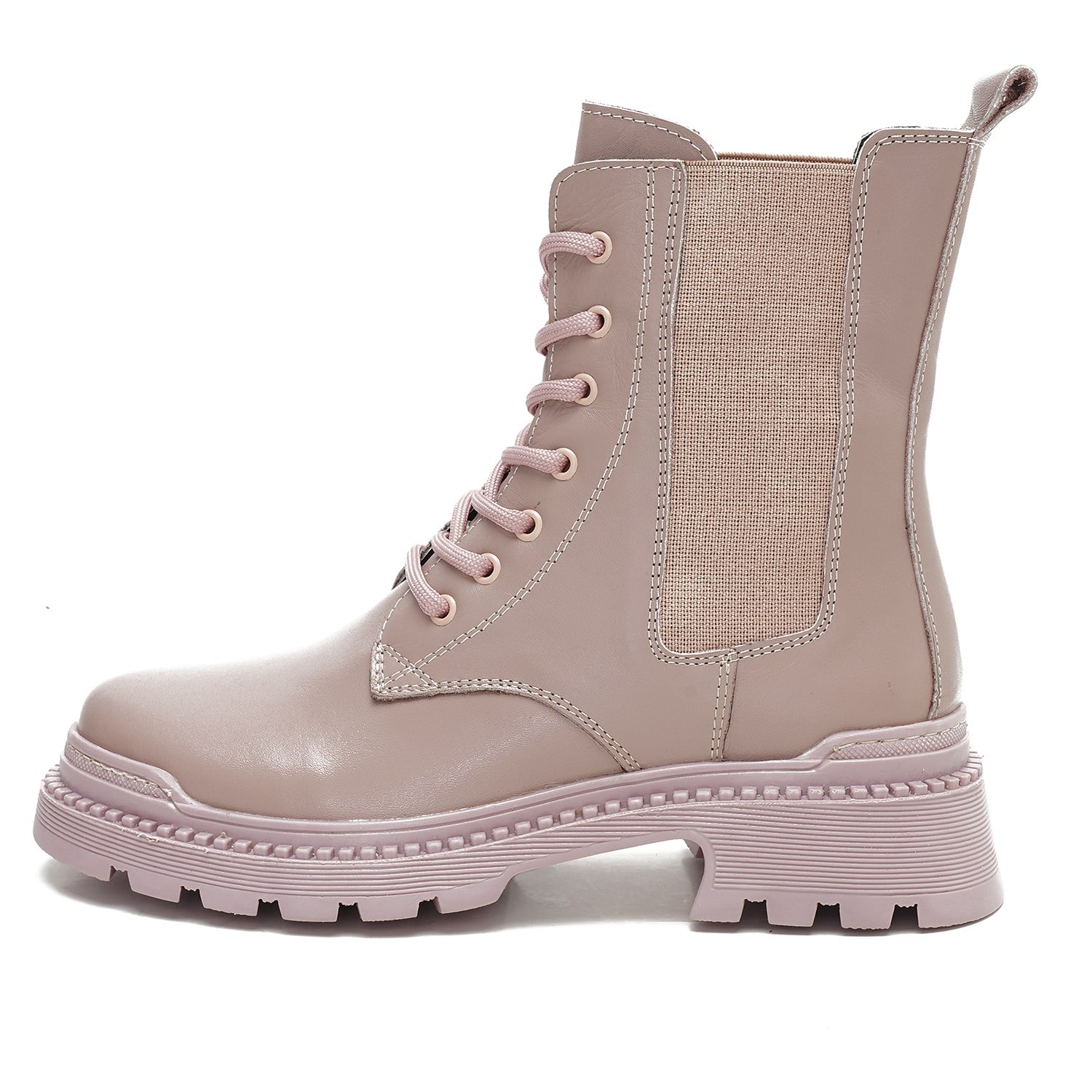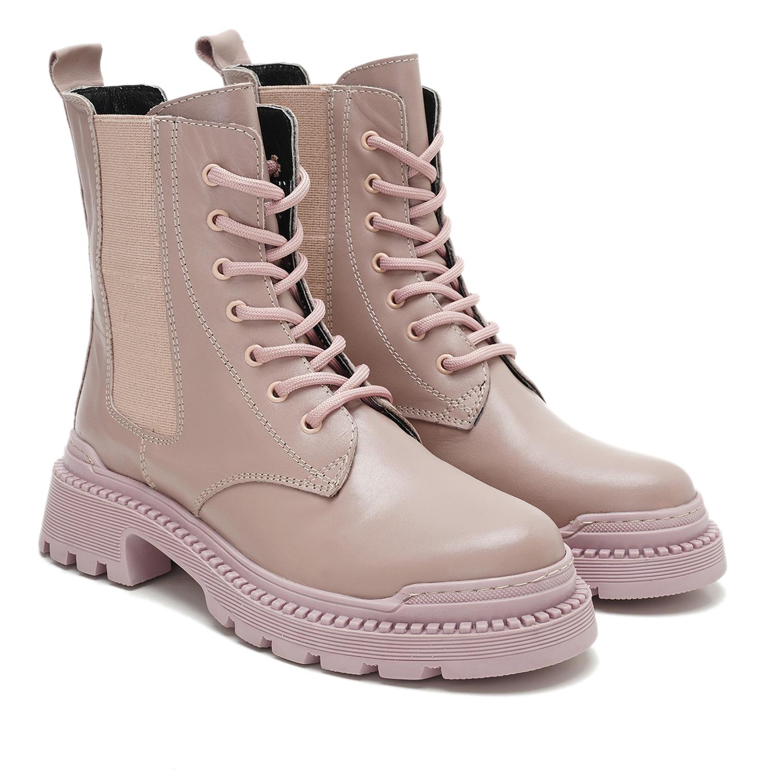 %100 deri, deri iç tabanlı, tekstil astarlı, thermo tabanlı, lastik detaylı, bağcıklı kadın bot.