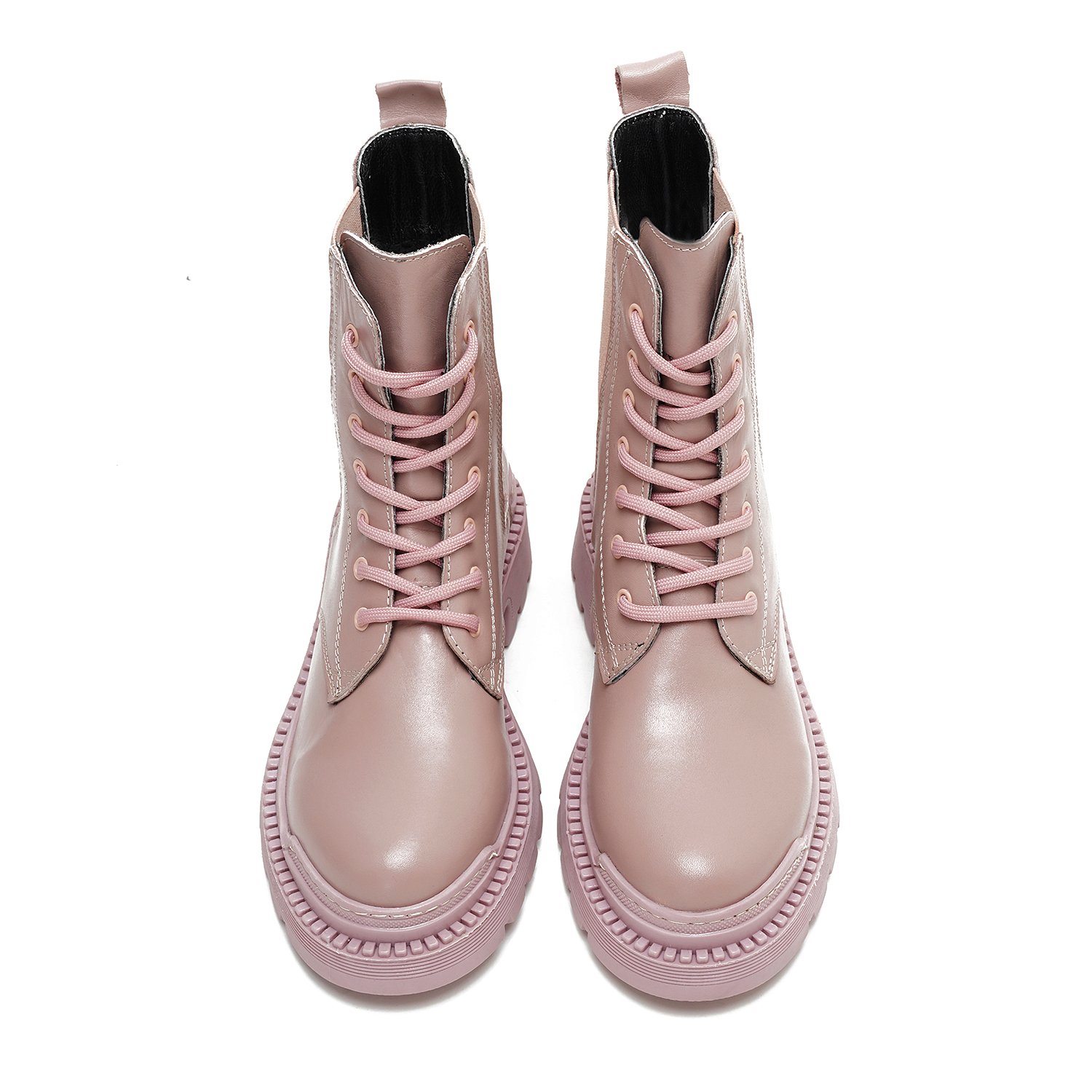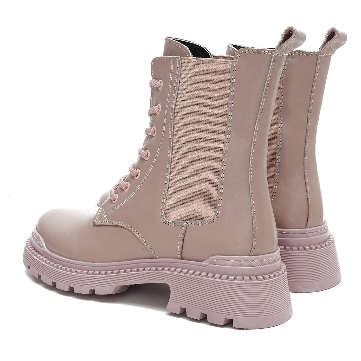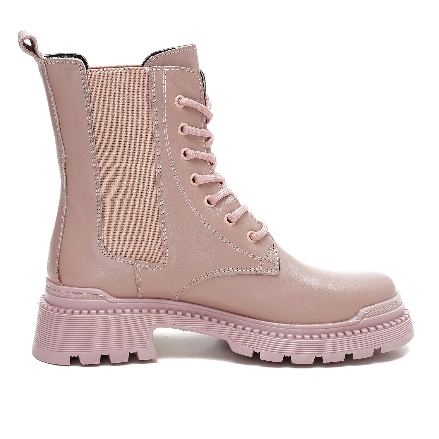 %100 deri, deri iç tabanlı, tekstil astarlı, thermo tabanlı, lastik detaylı, bağcıklı kadın bot.
