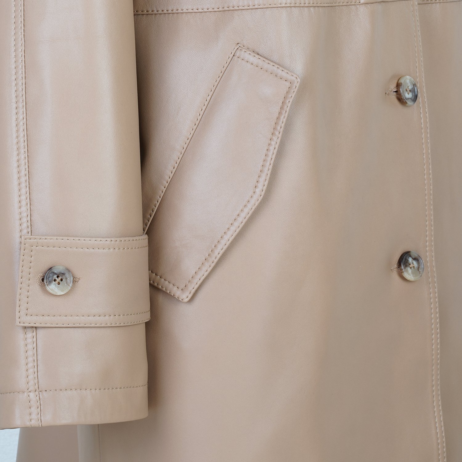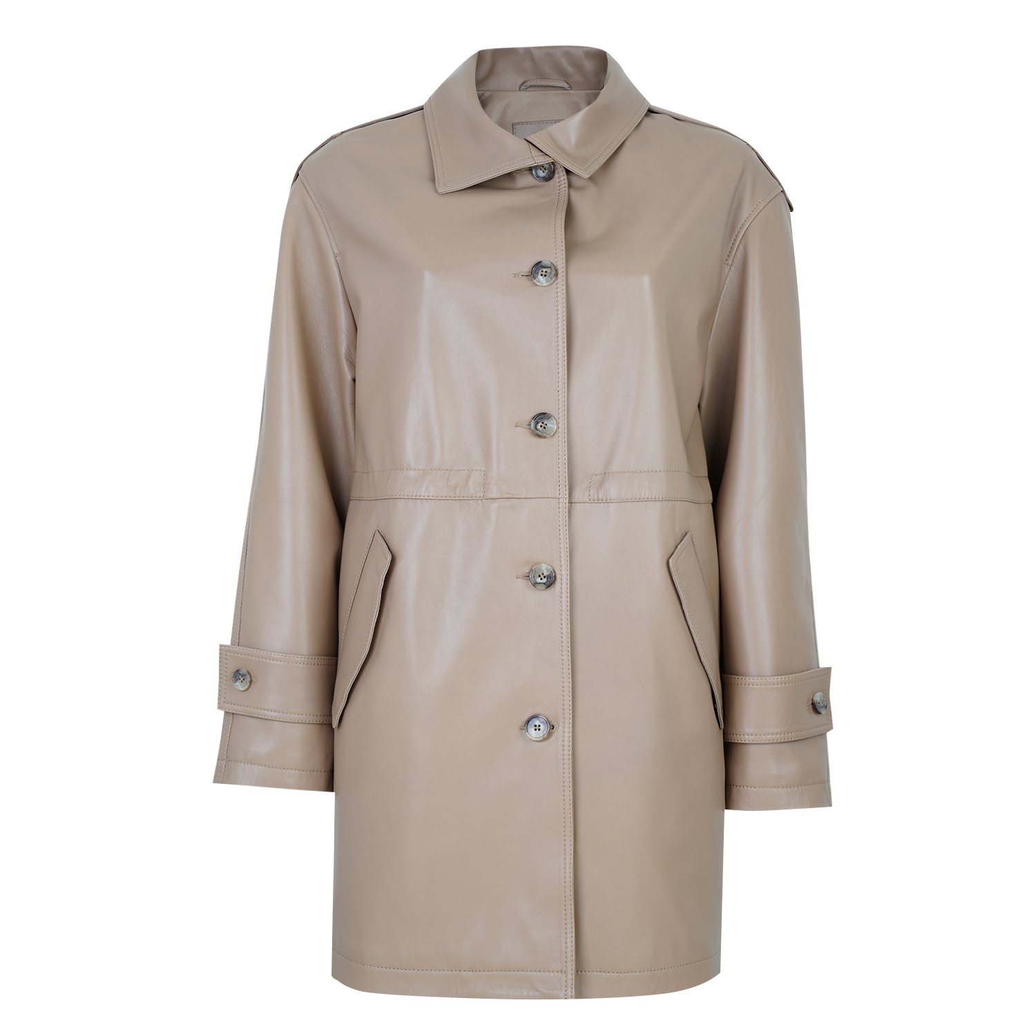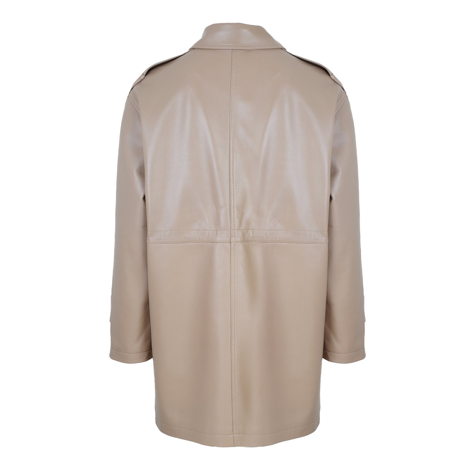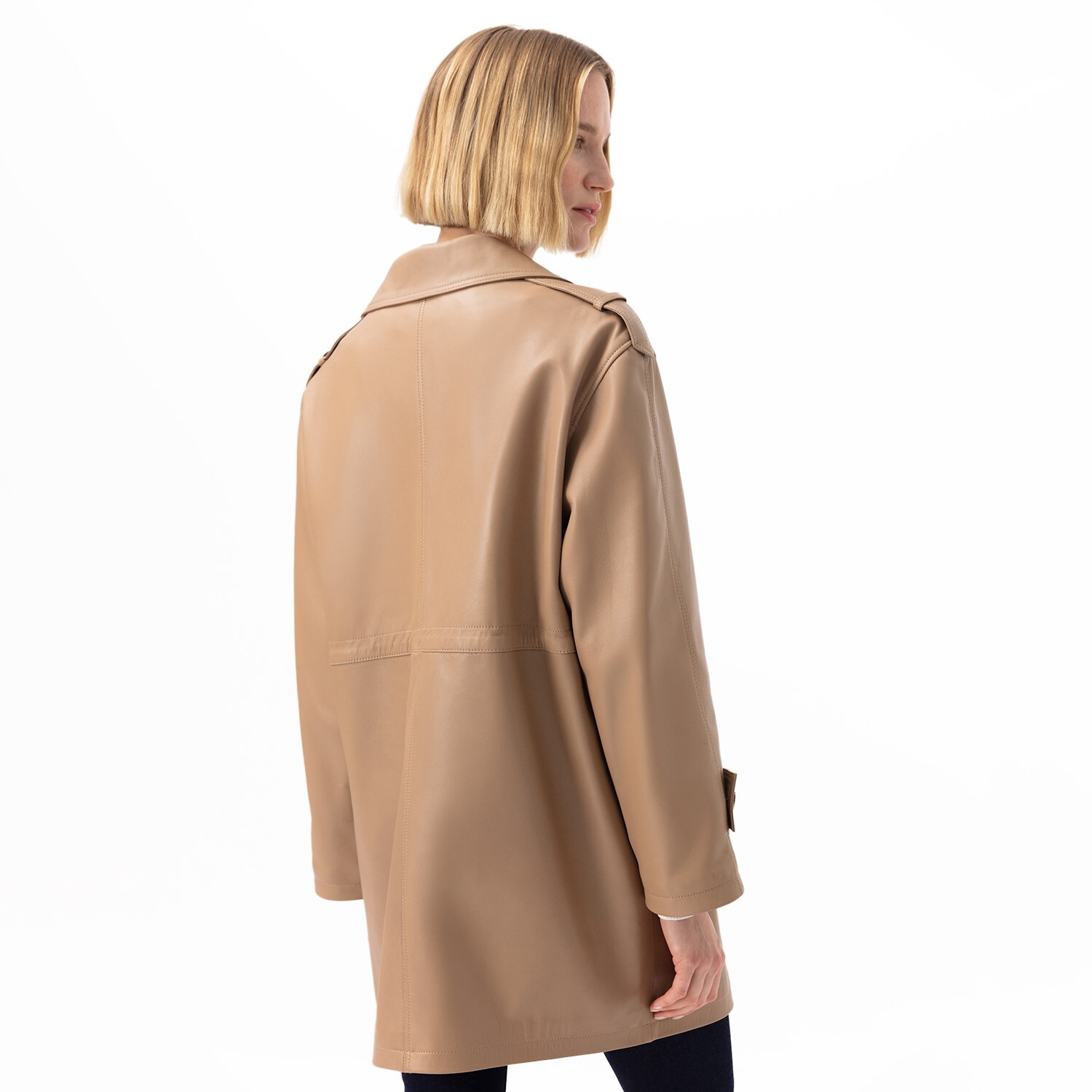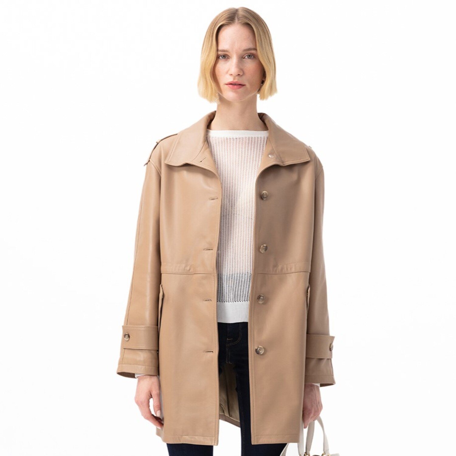 Carlynda Bej Kadın Deri Oversize Pardösü