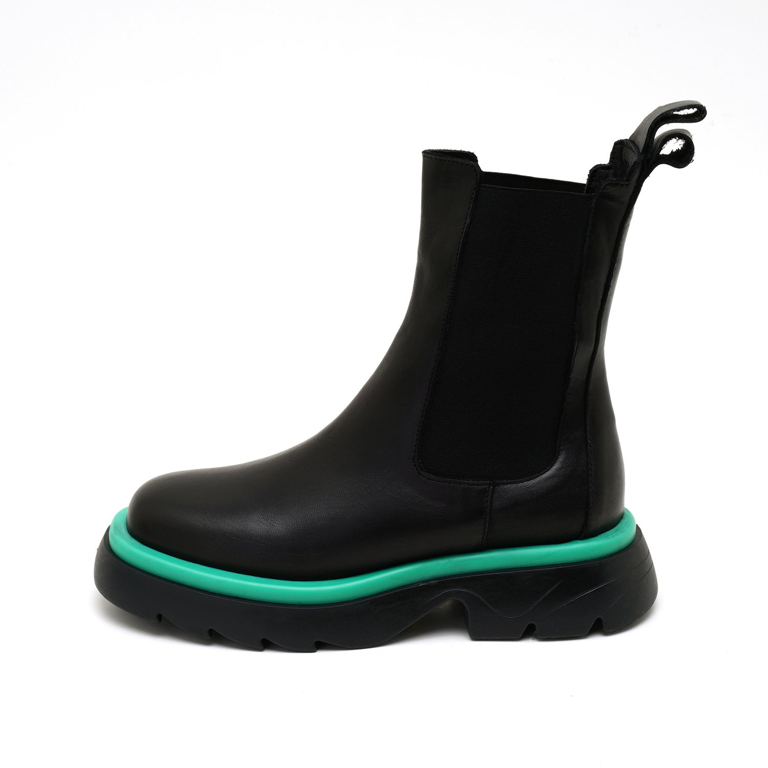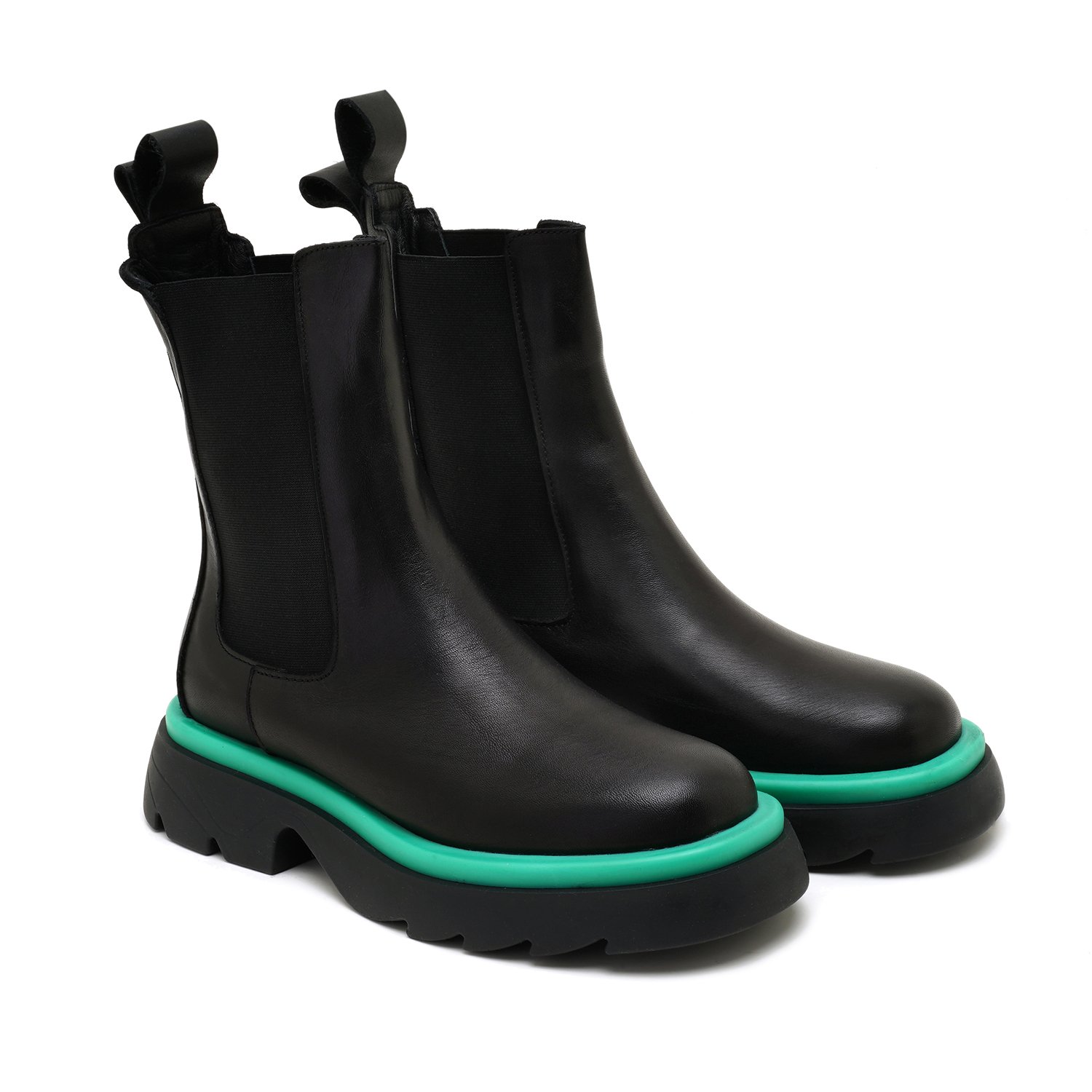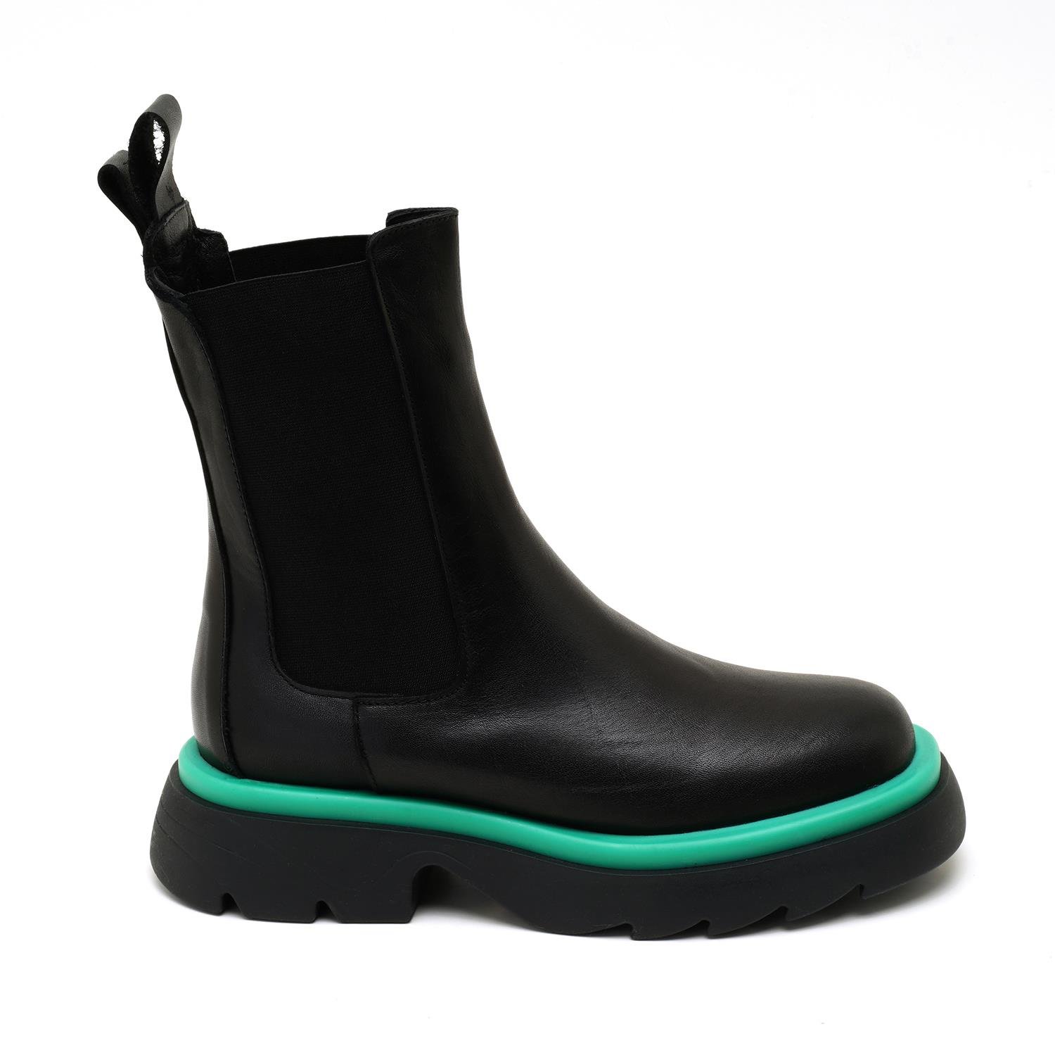 Carmen Siyah Kadın Yandan Lastikli Deri Chelsea Bot