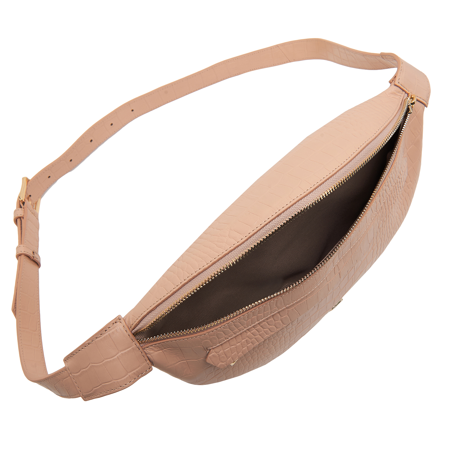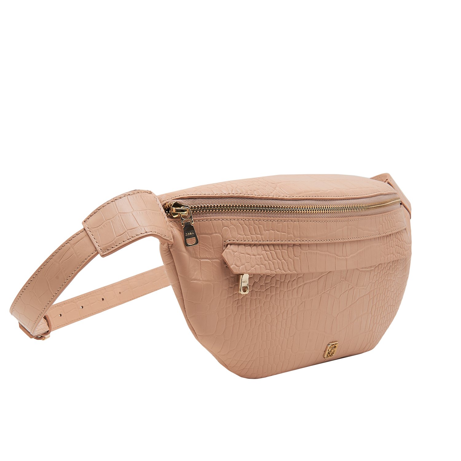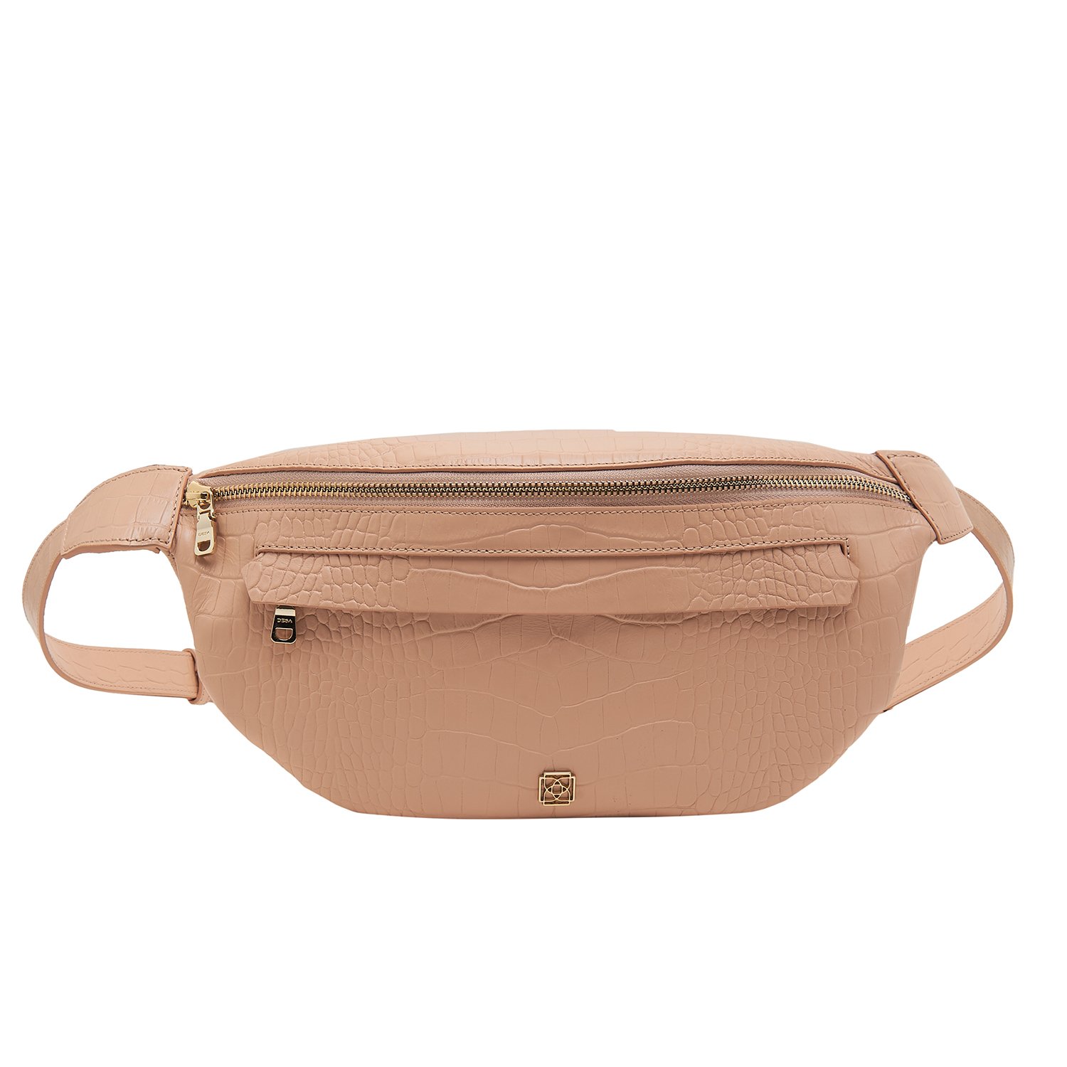 Carol Bej Kadın Kroko Baskılı Deri Bel Çantası