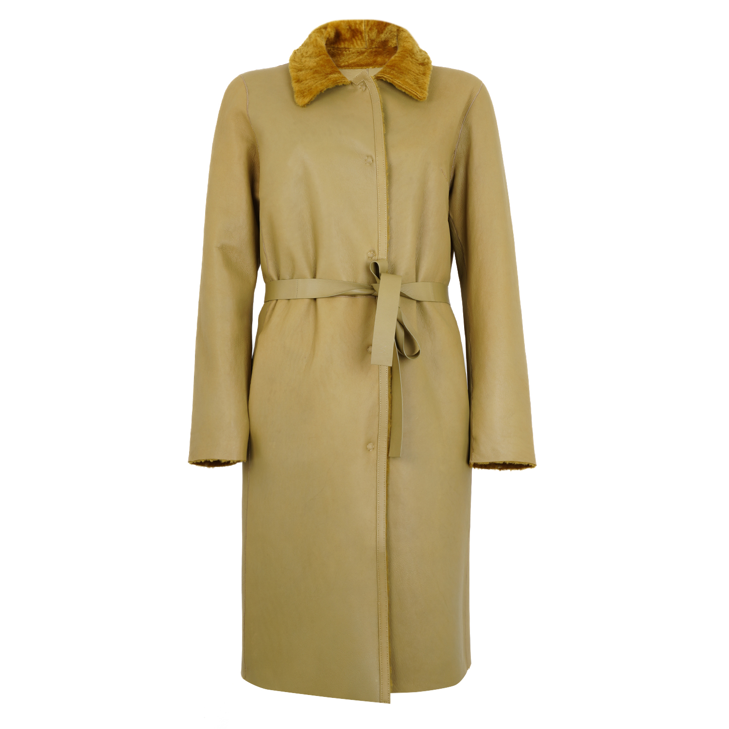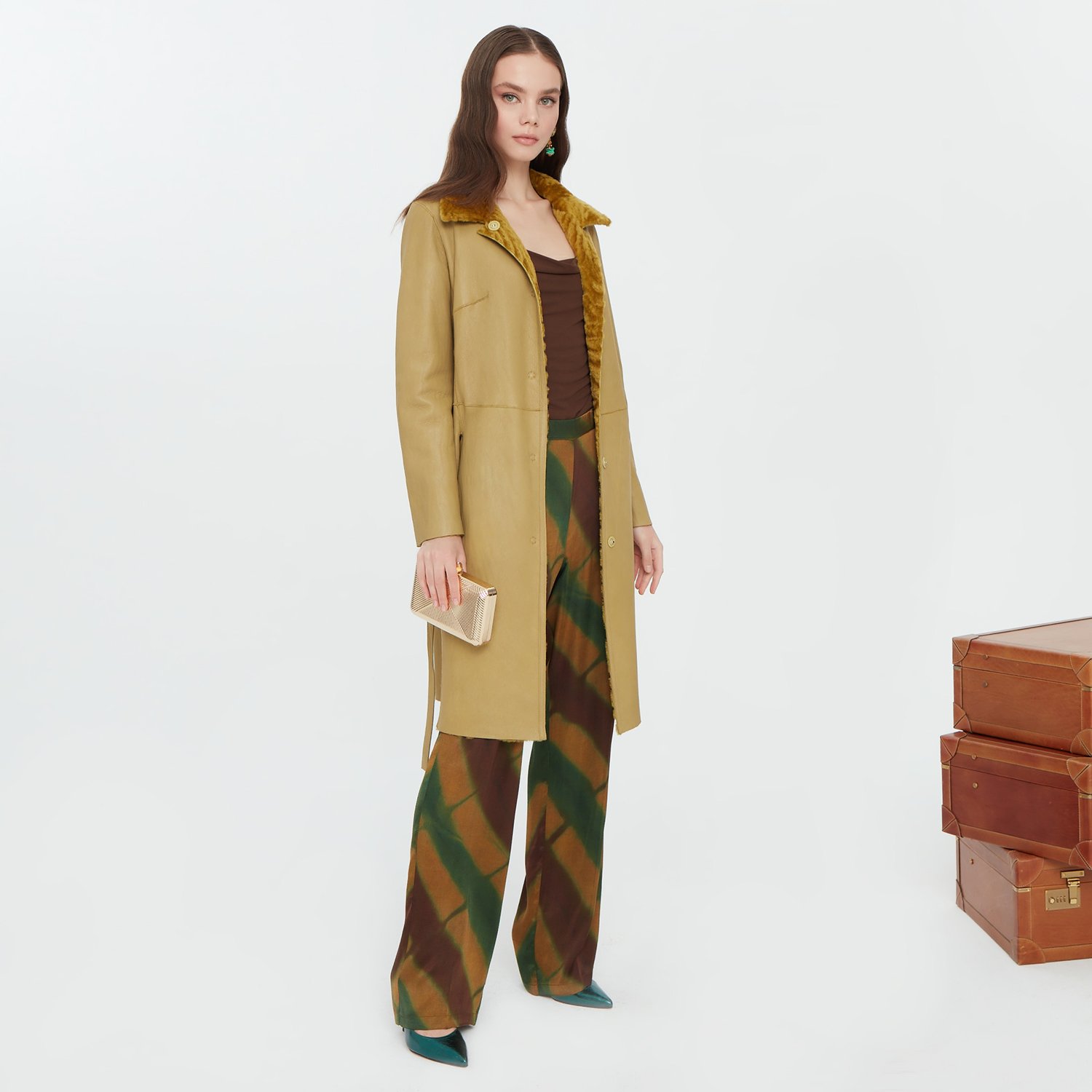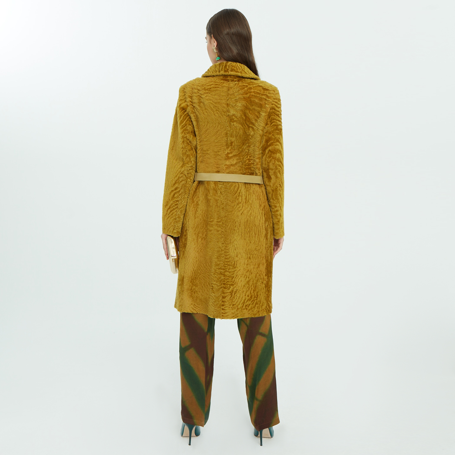 Kadın gömlek yakalı çift taraflı kürk kaban.