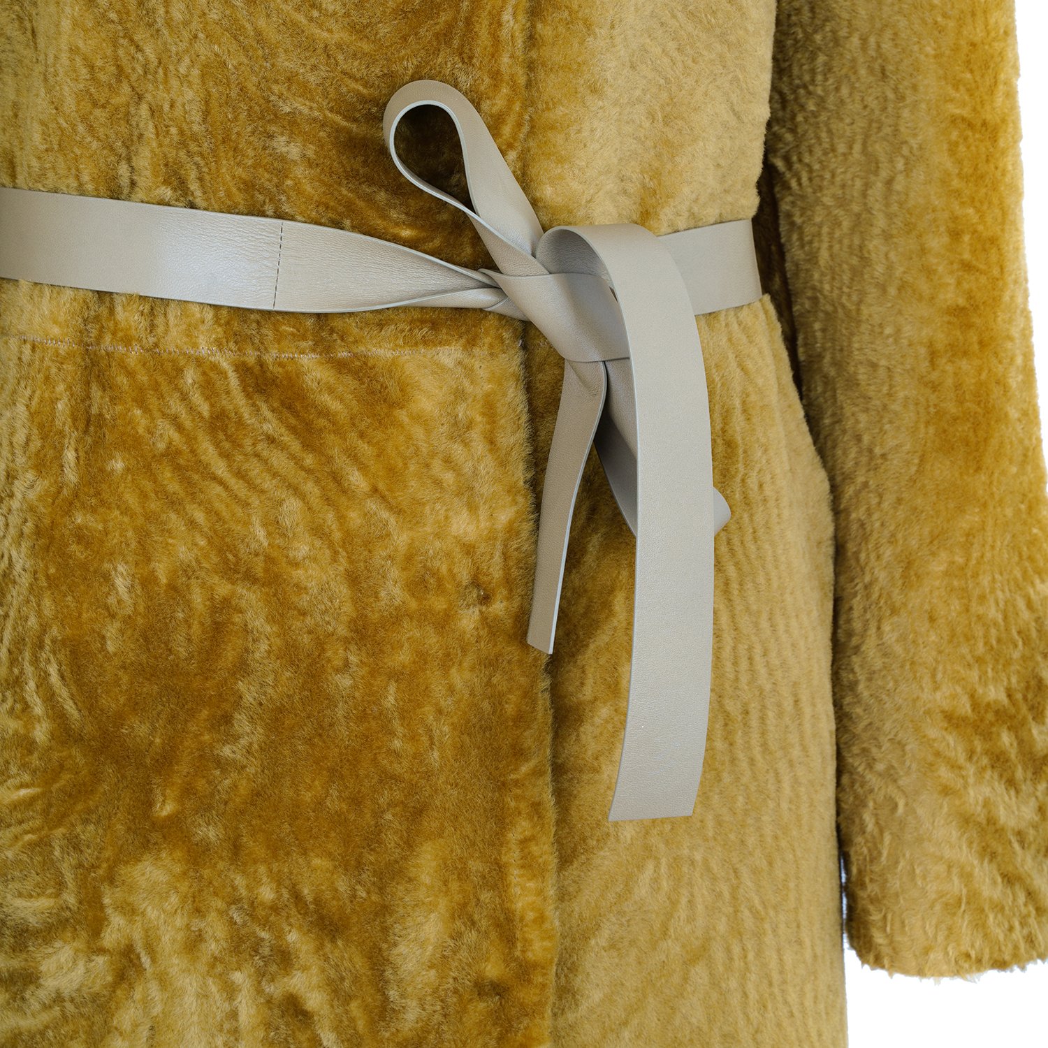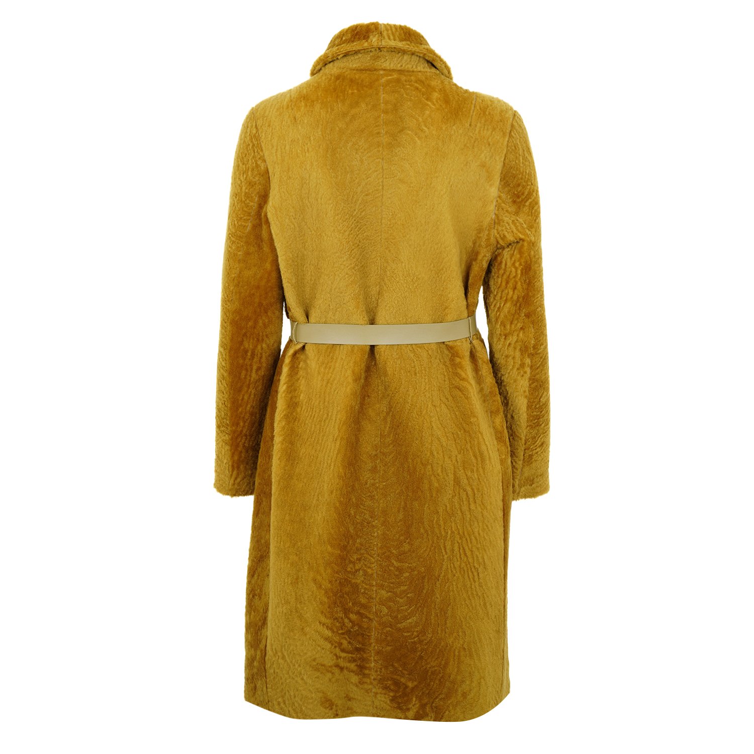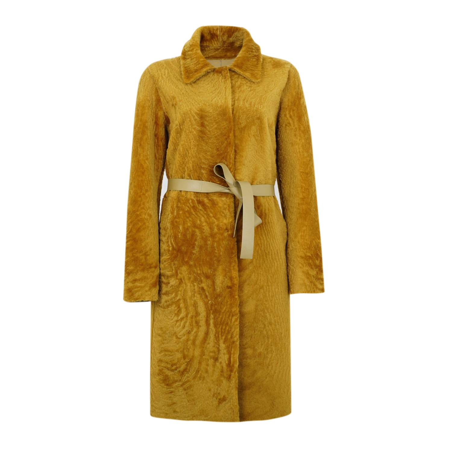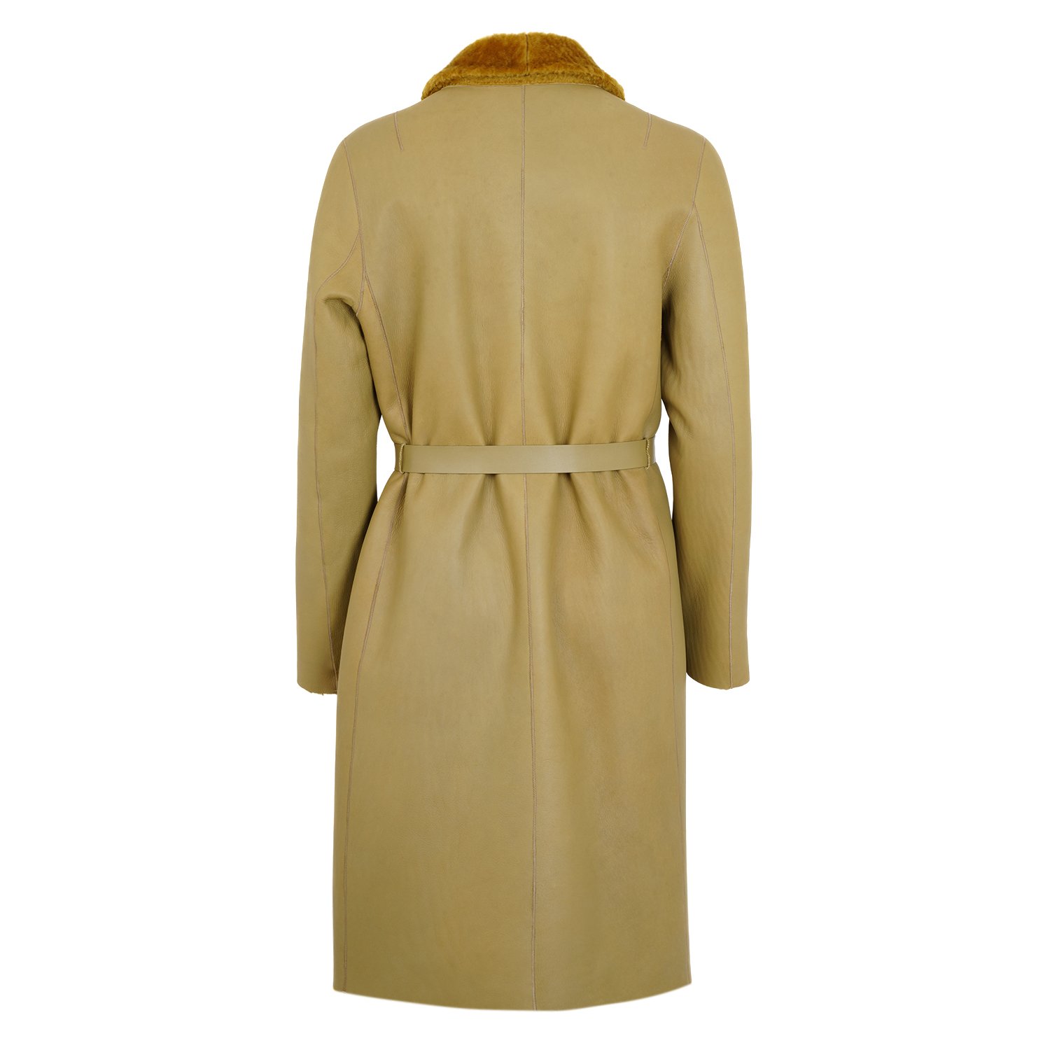 Kadın gömlek yakalı çift taraflı kürk kaban.