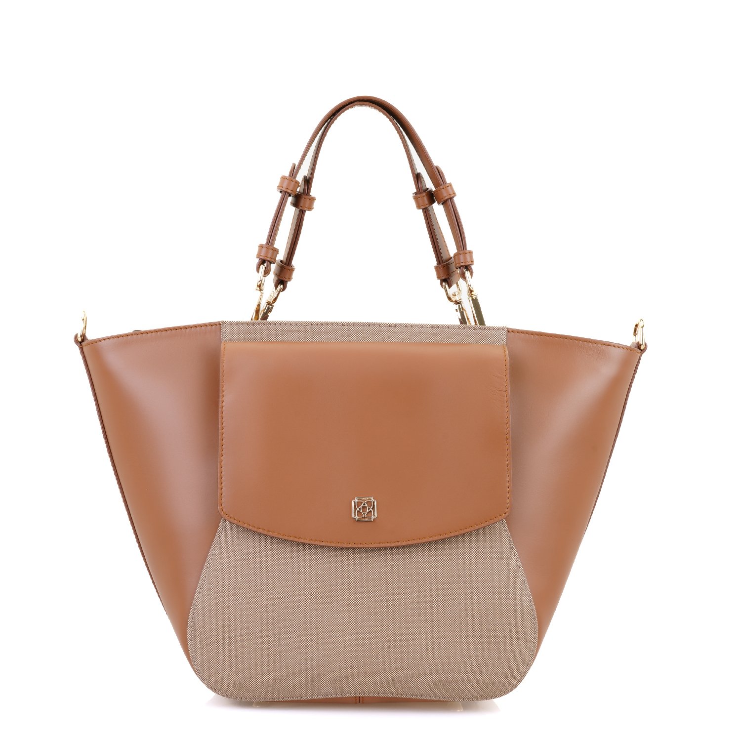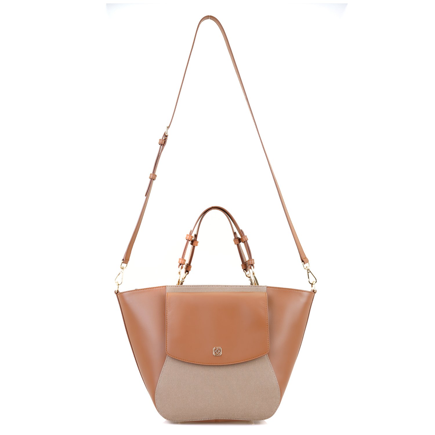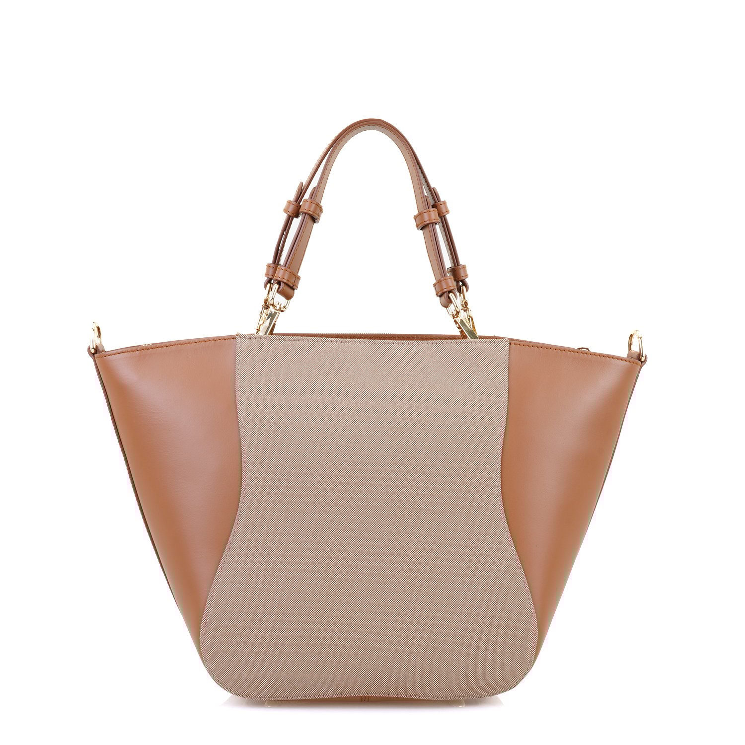 Kumaş ve derinin kombinlendiği çok şık kadın omuz çantasıdır.