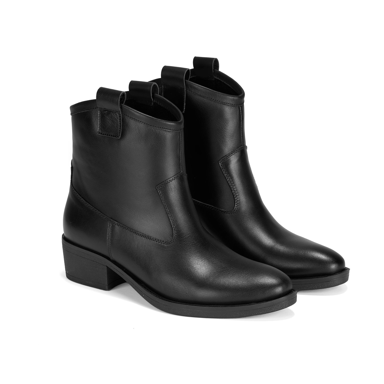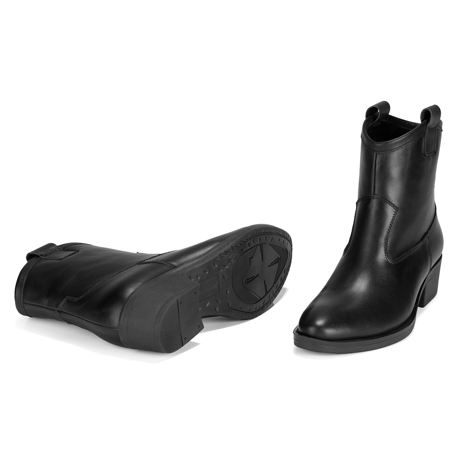 Colleen Siyah Kadın Topuklu Deri Kovboy Botu