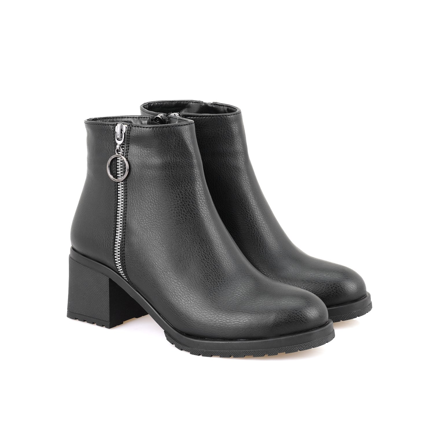 Corneel Siyah Kadın Fermuarlı Topuklu Bot