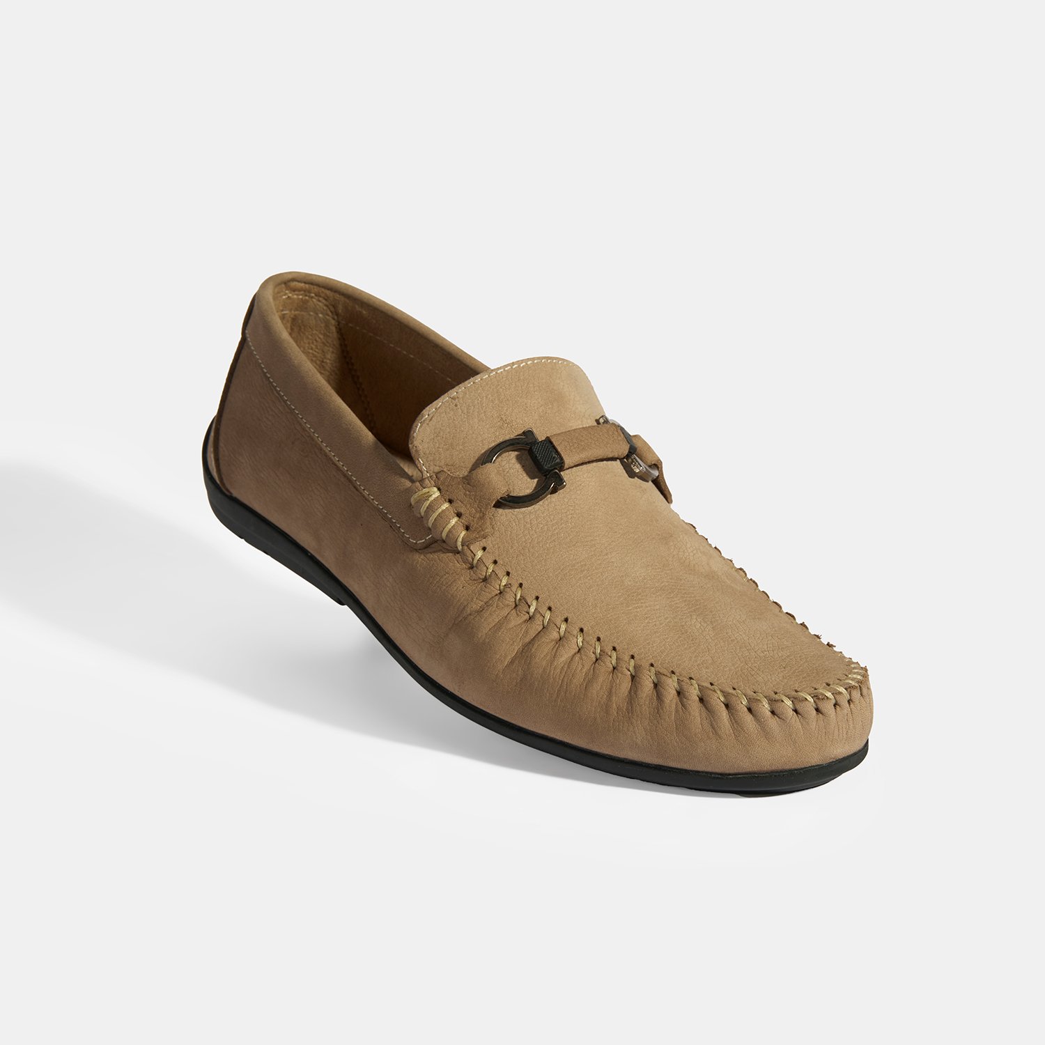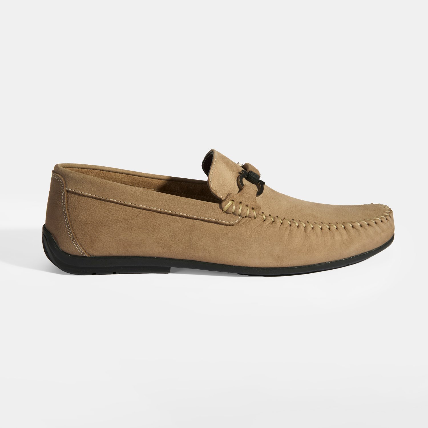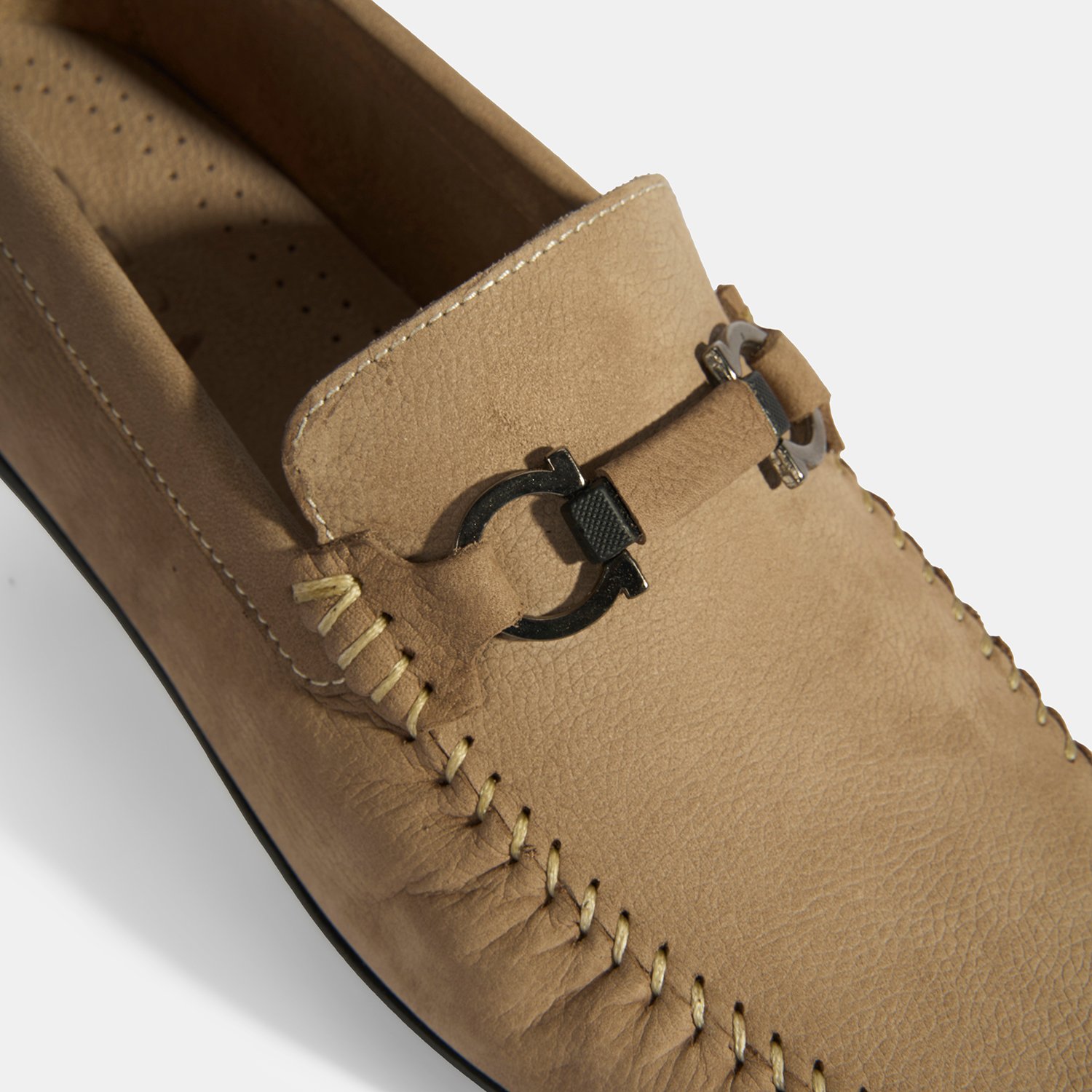 %100 nubuk deri, tekstil astar, %100 deri mostra ve kauçuk tabanlı tokalı loafer erkek ayakkabı.