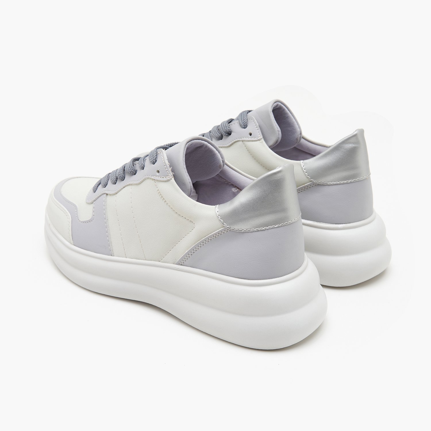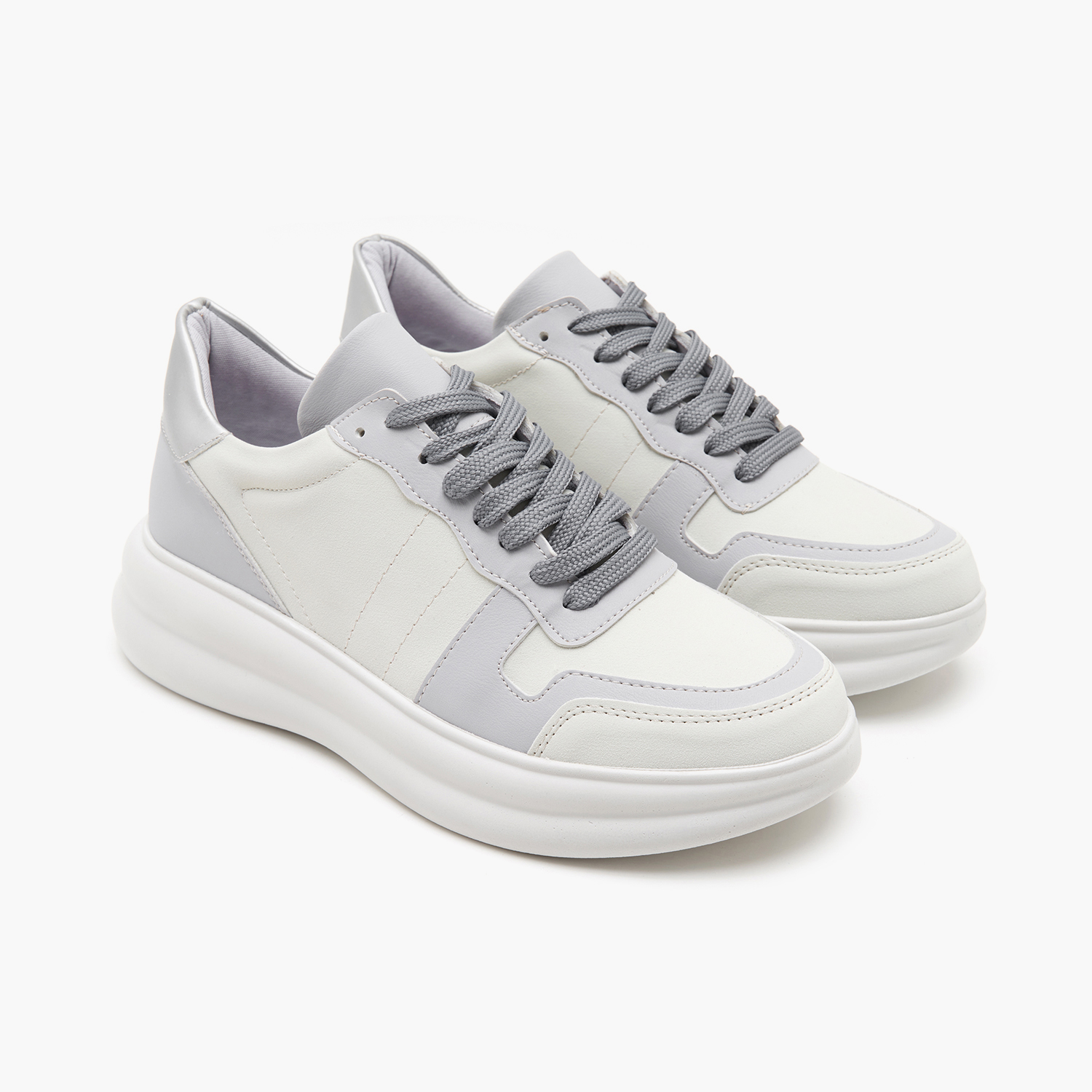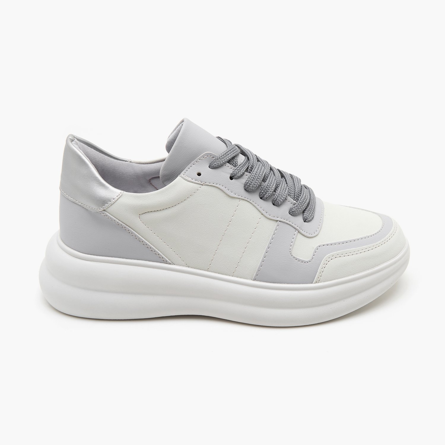 Derisi-astarı ve bağcığı aynı renkten üretilmiş,esnek ve hafif poliüretan tabanlı monochrome kadın spor ayakkabı.