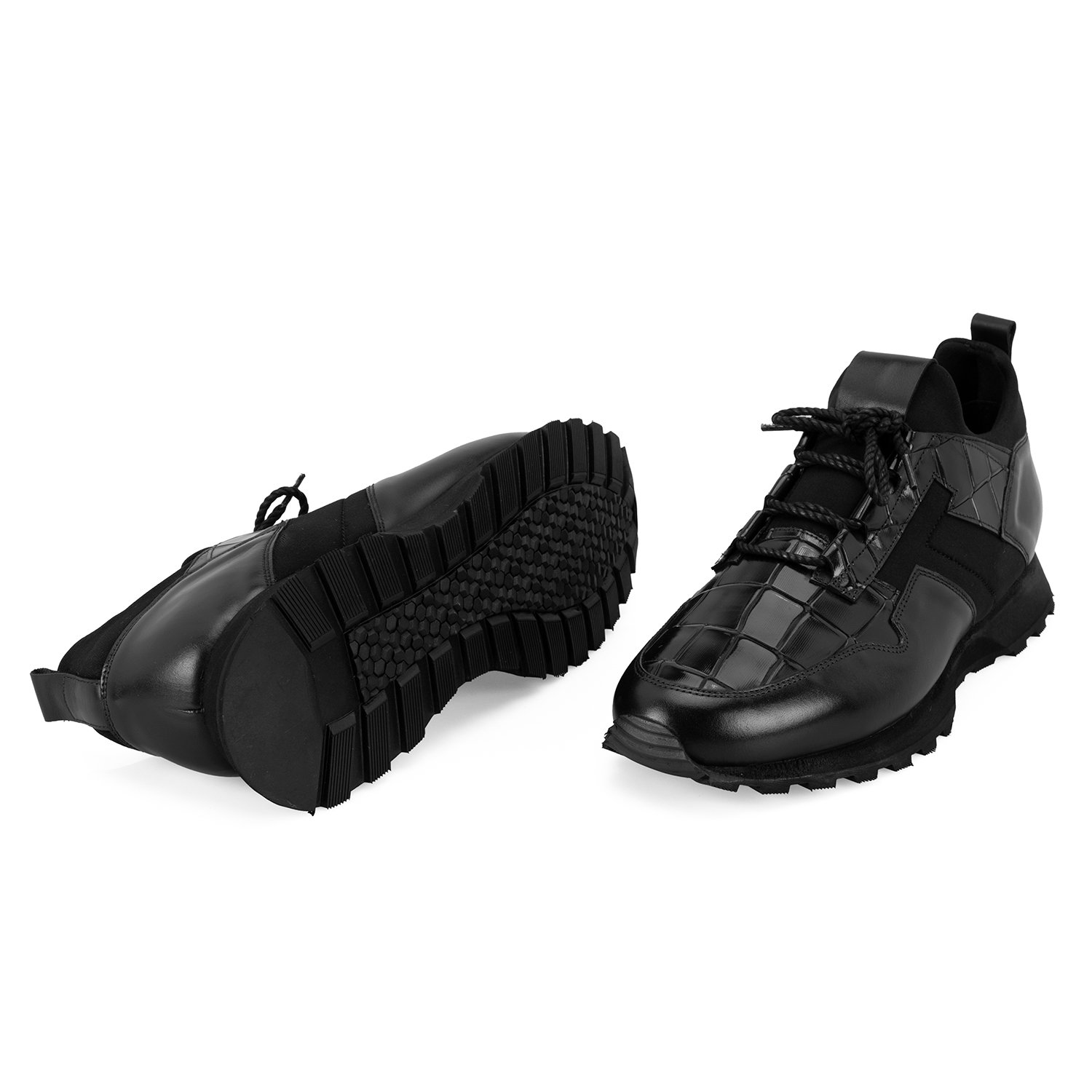 Dandre Siyah Erkek Kroko Baskılı Deri Spor Ayakkabı