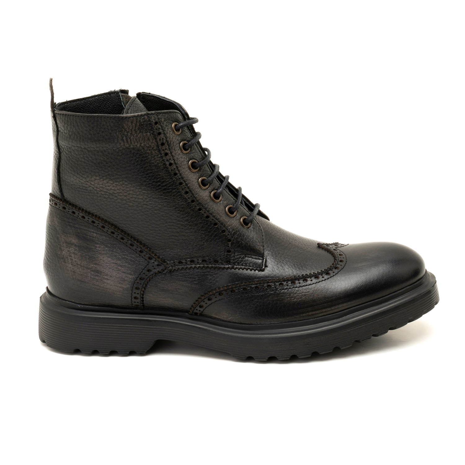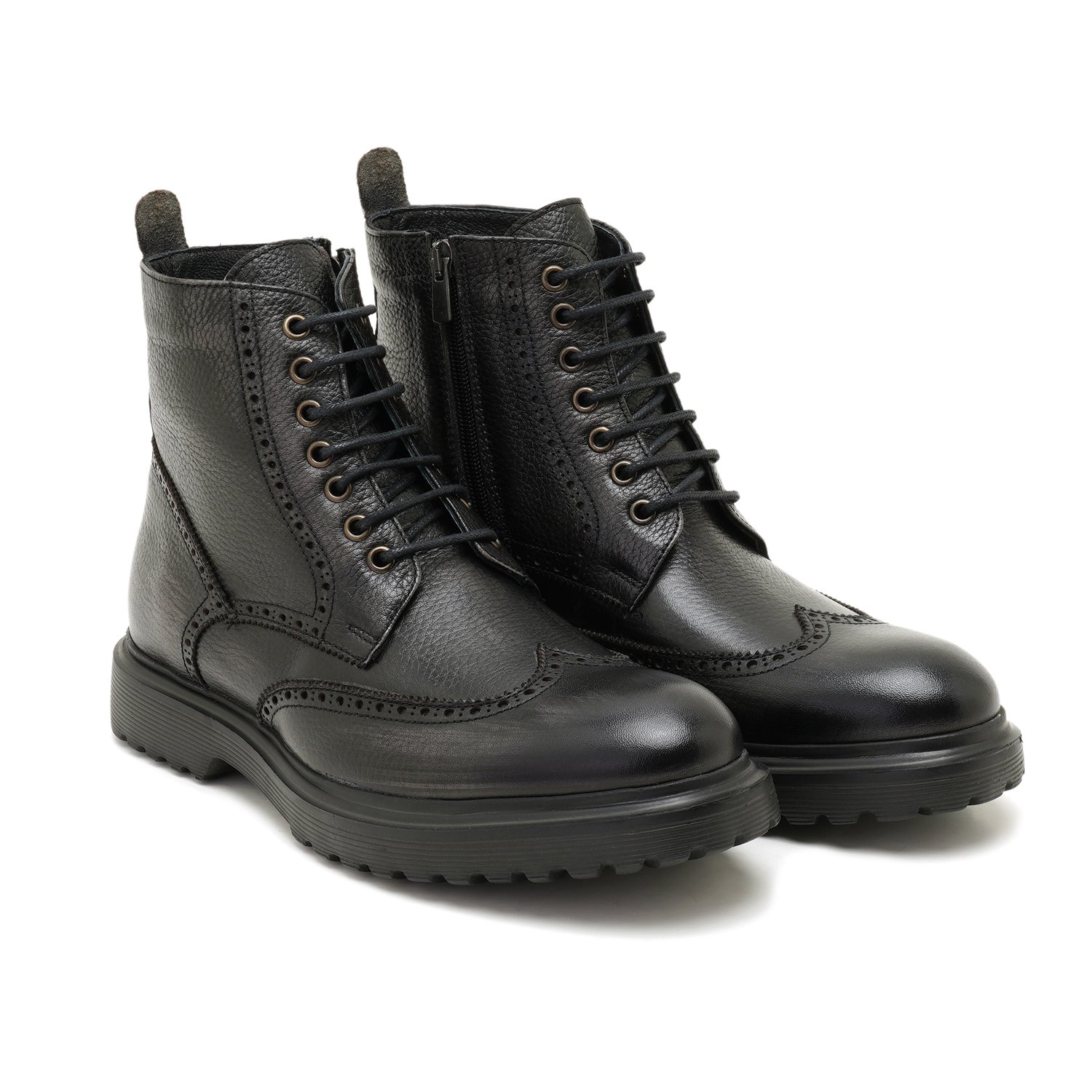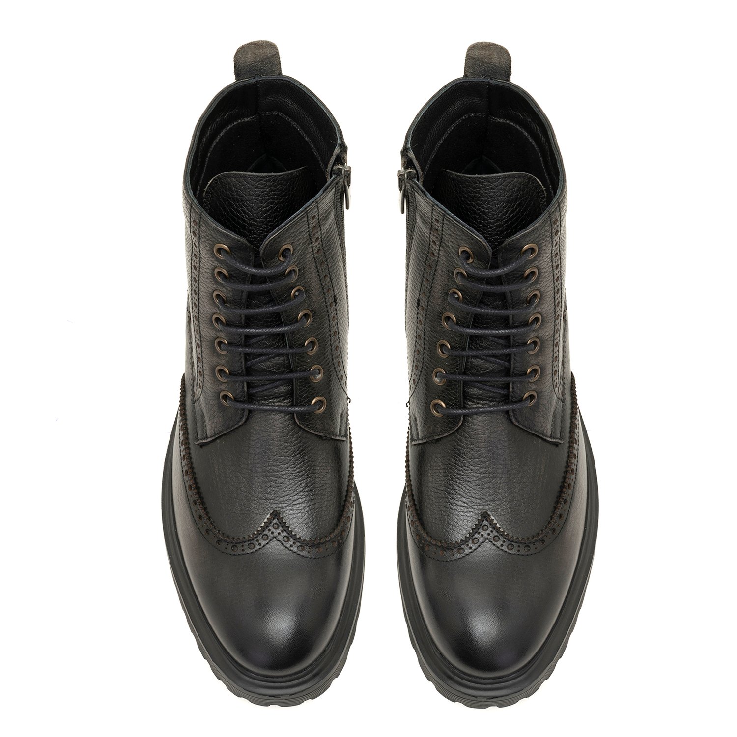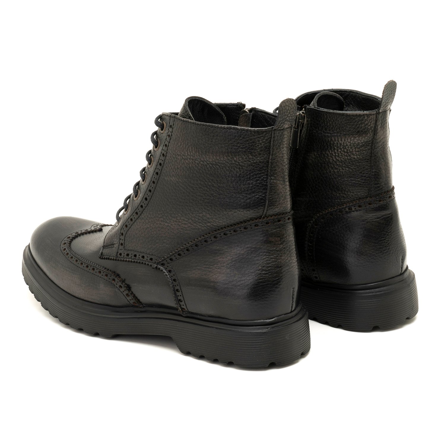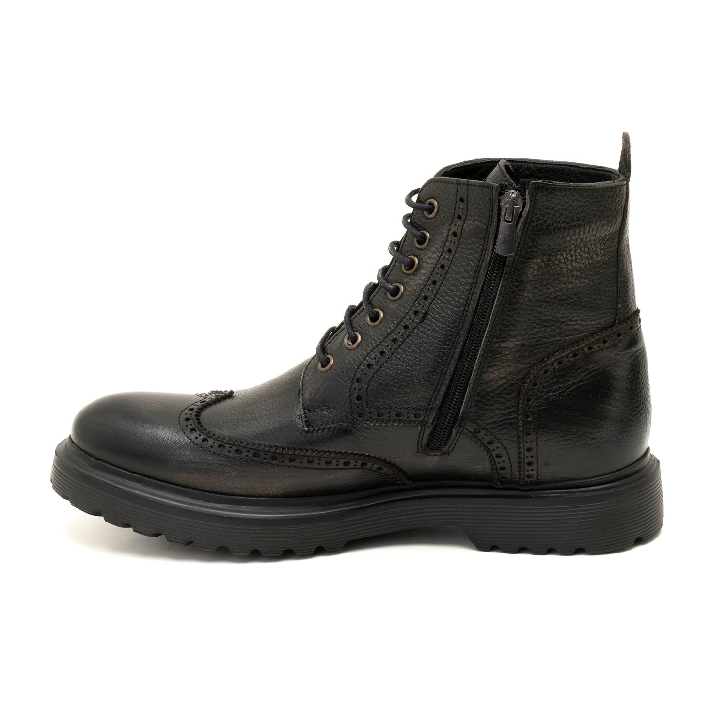%100 deri, deri iç tabanlı, tekstil astarlı, eva tabanlı, bağcık detaylı erkek bot.