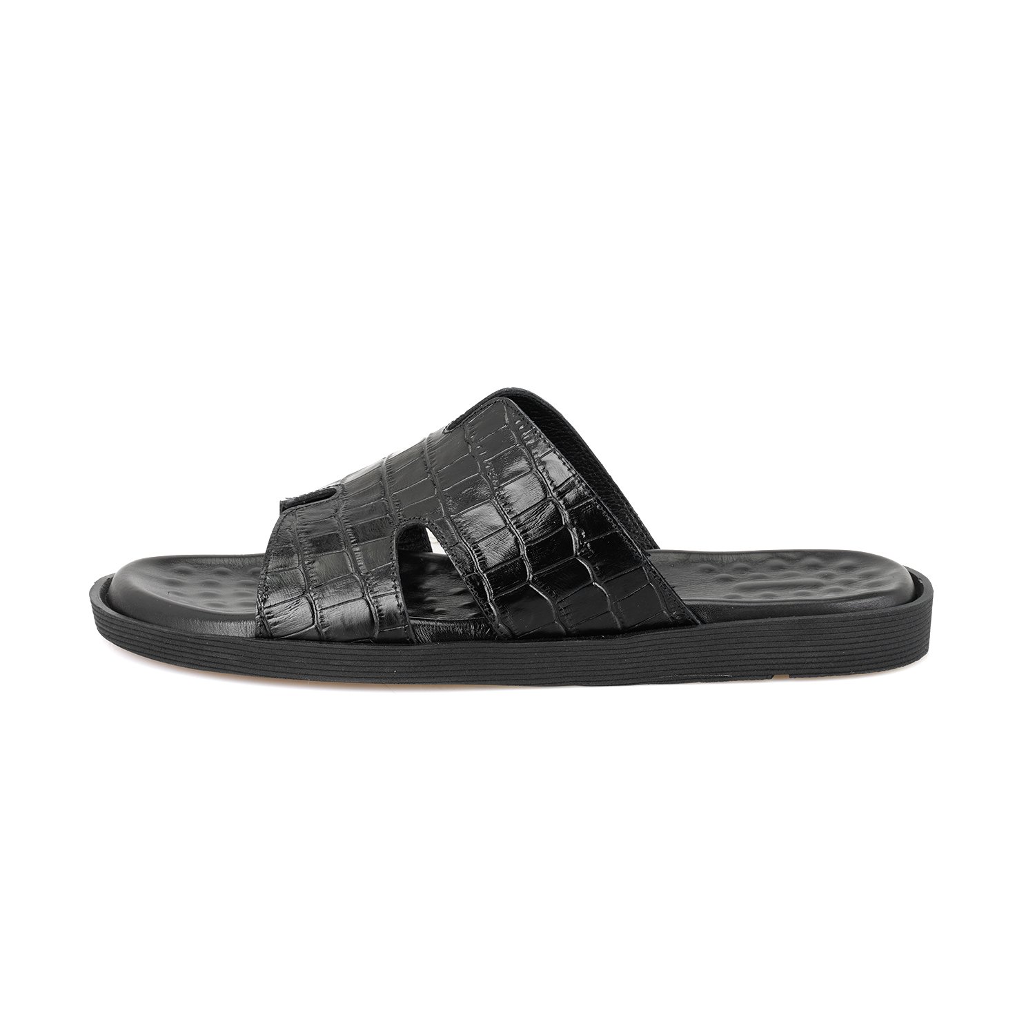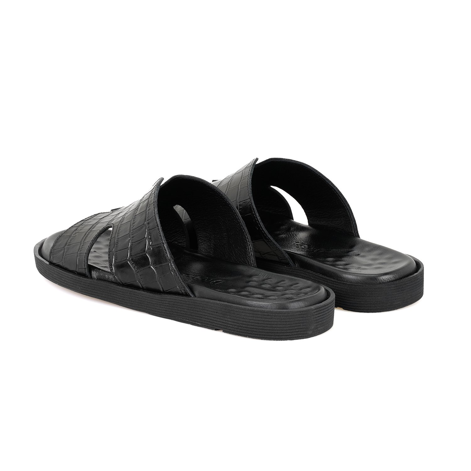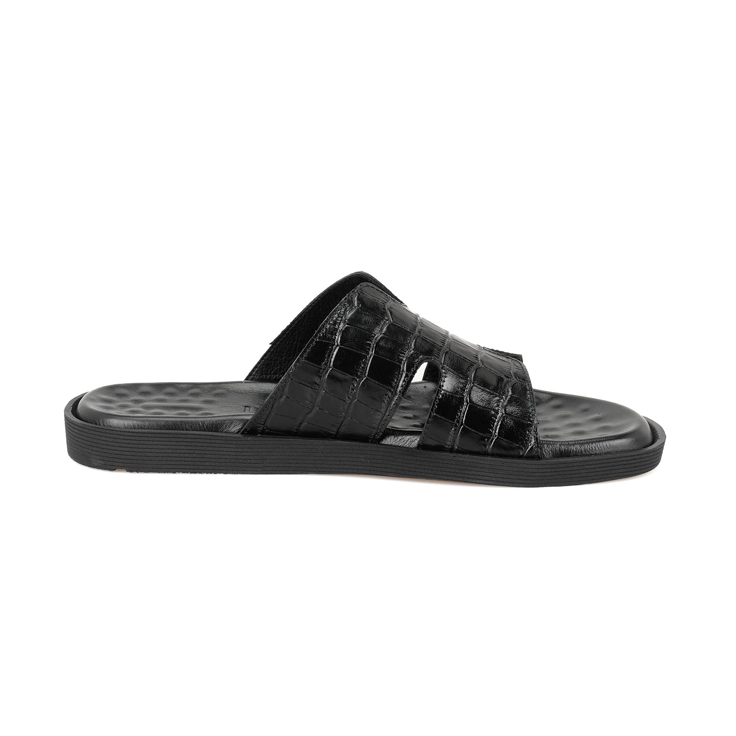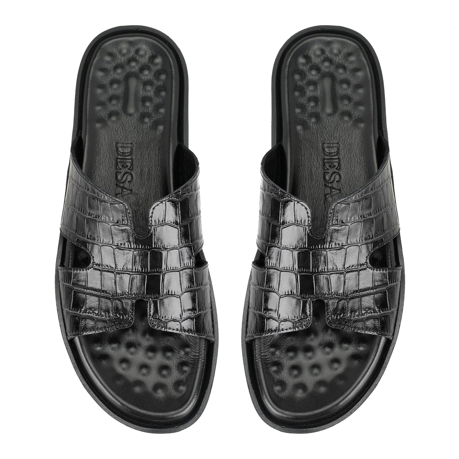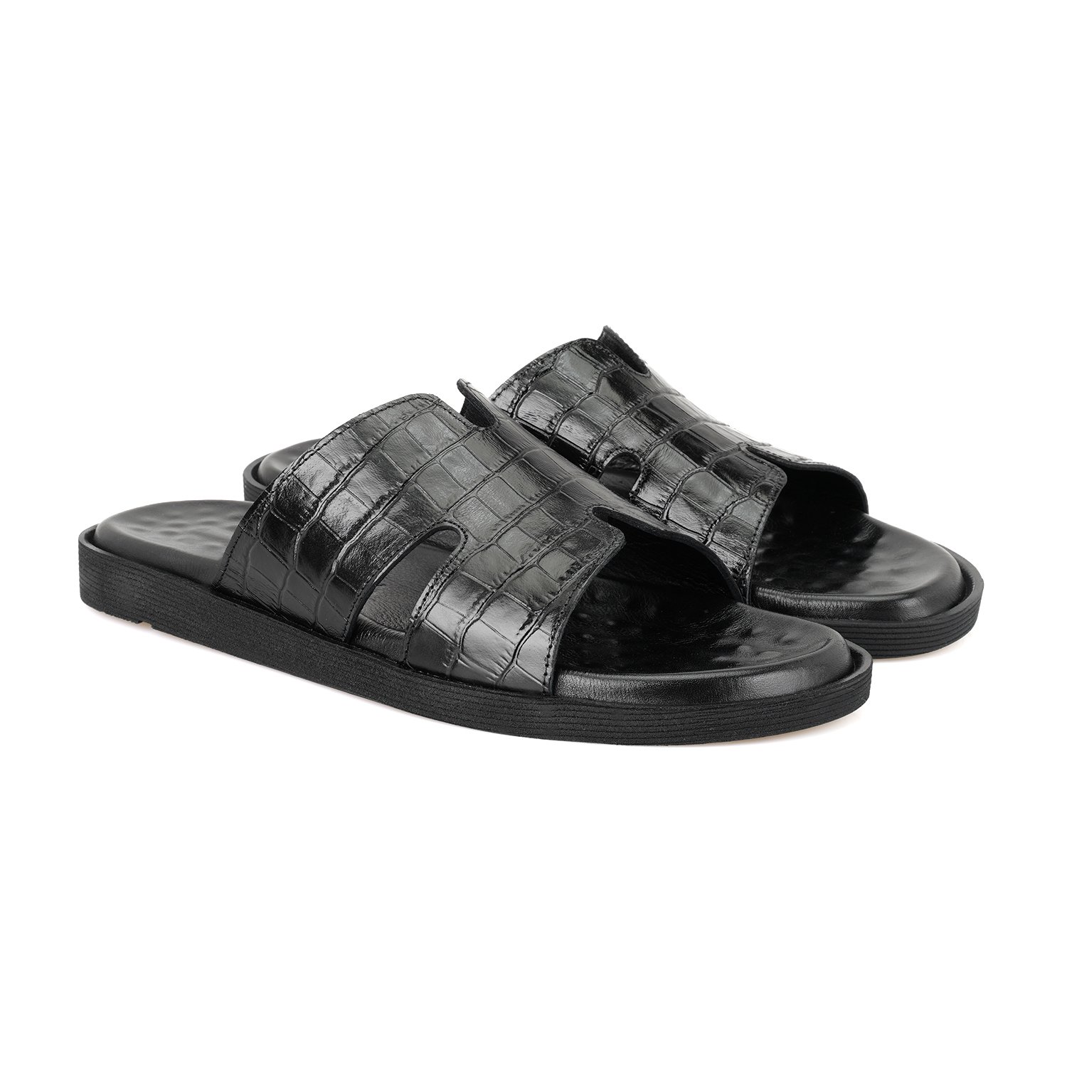 David Siyah Erkek Kroko Baskılı Deri Terlik