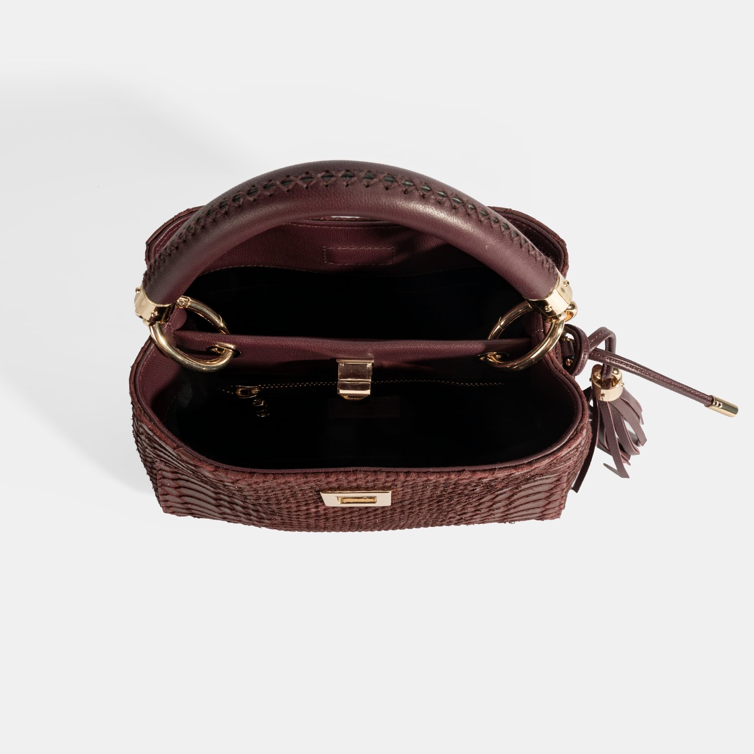 Kadın Bordo Püskül Aksesuarlı Deri El Çantası