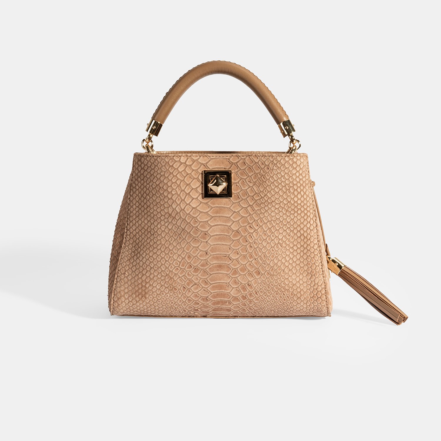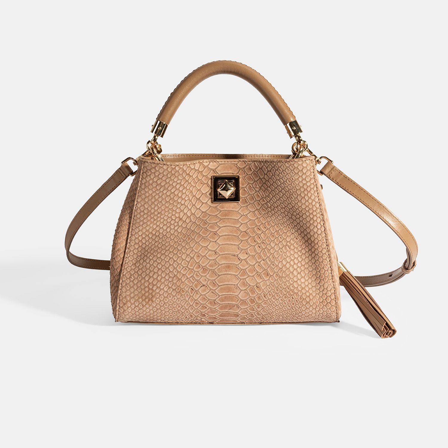 %100 deri, yılan derisi baskılı el ve omuz çantasıdır.