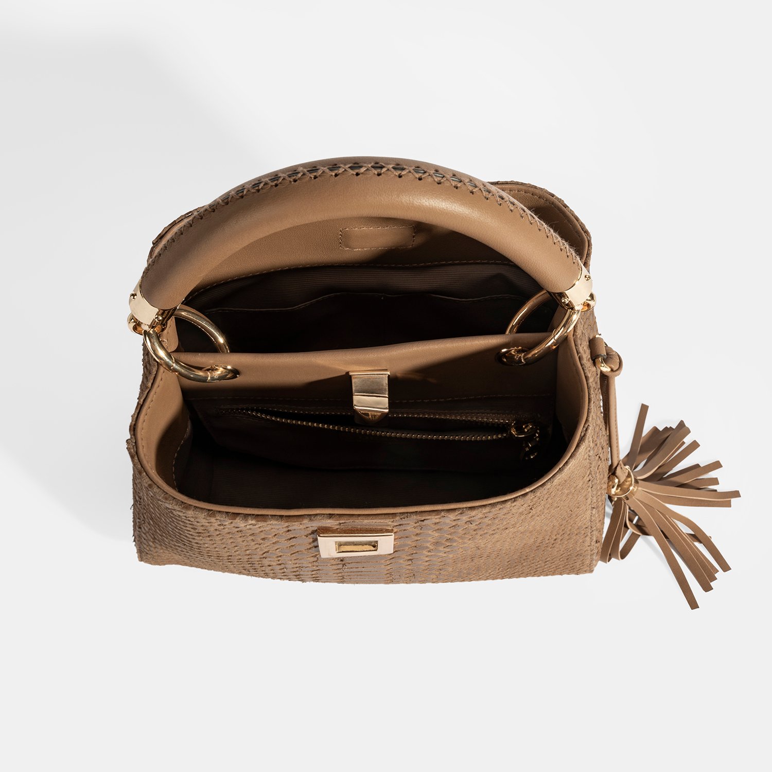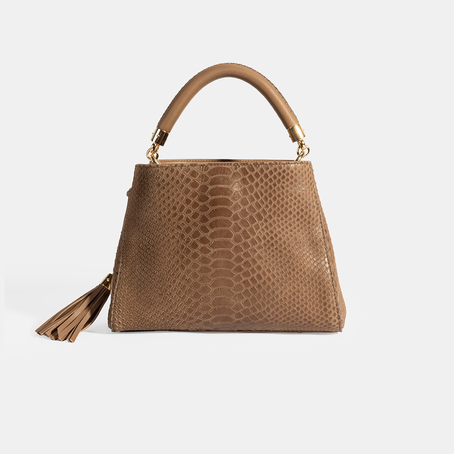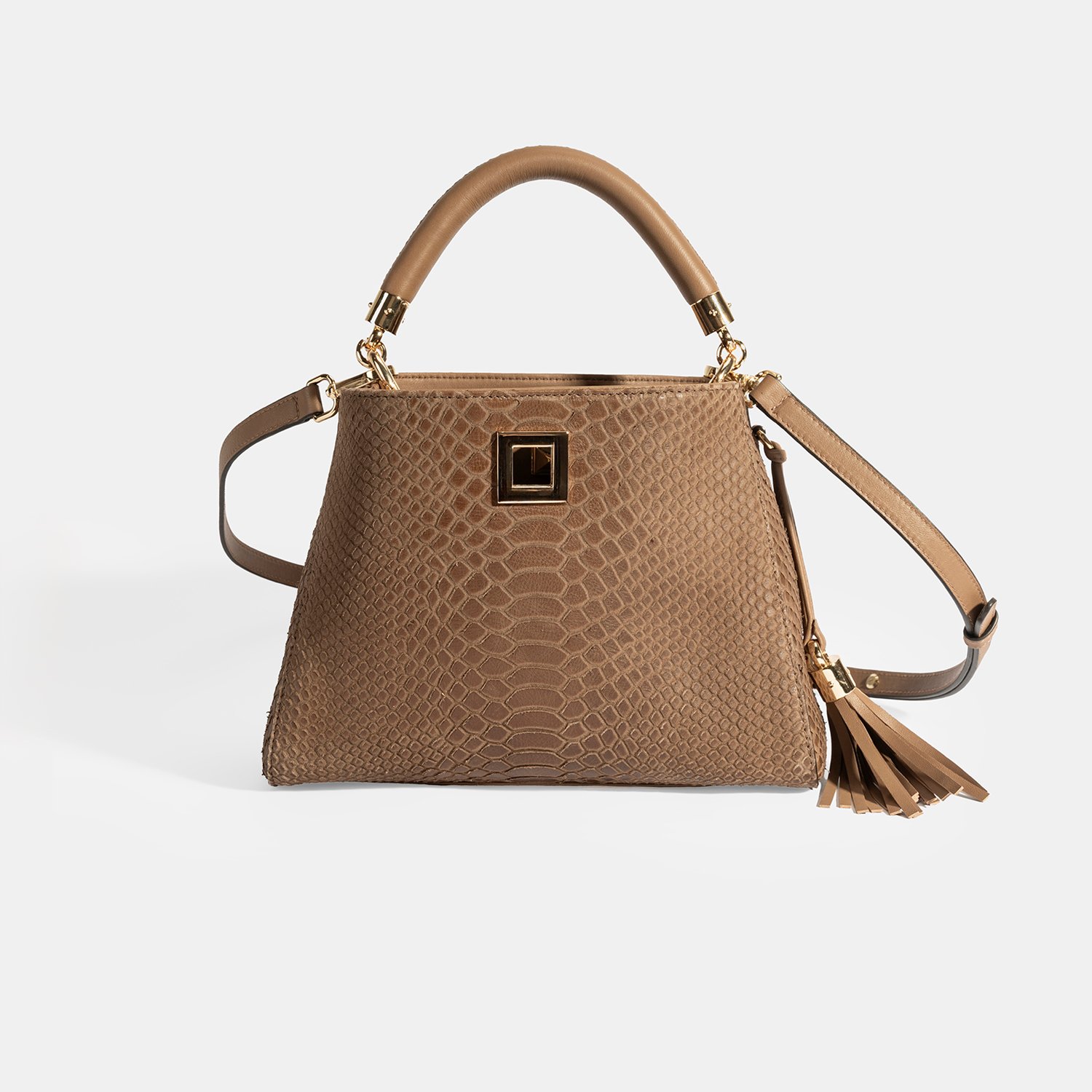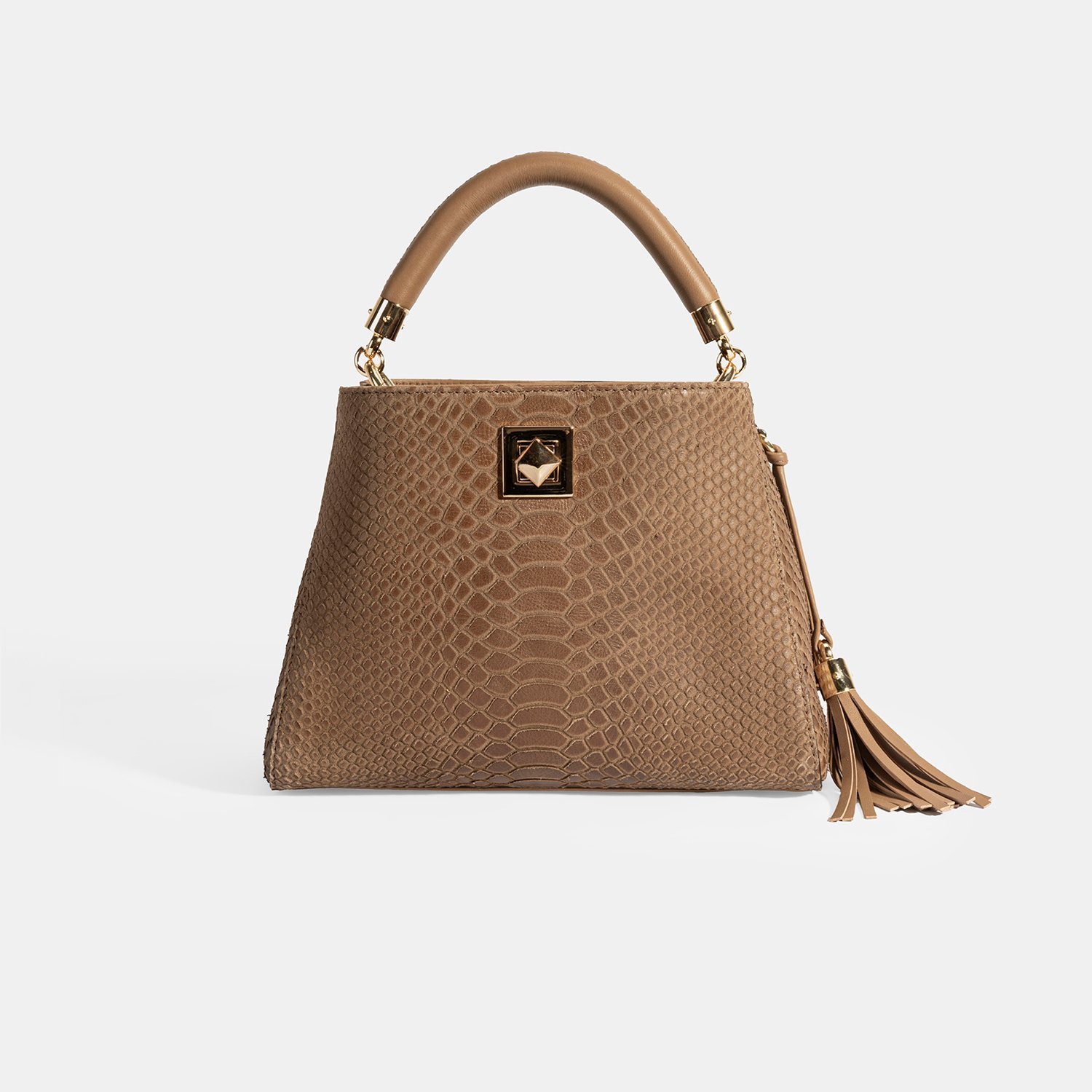 %100 deri, yılan derisi baskılı el ve omuz çantasıdır.