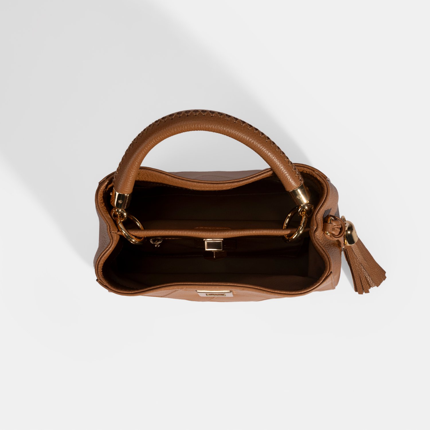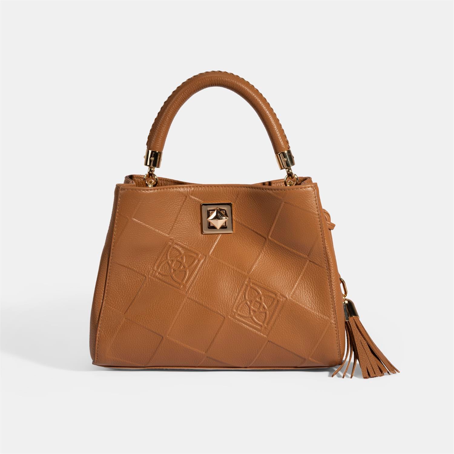 Kadın Kahve Püskül Aksesuarlı Deri El Çantası