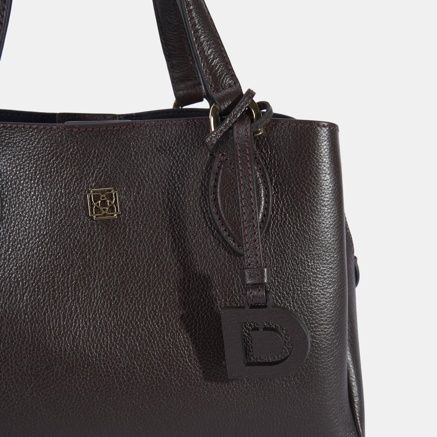 Kadın Kahve D Logolu Deri El Çantası