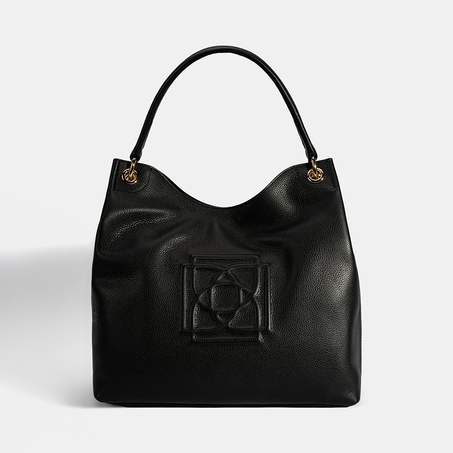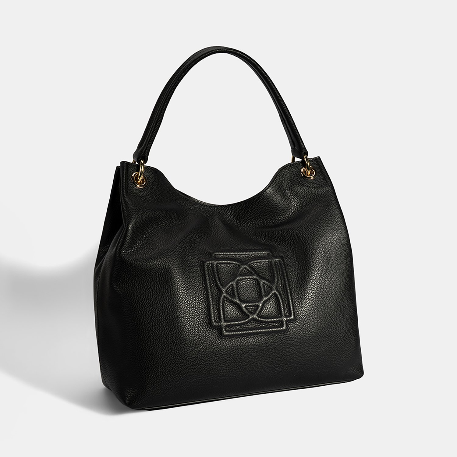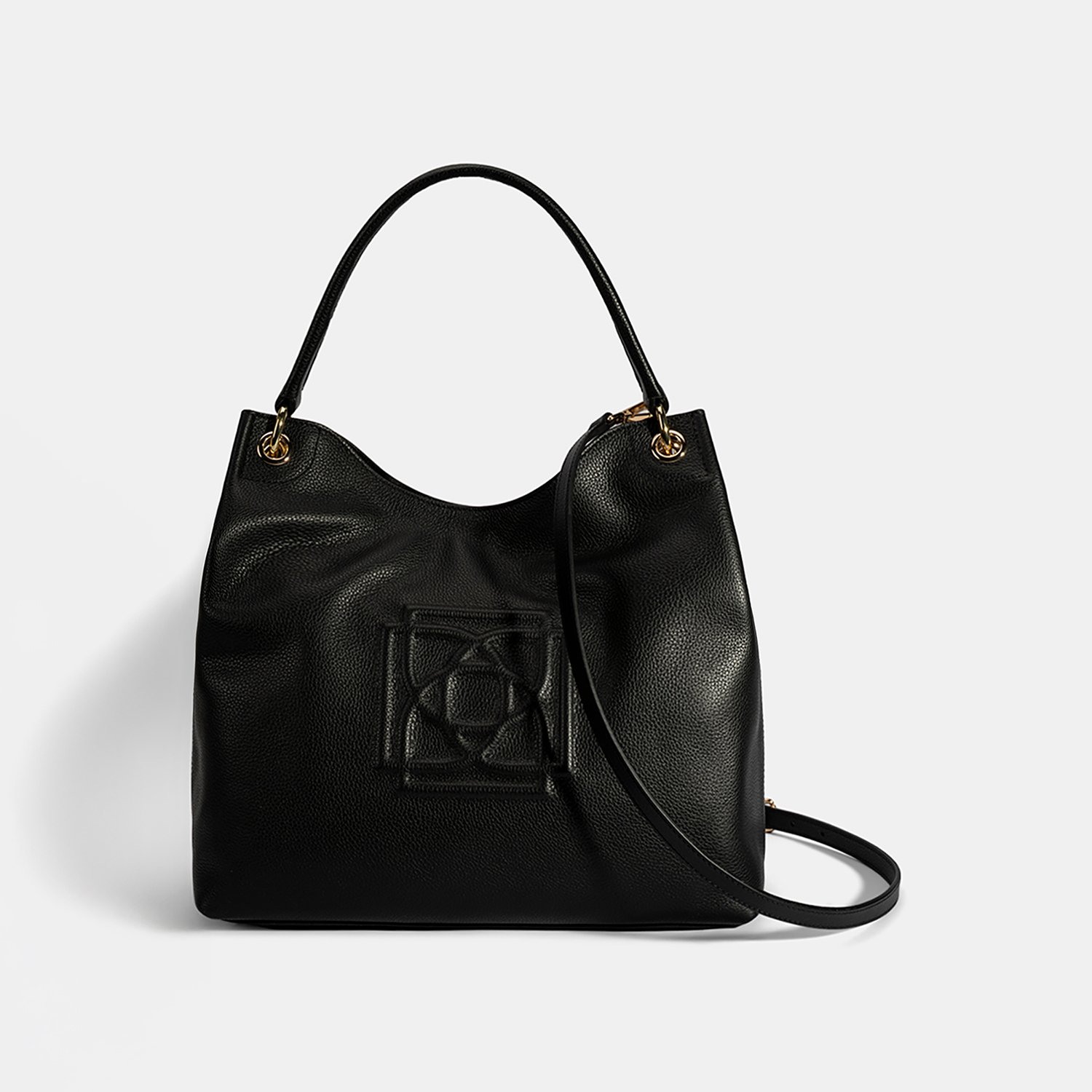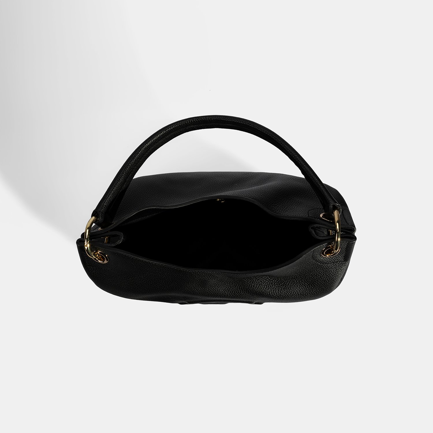 Kadın Siyah Logo Baskılı Deri Omuz Çantası