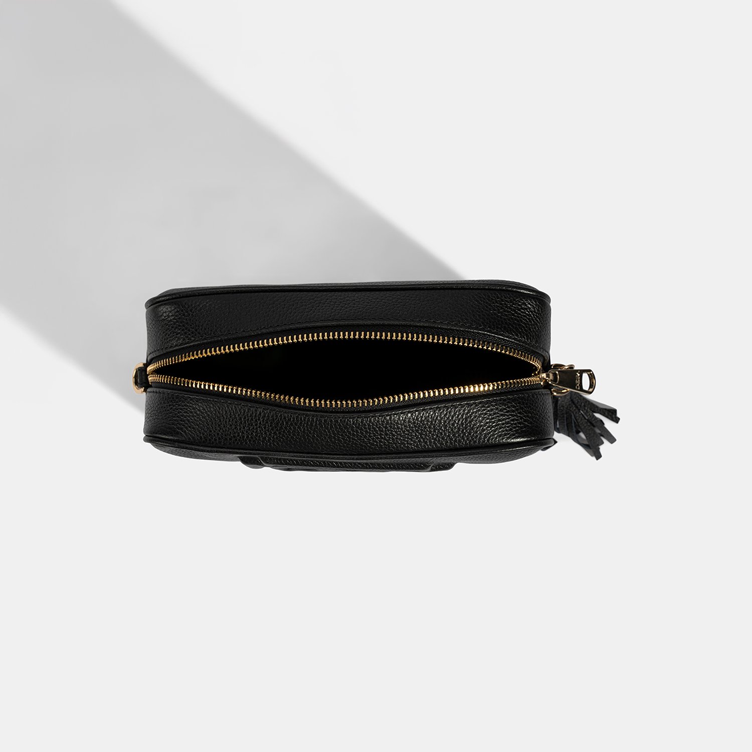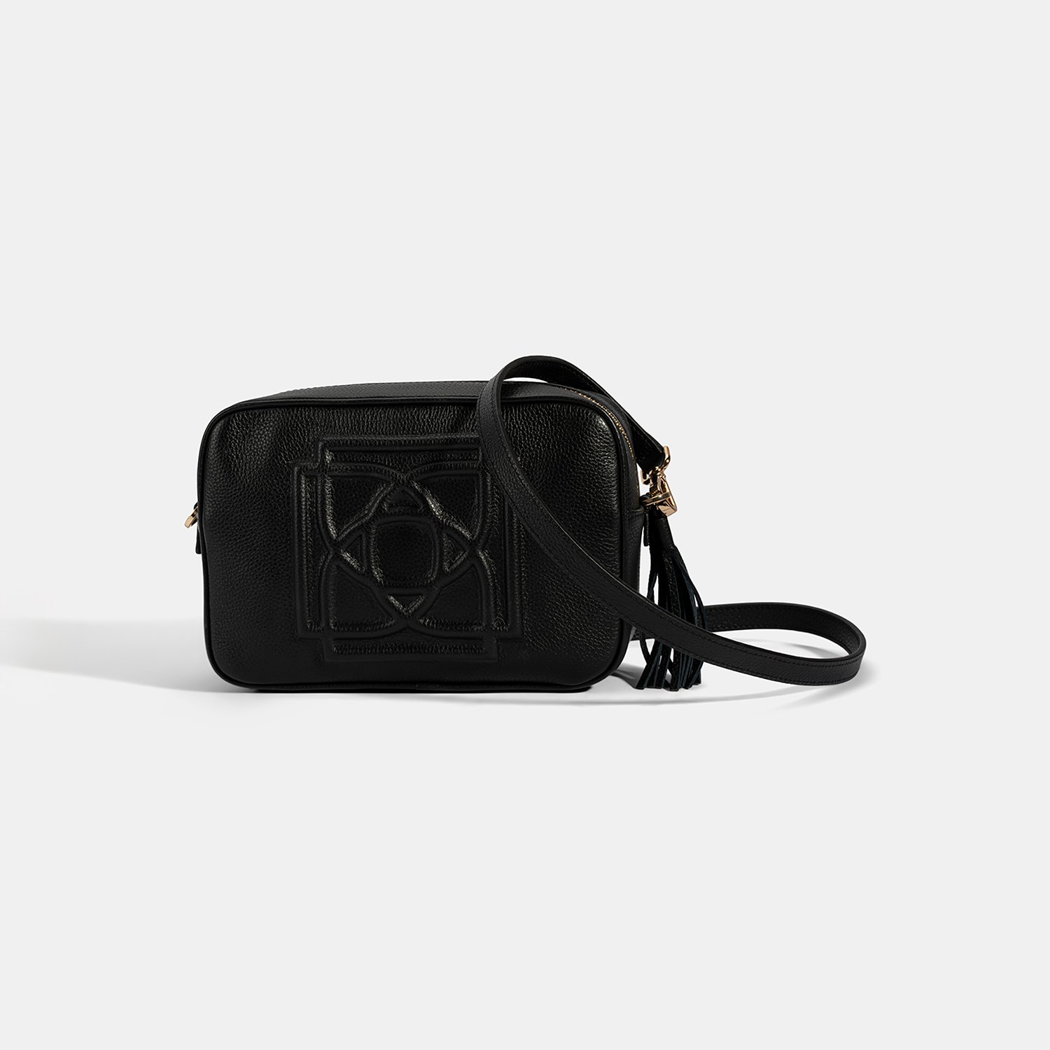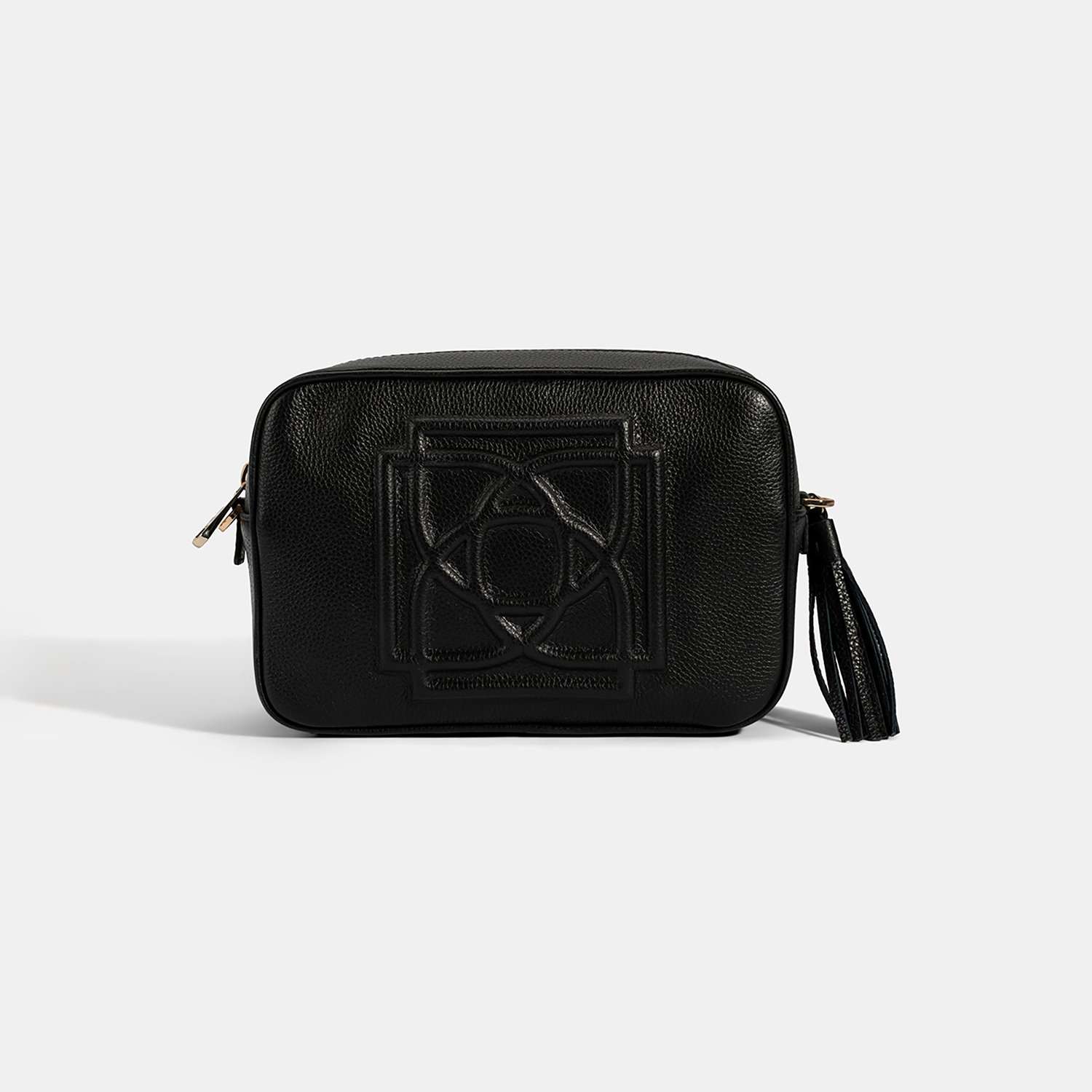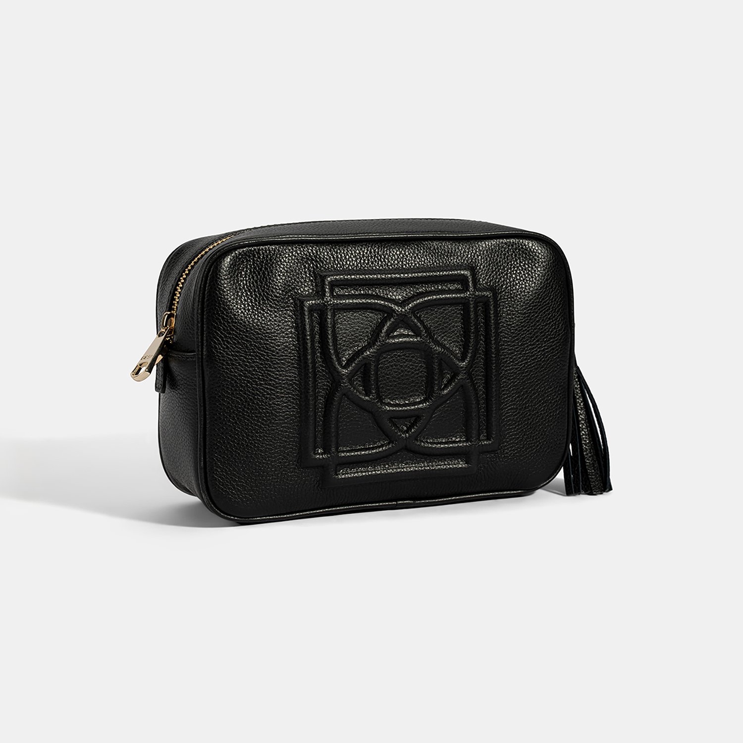 Kadın Siyah Monogram Baskılı Deri Postacı Çantası