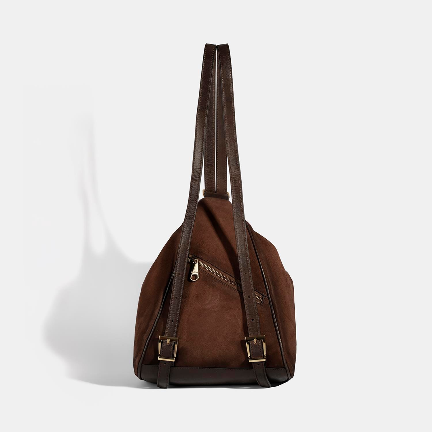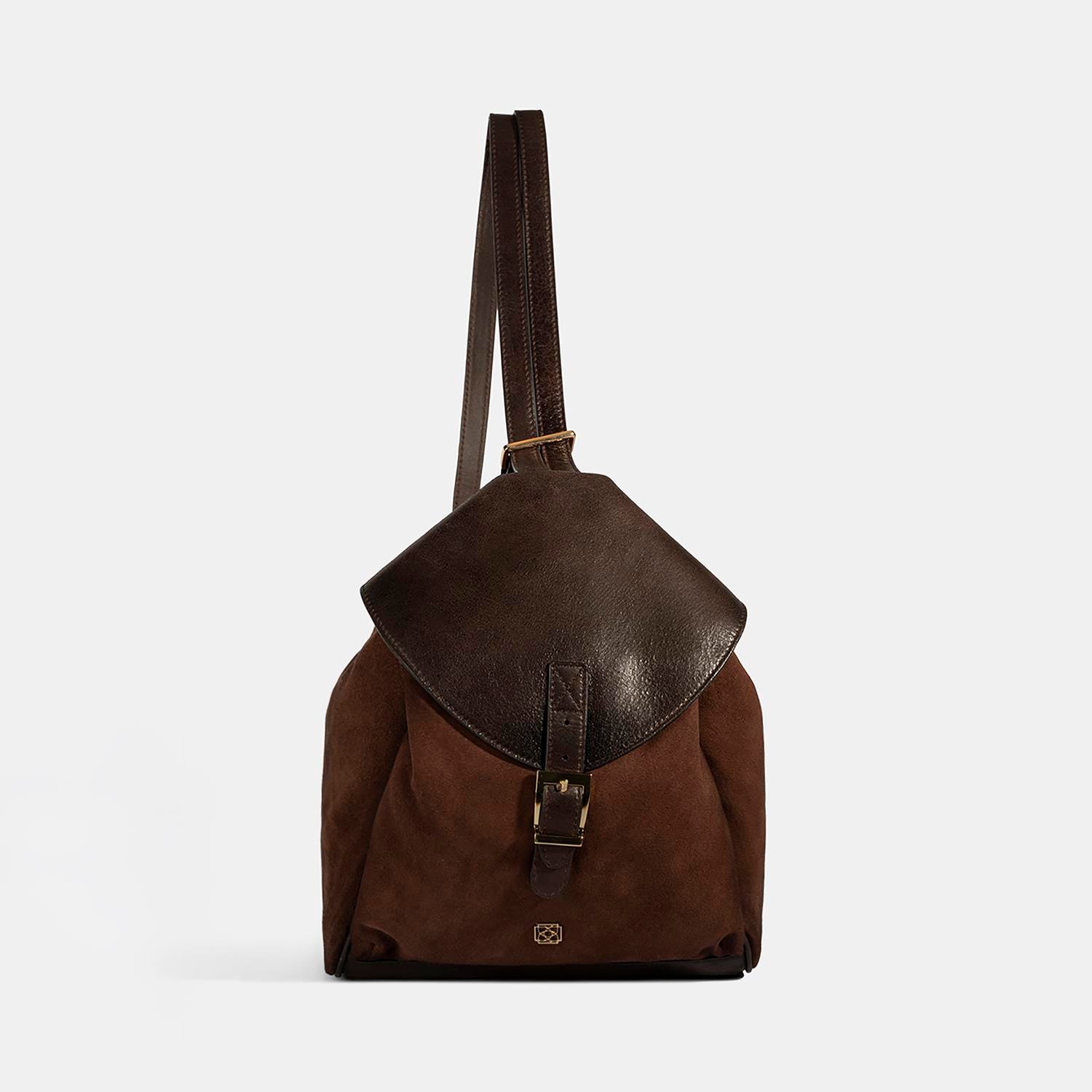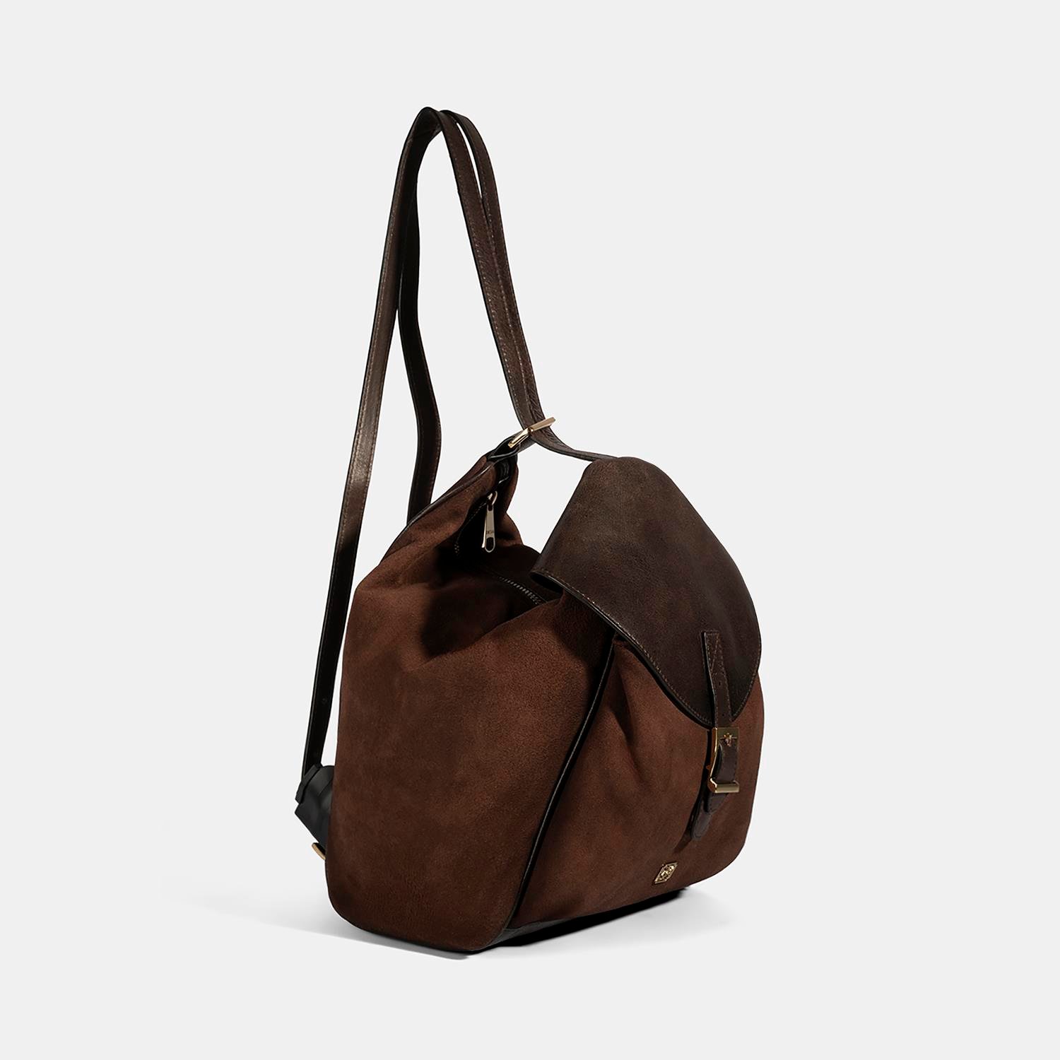 %100 gerçek deri ve süetten yapılmış kadın omuz ve sırt çantasıdır.