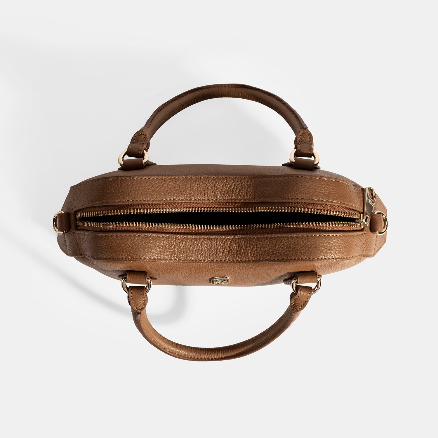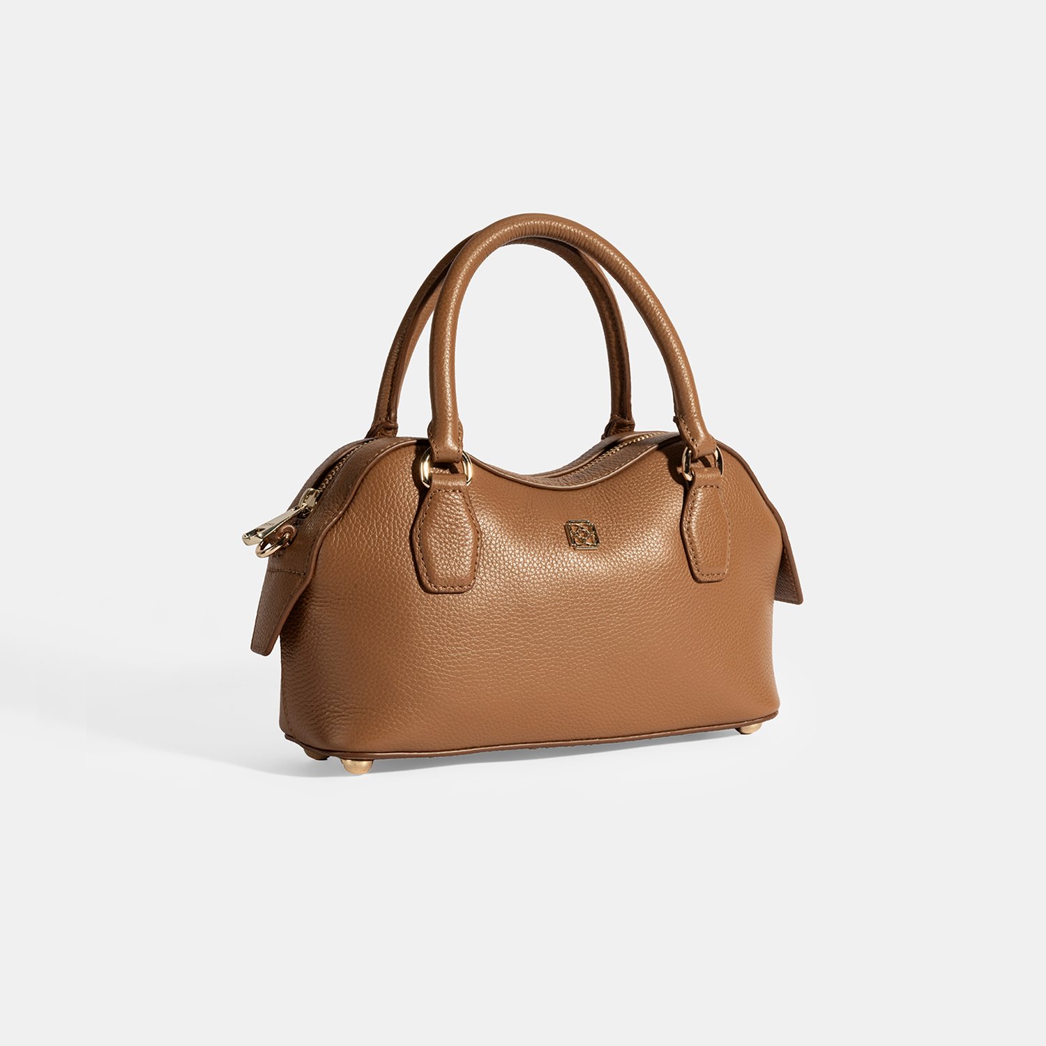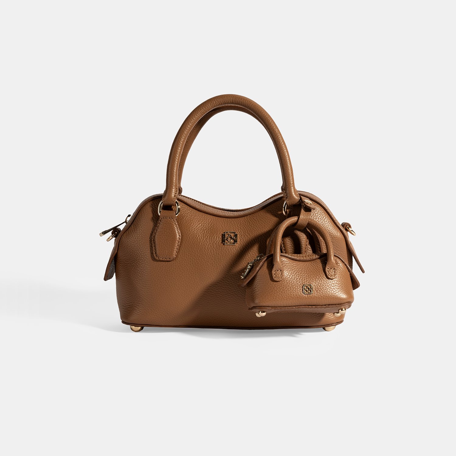 Kadın Taba Deri Çanta Aksesuarlı Mini El Çantası